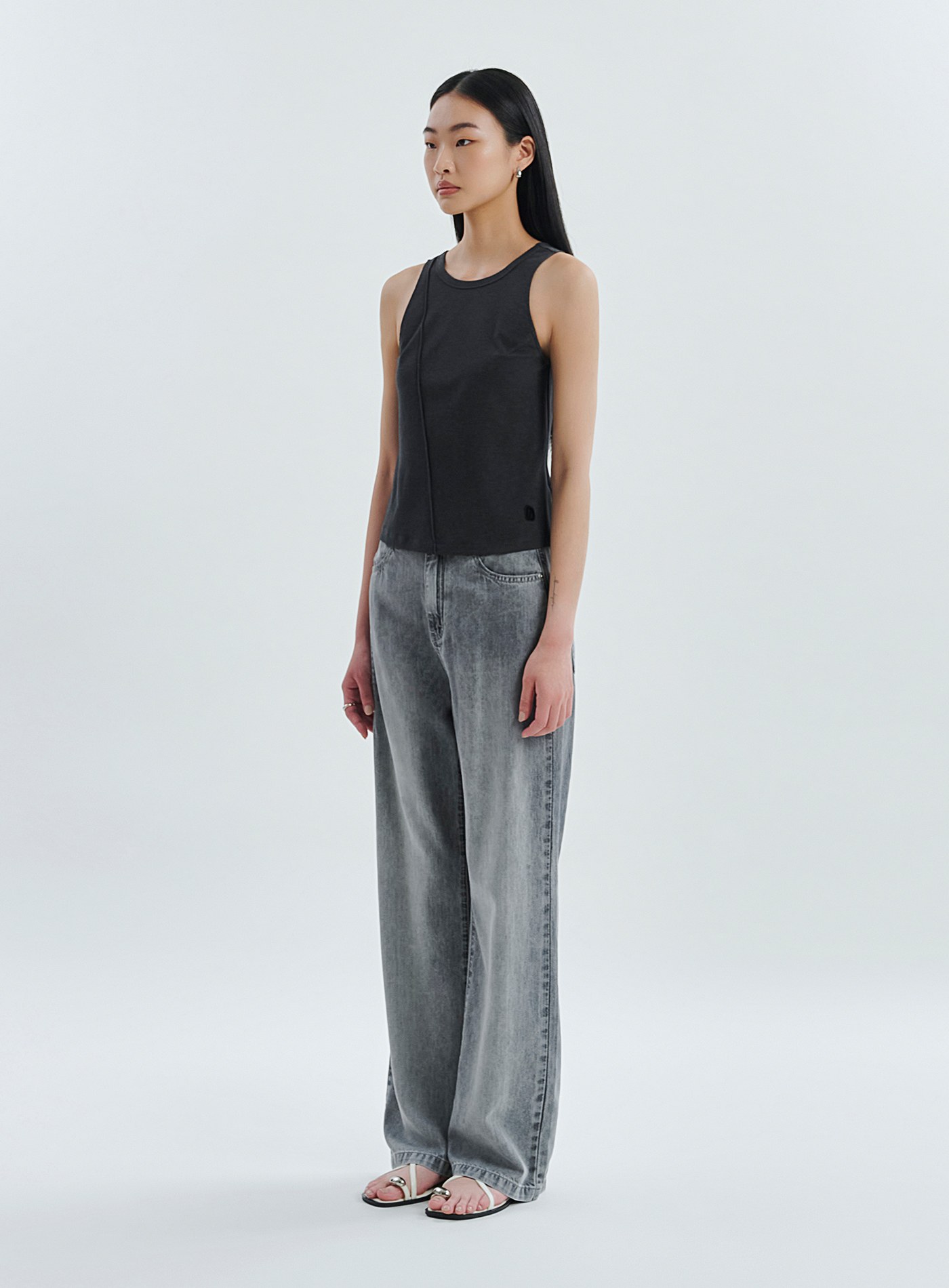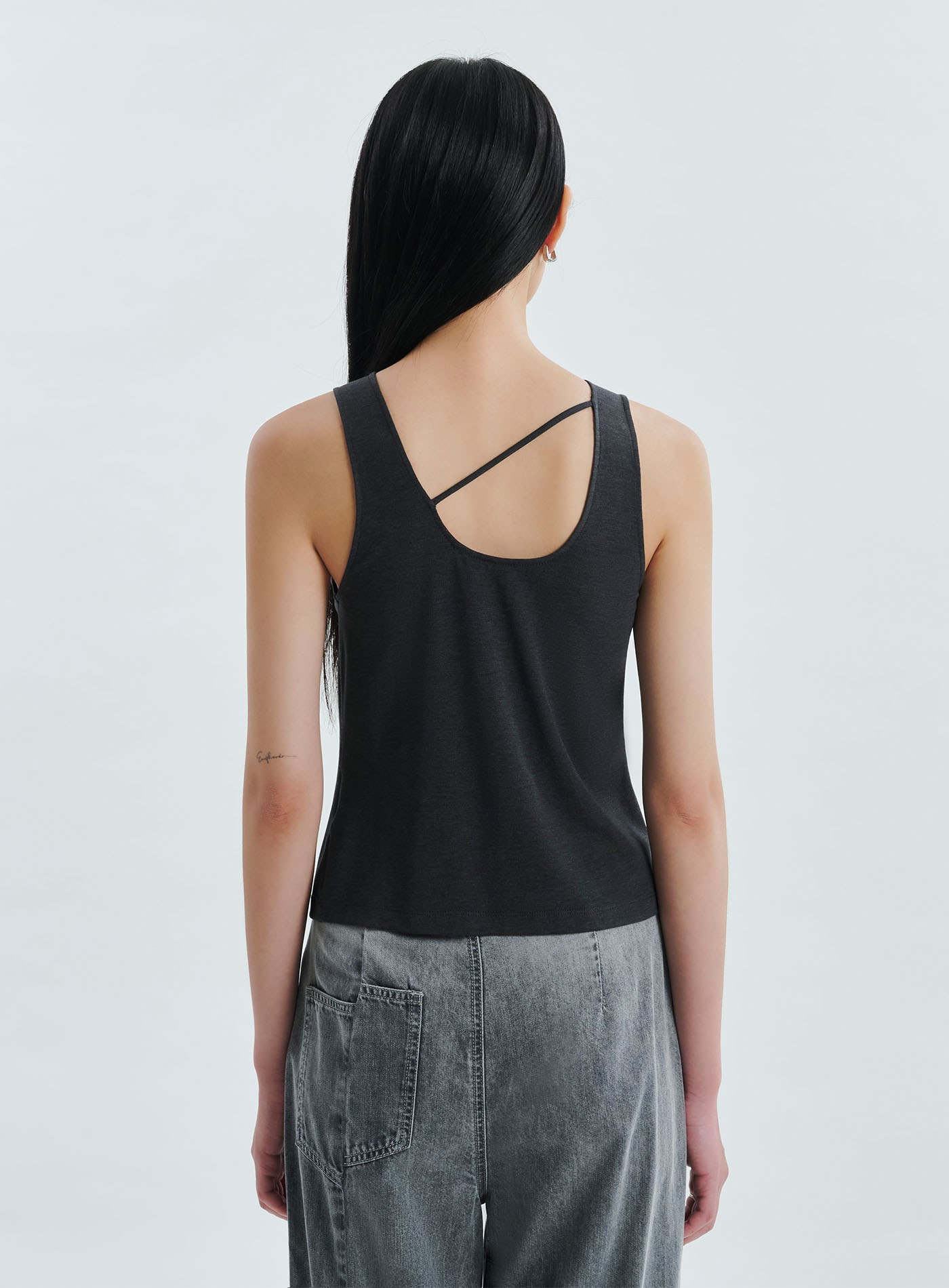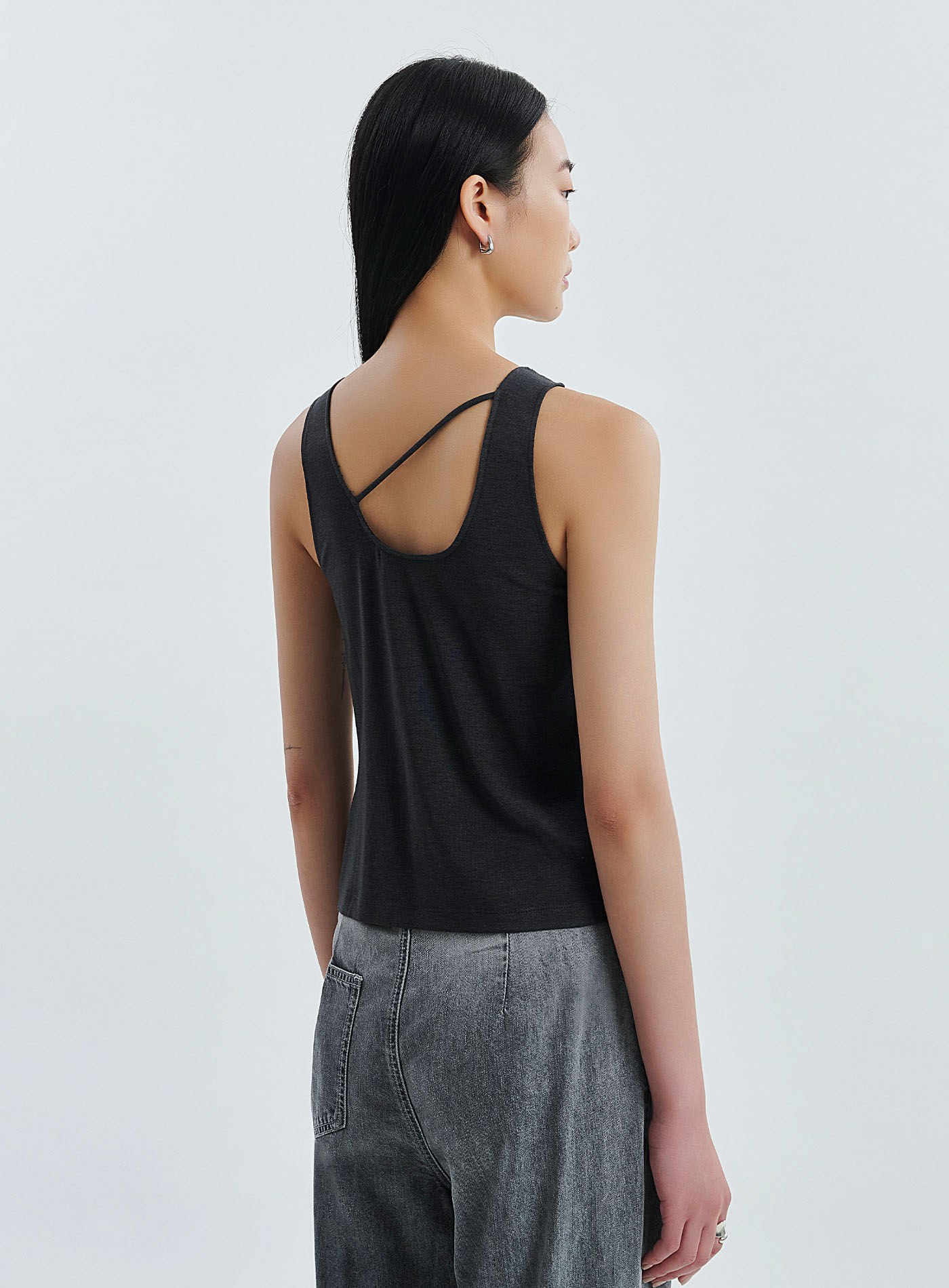 短版俐落寬肩無袖休閒襯杉$60 USD