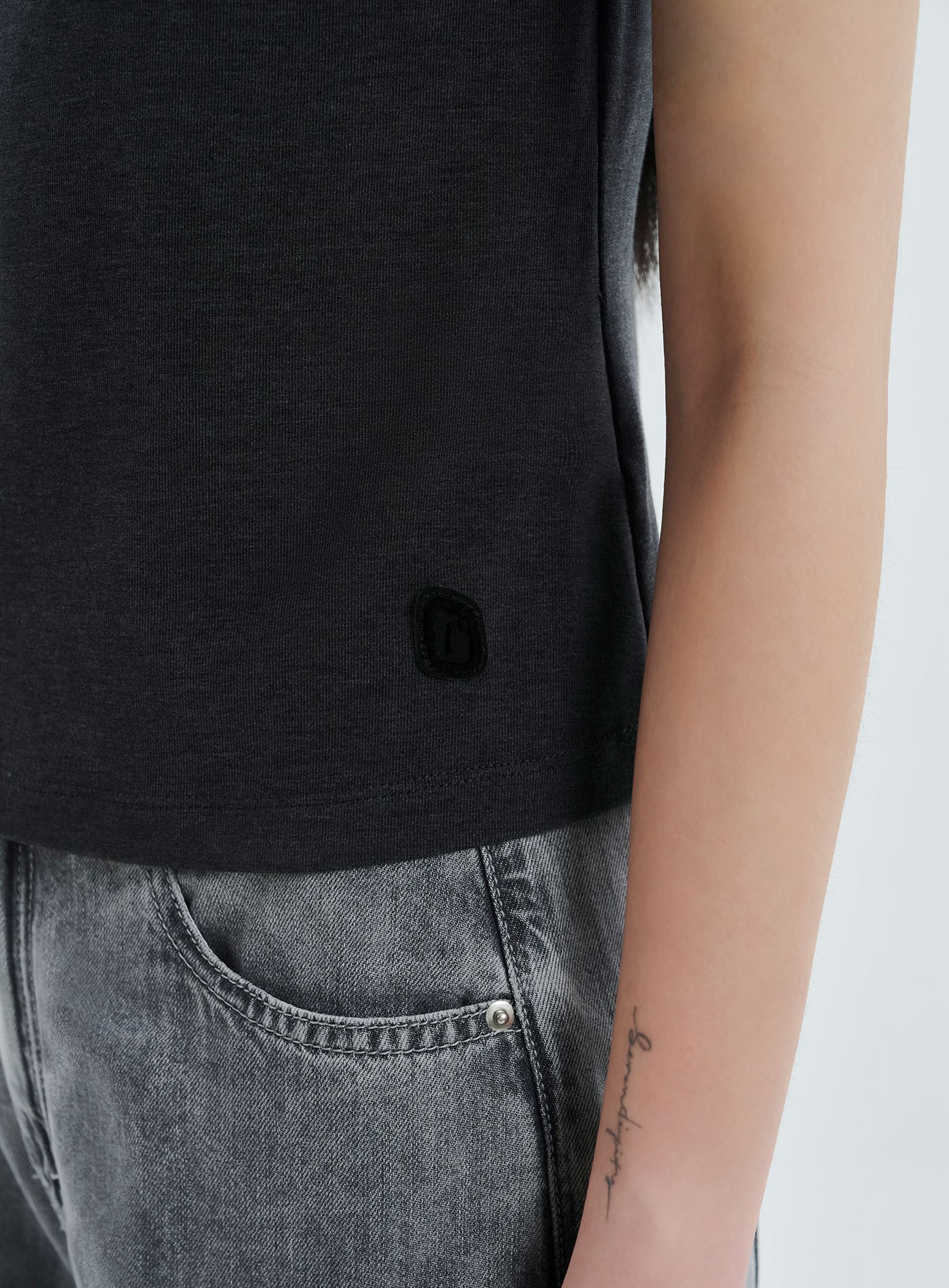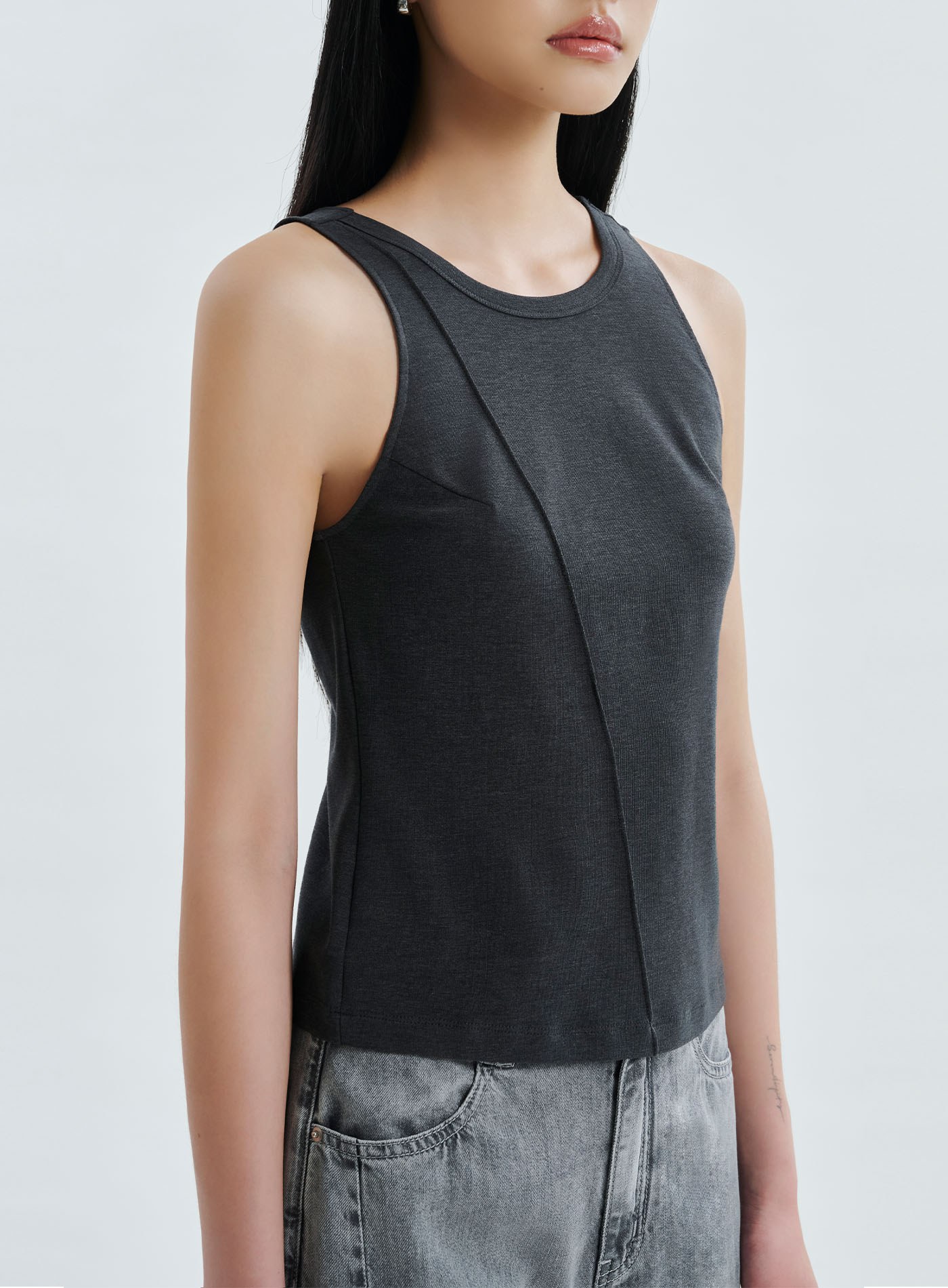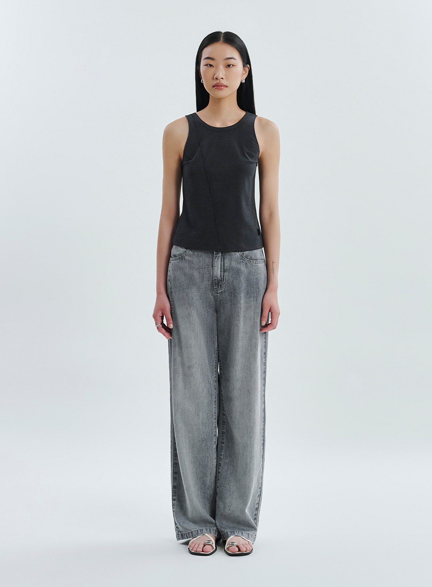 短版俐落寬肩無袖休閒襯杉$60 USD