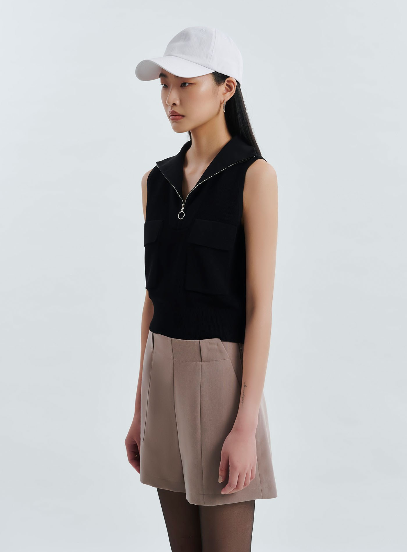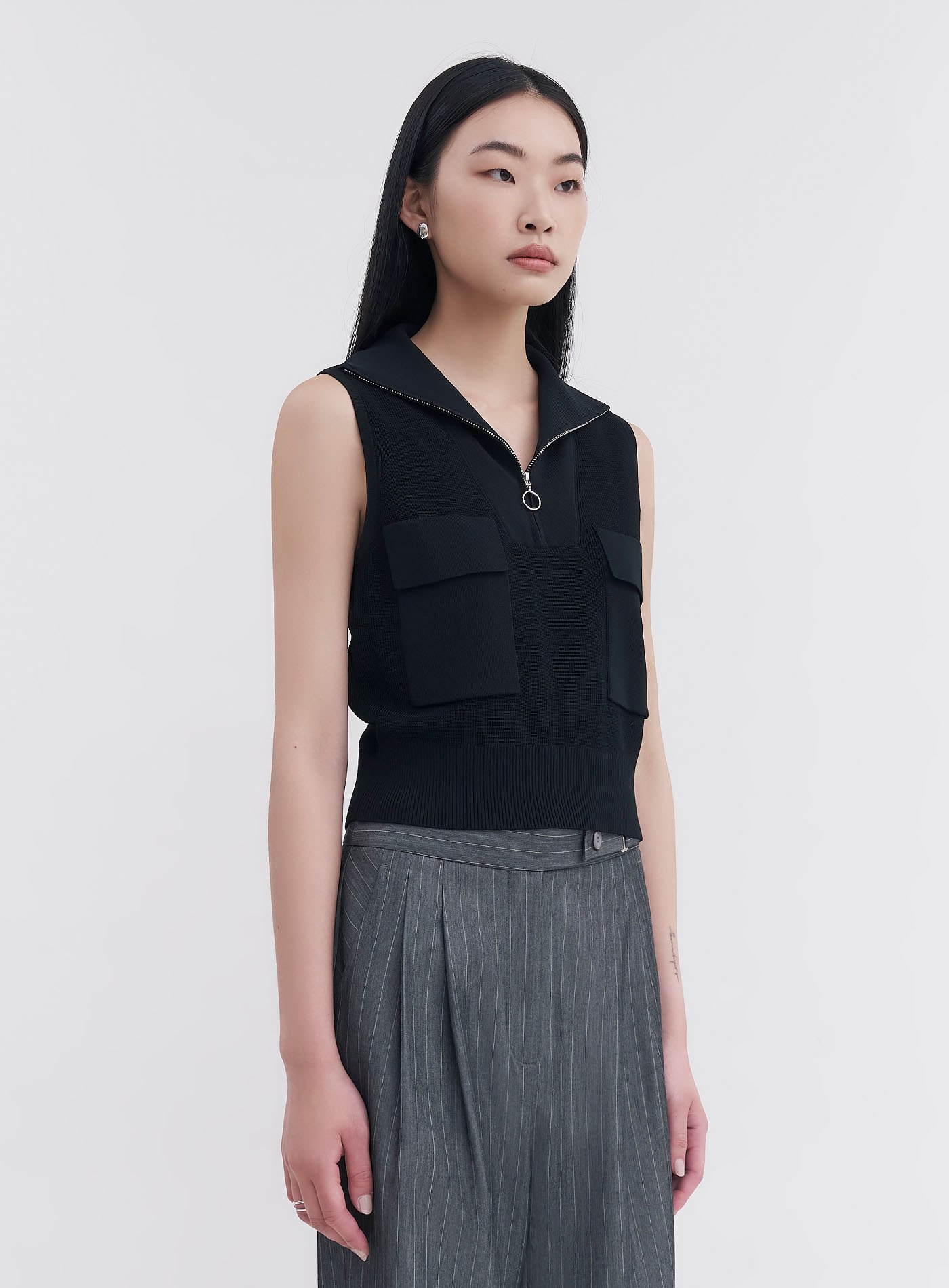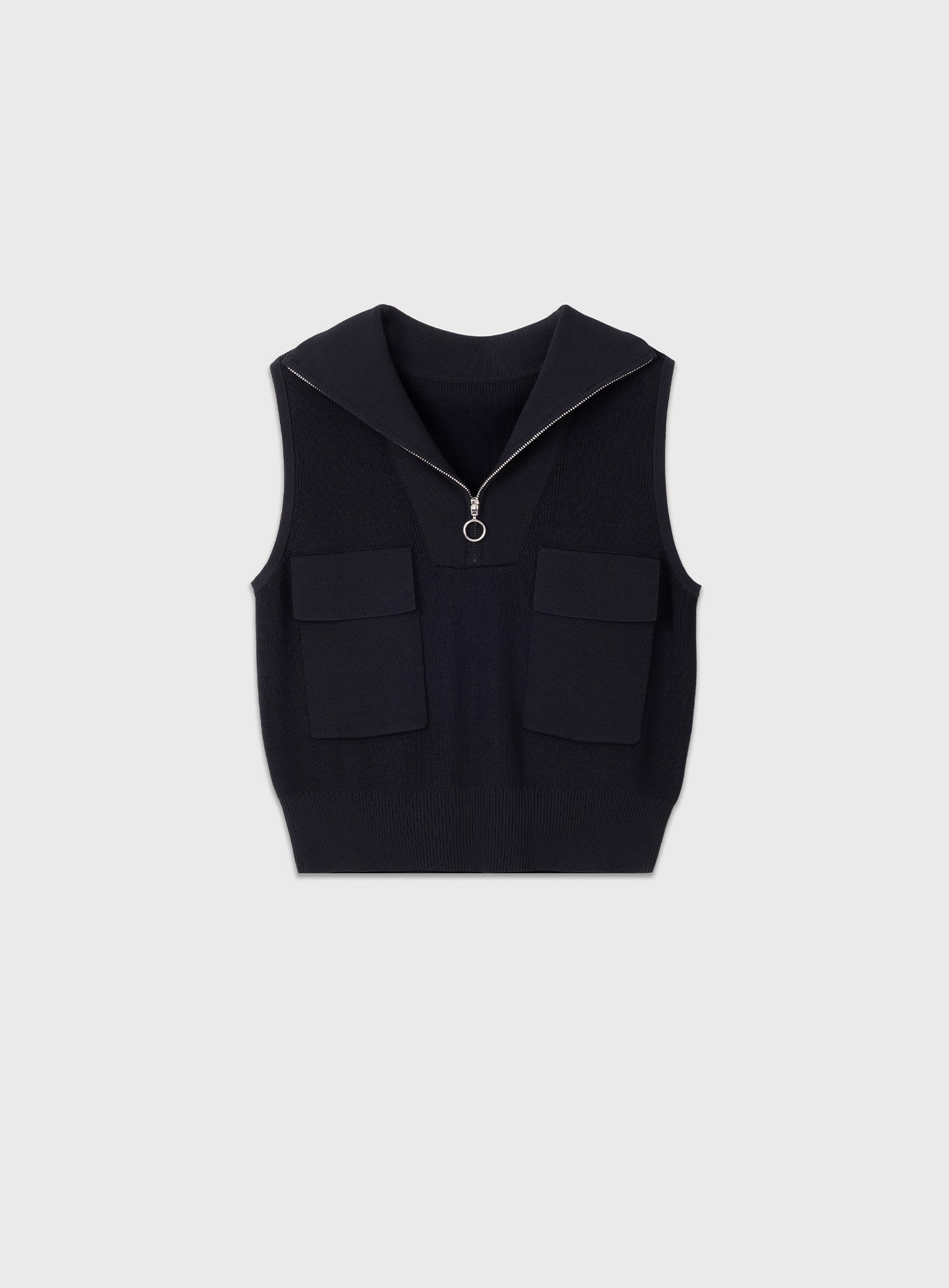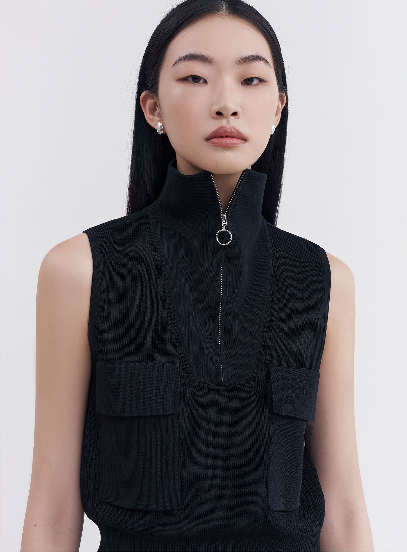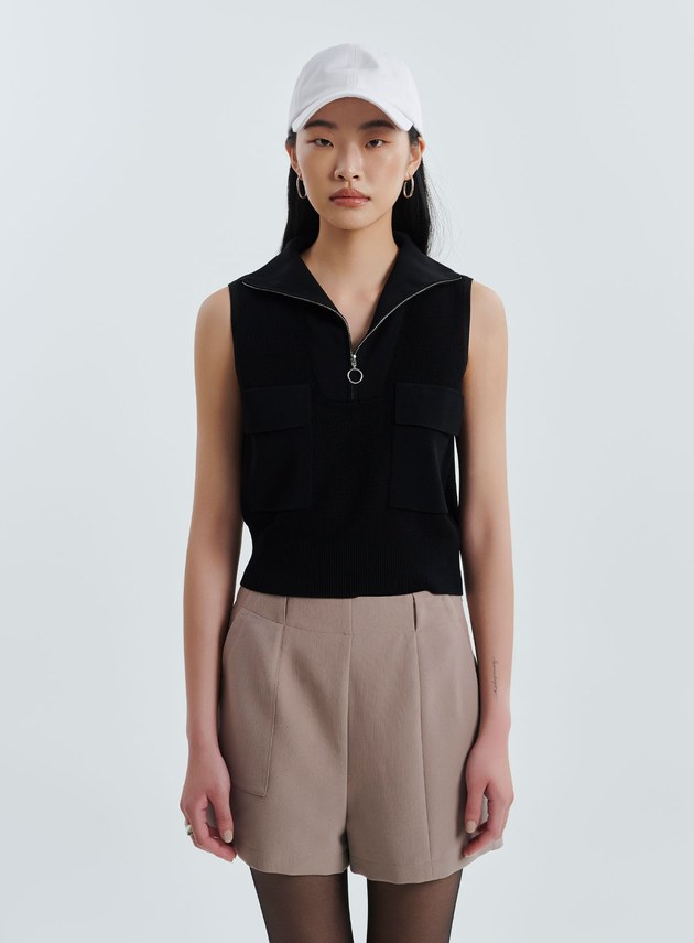 - 翻領拉鍊設計,也可拉為半高領