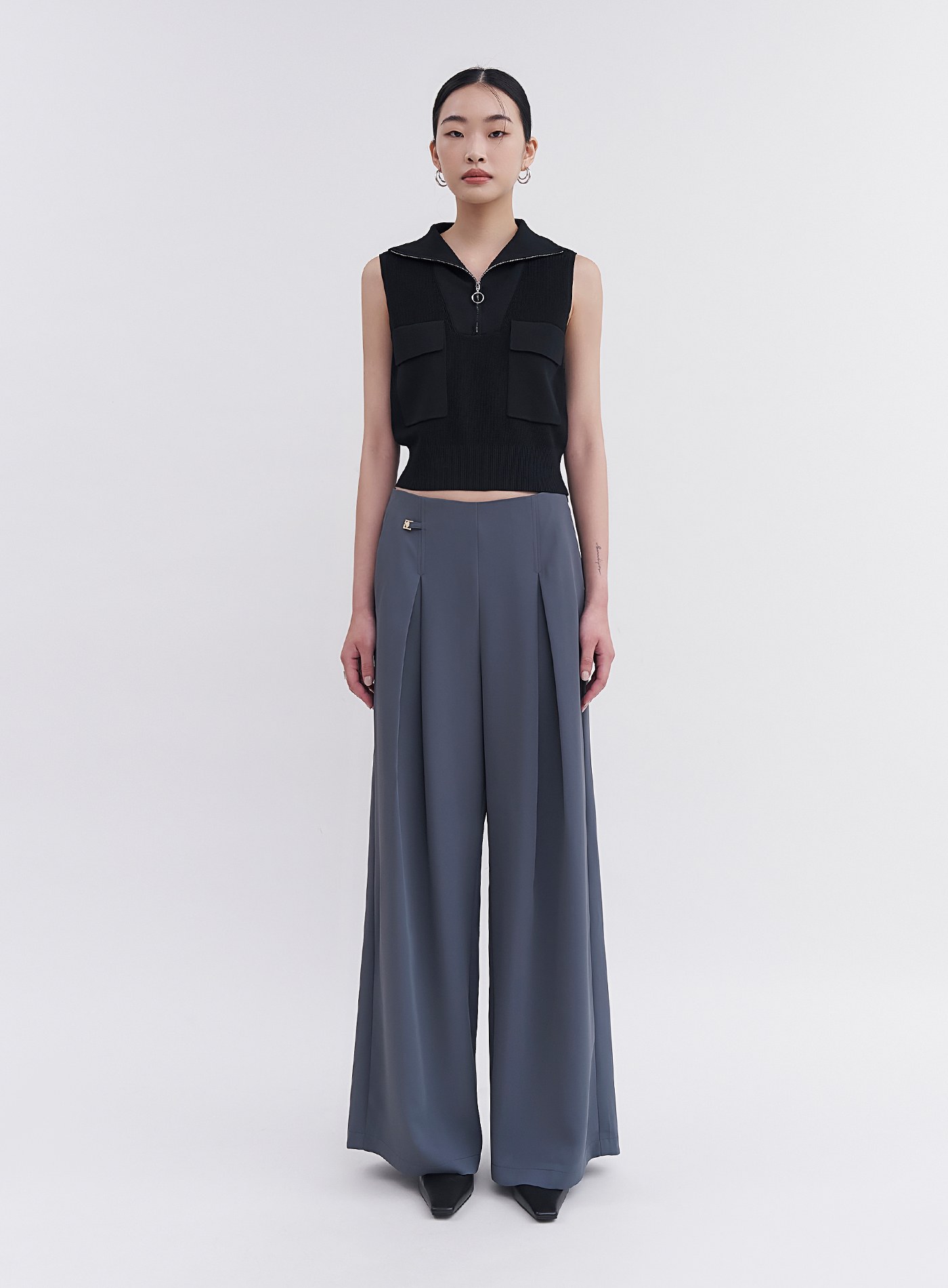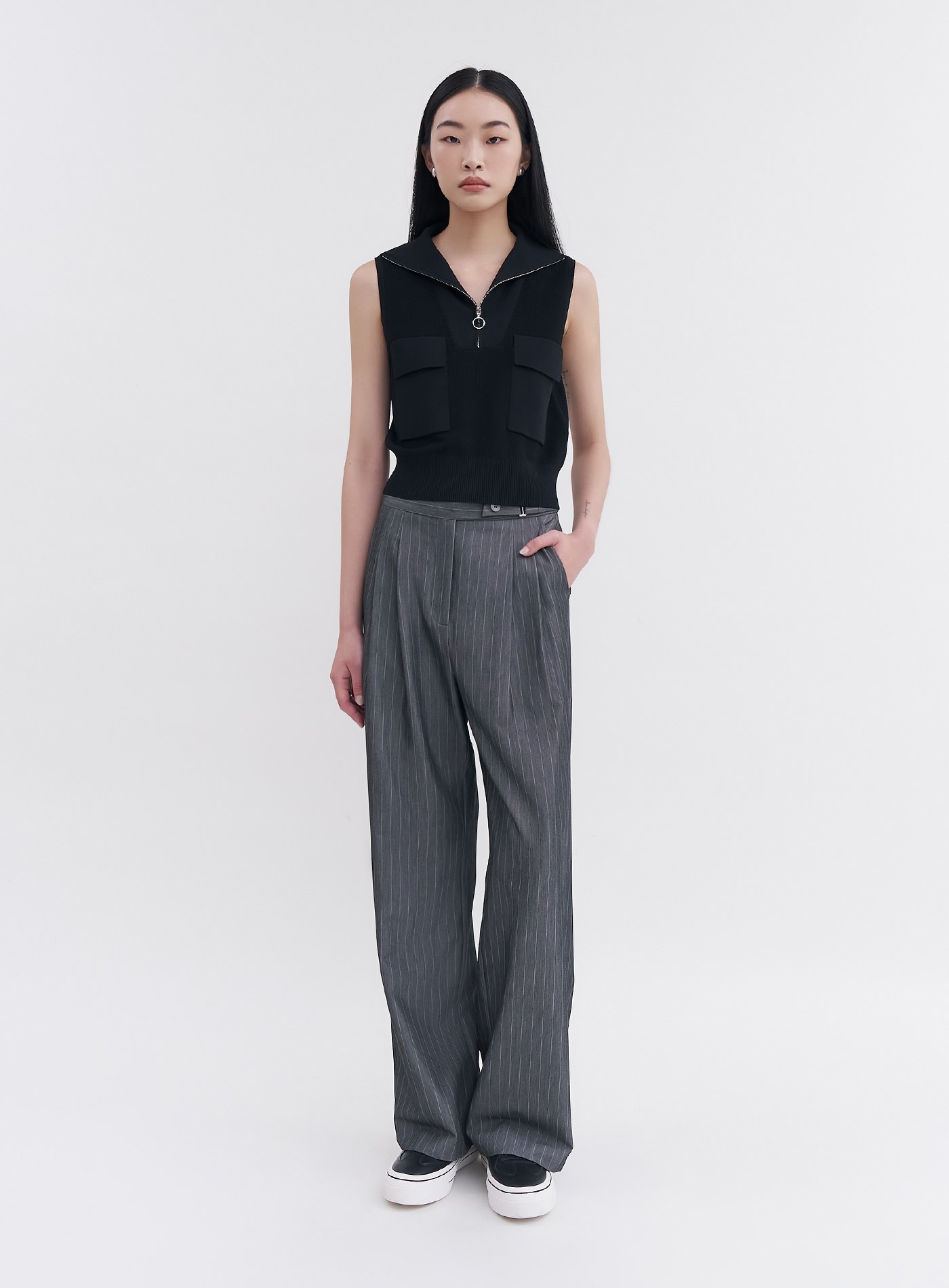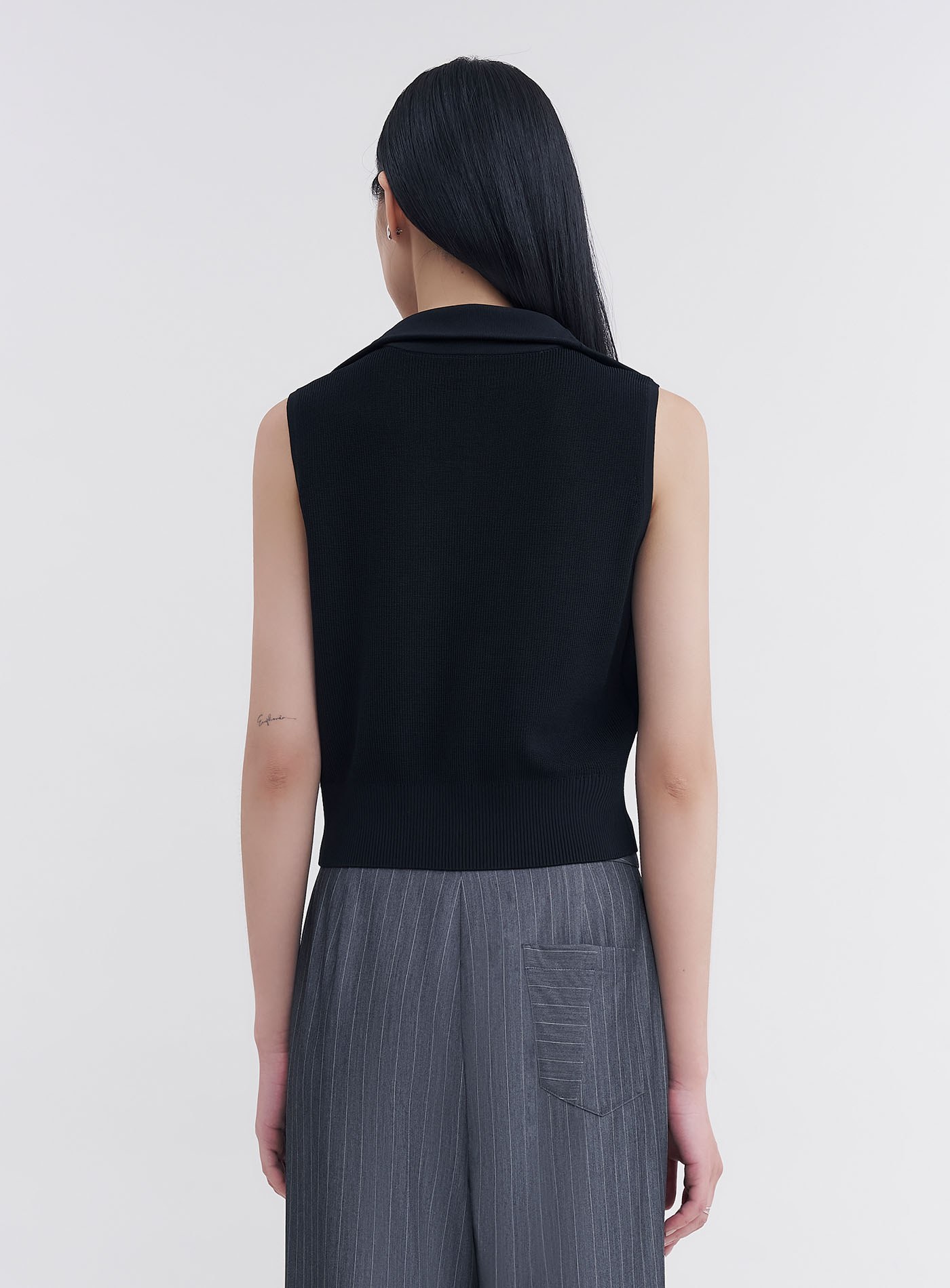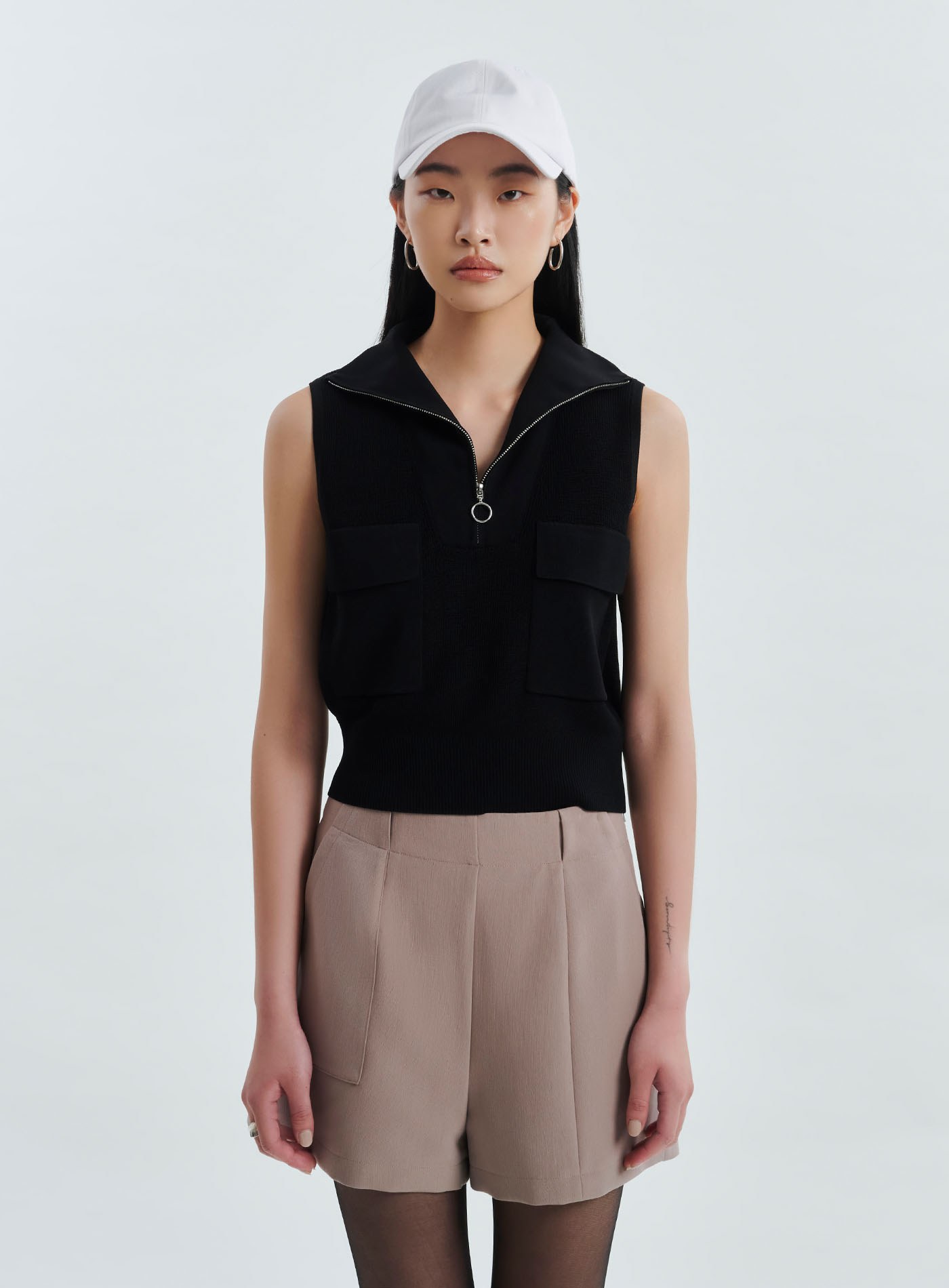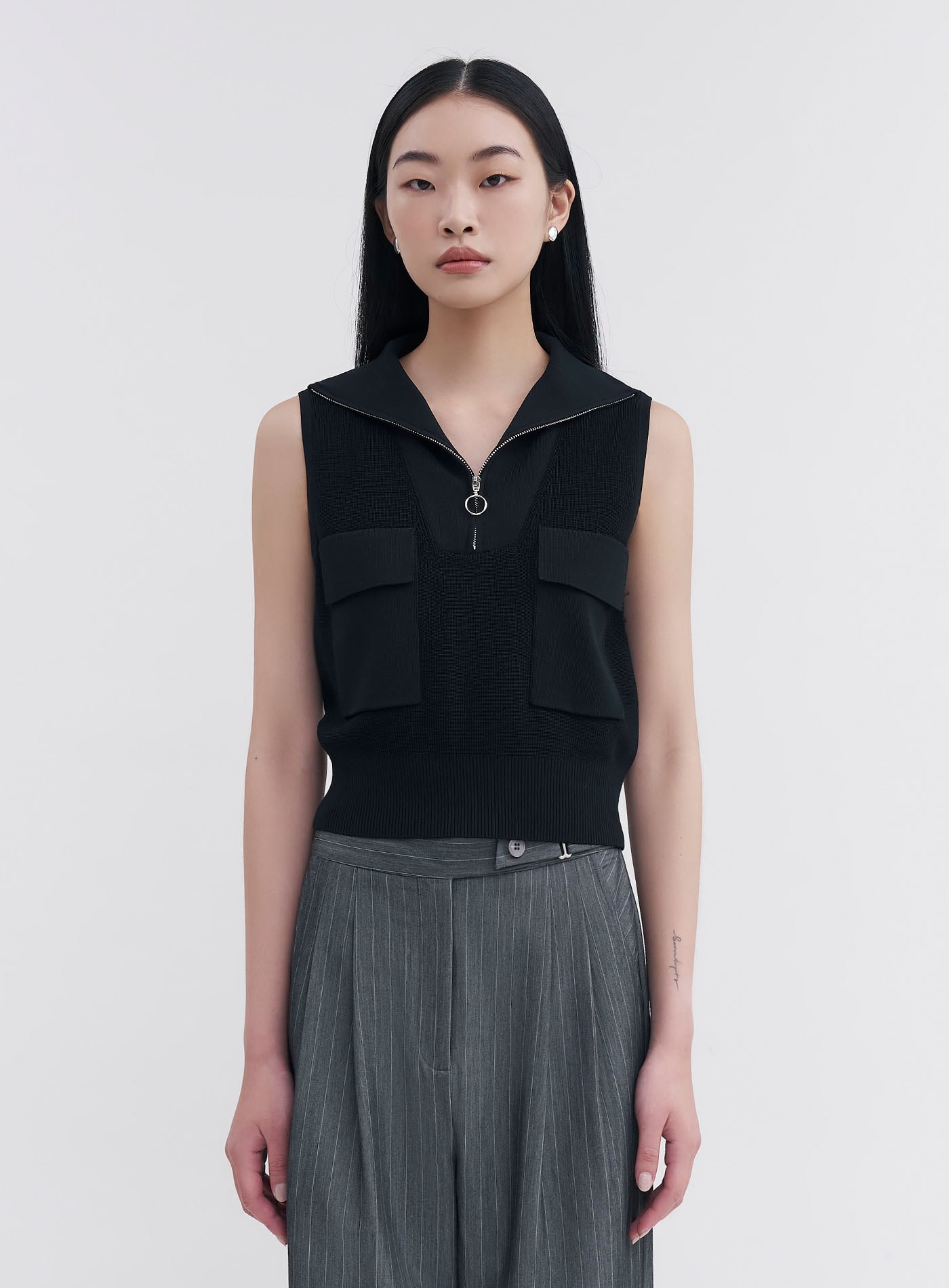 - 翻領拉鍊設計,也可拉為半高領