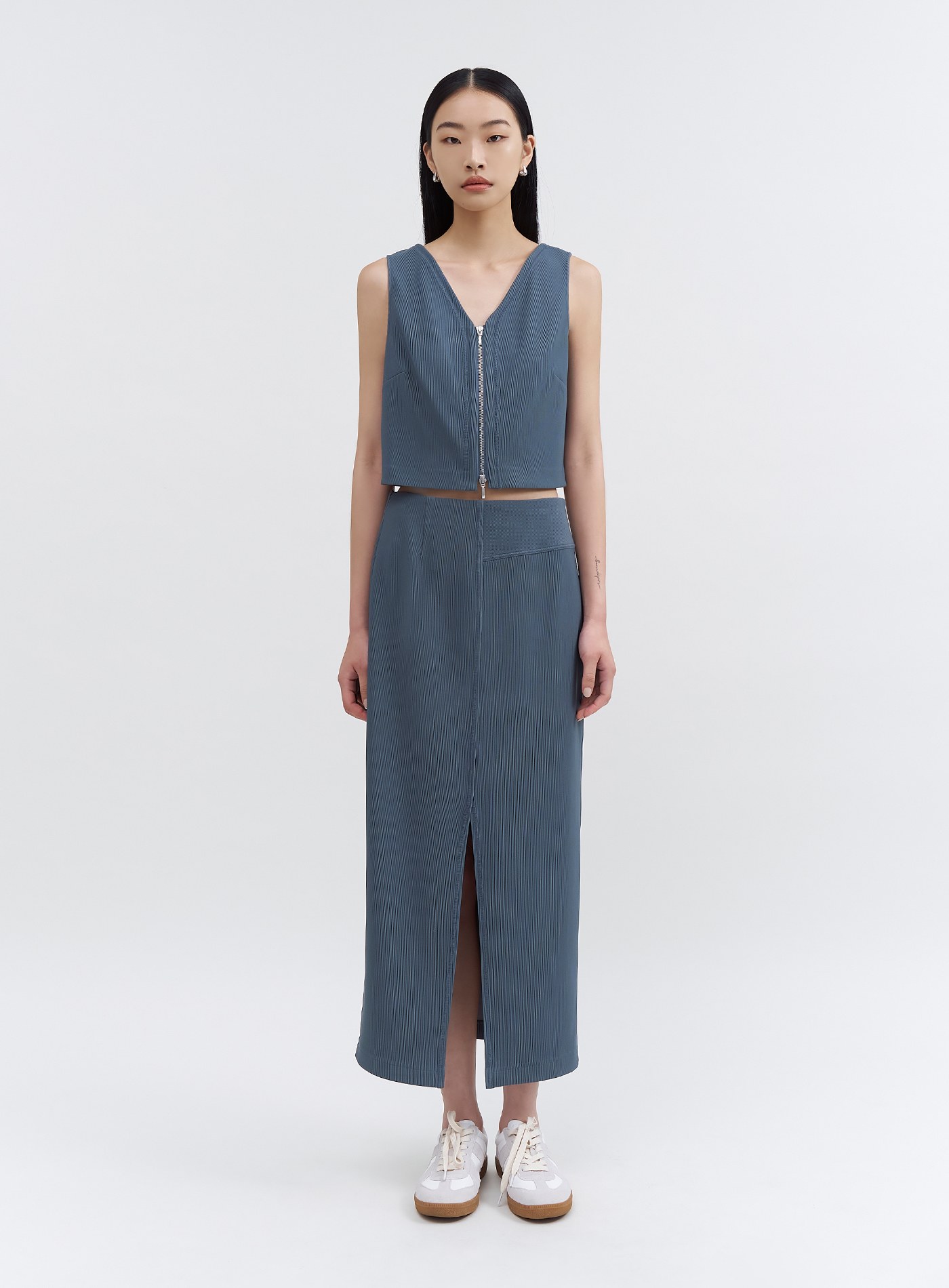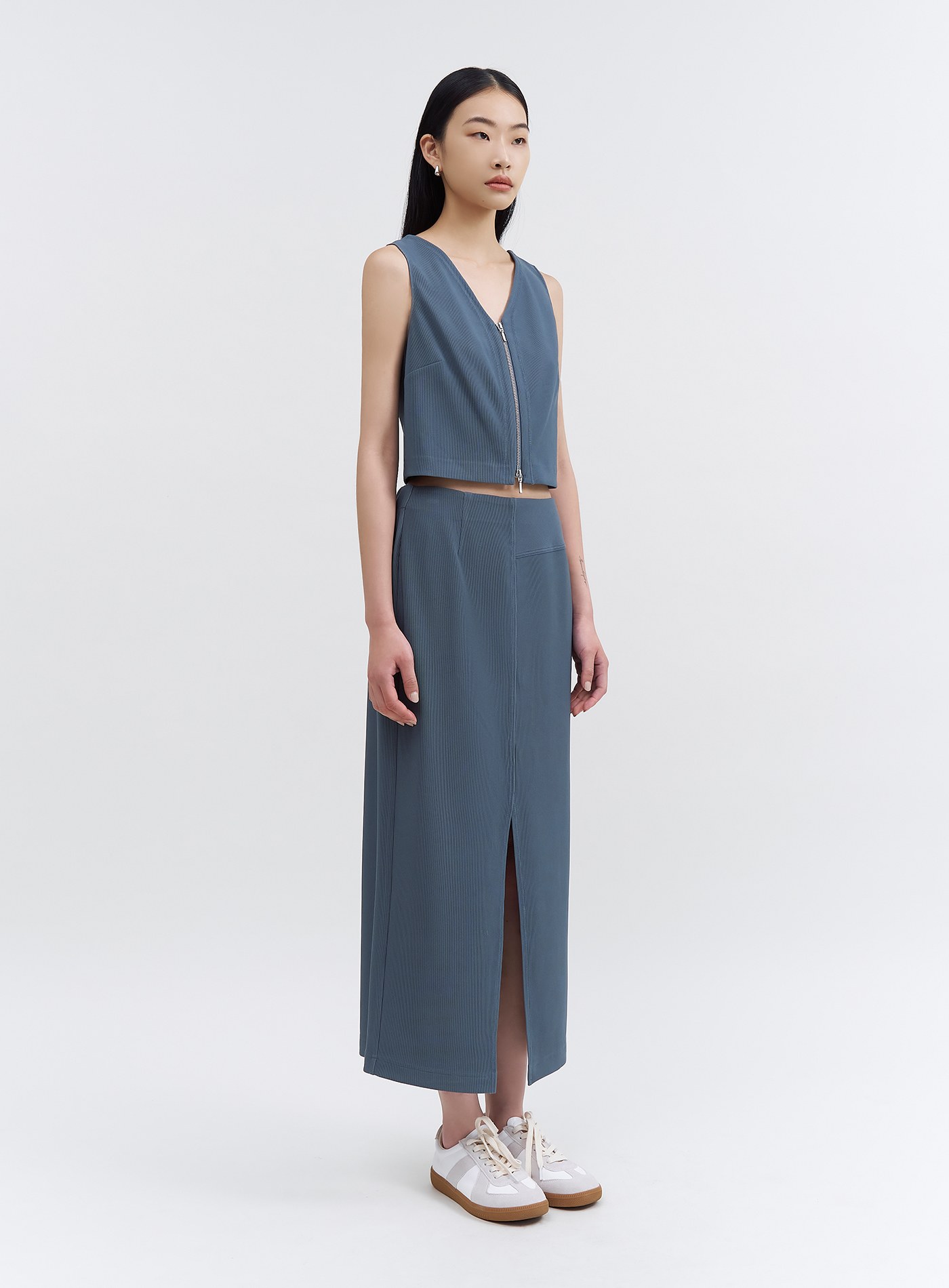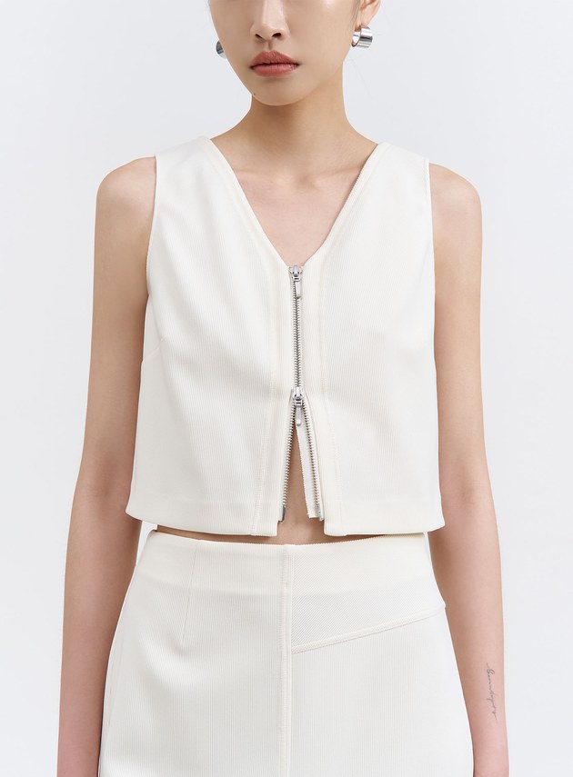 - 可與 '率性拉鍊無袖針織上衣‘ 搭成套裝