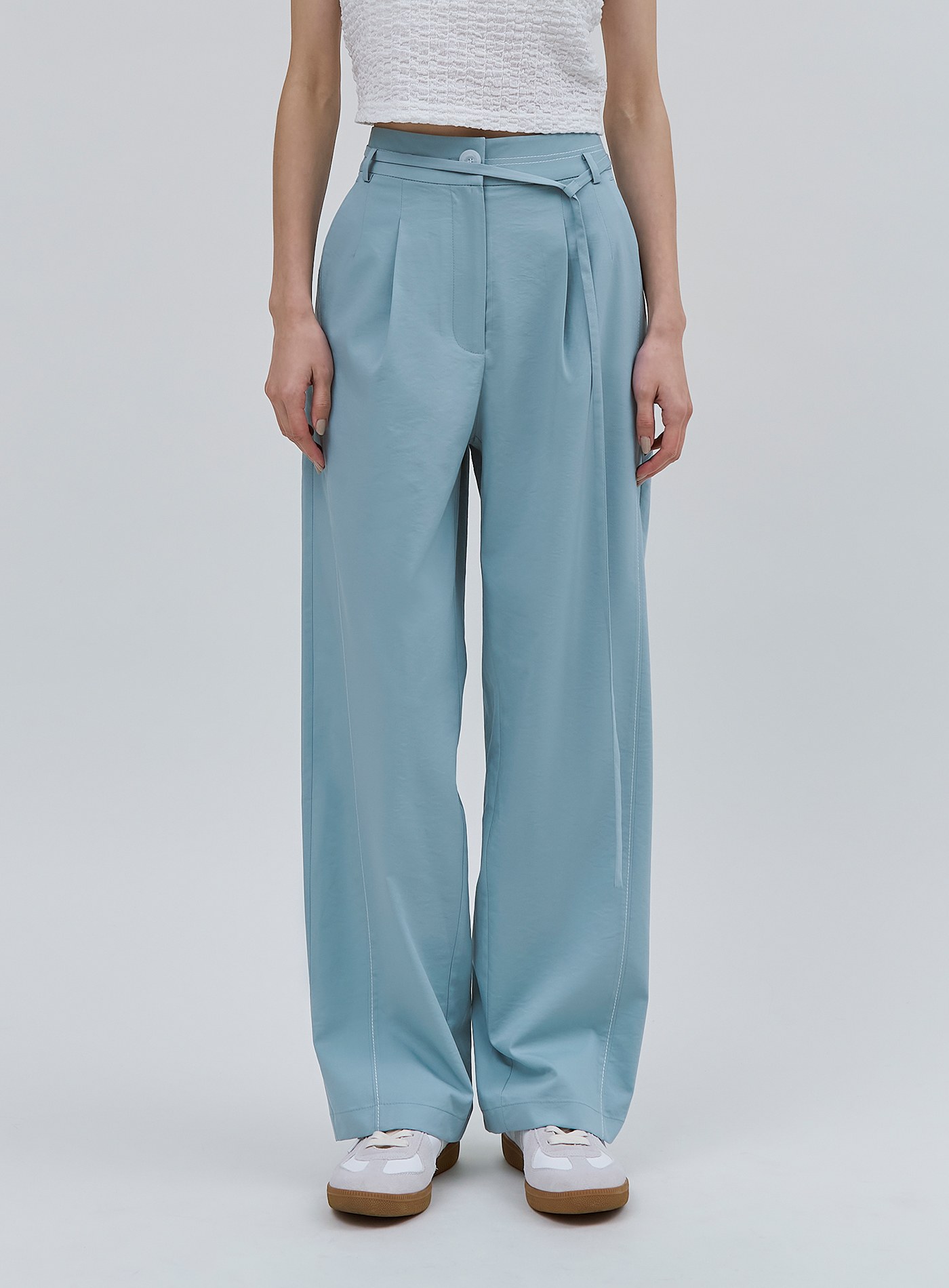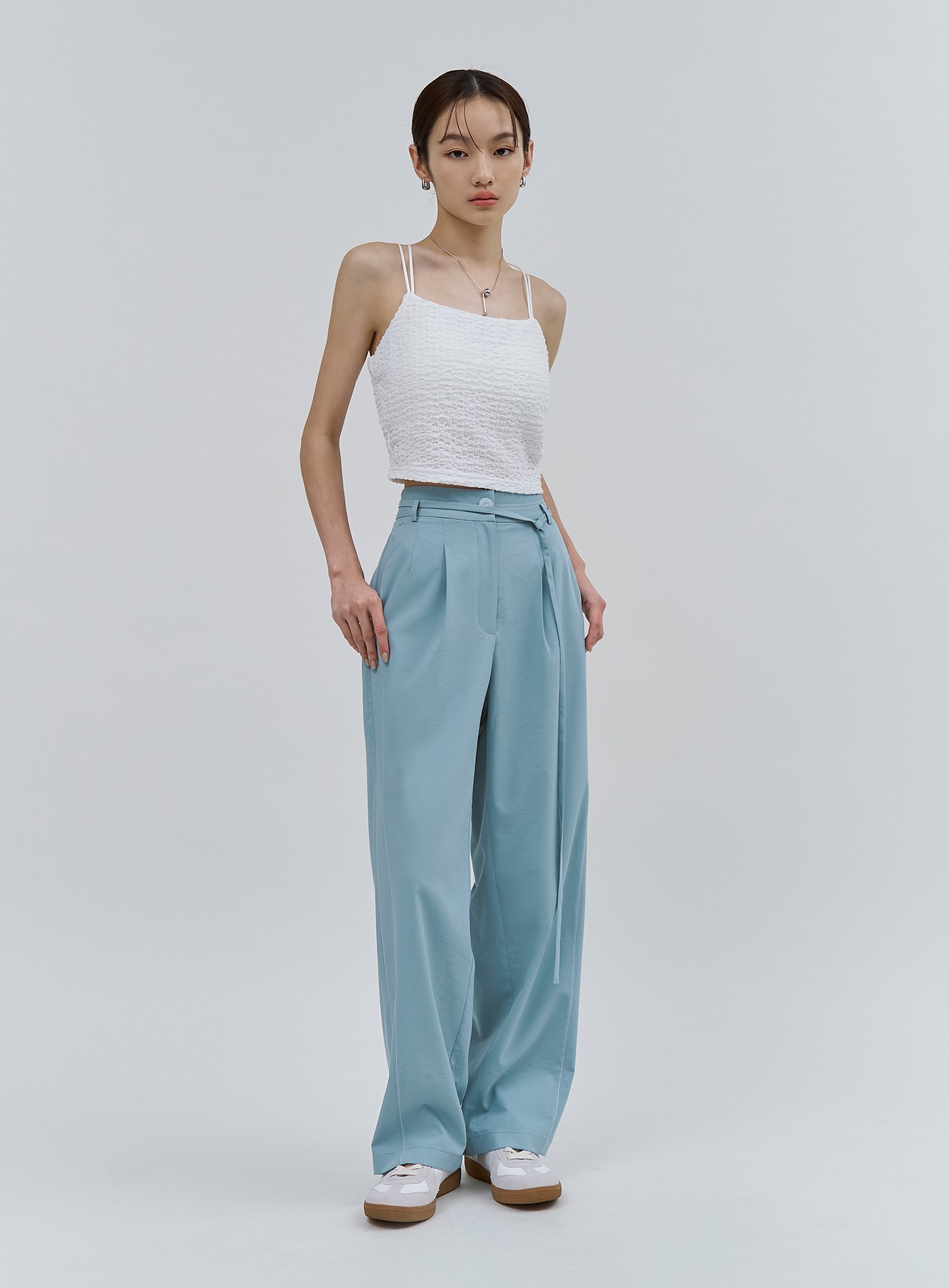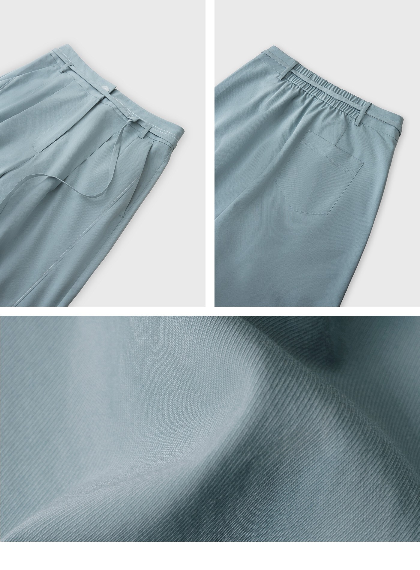 - 寬褲版型,適合夏日的清新湖水藍色