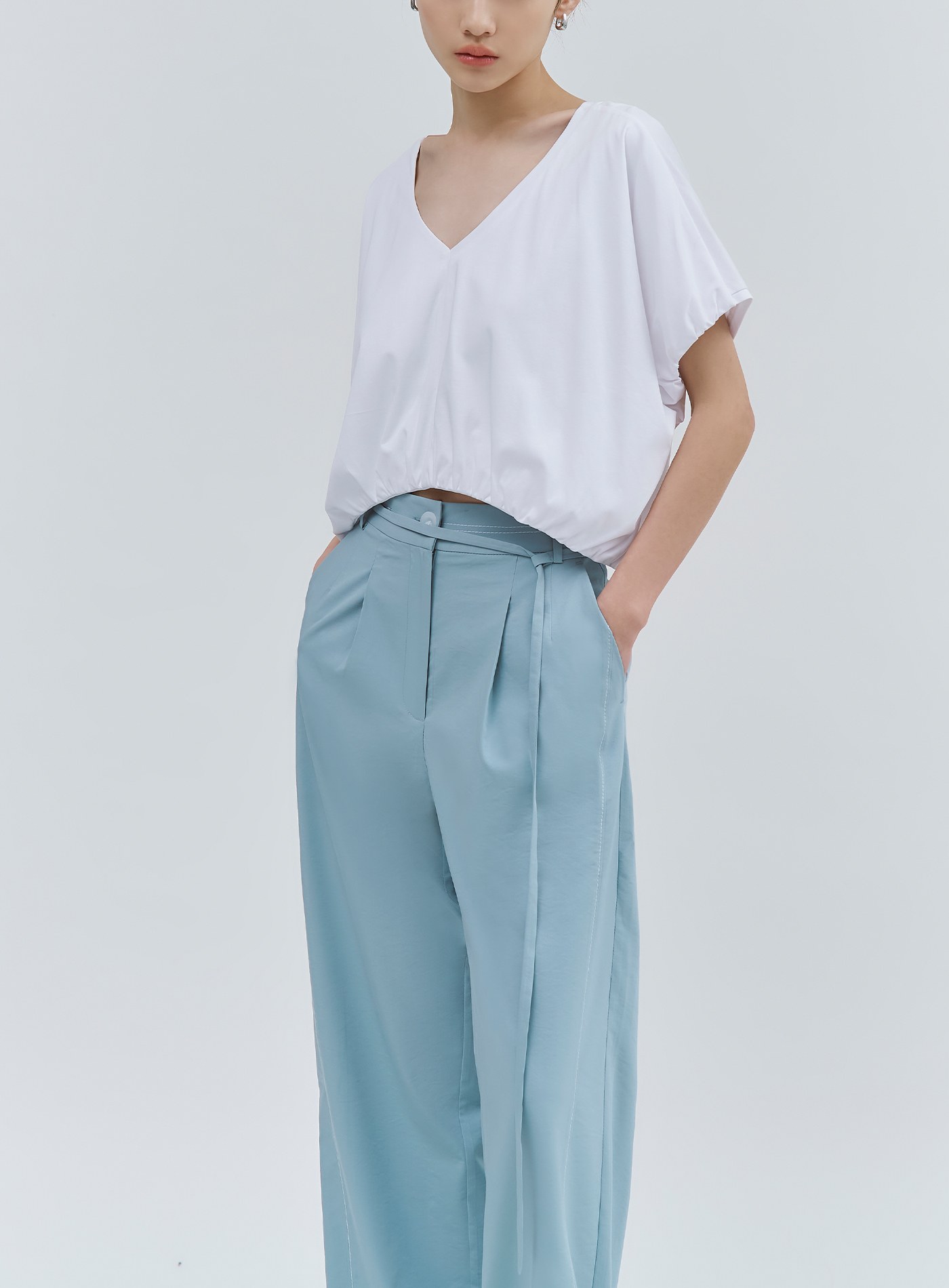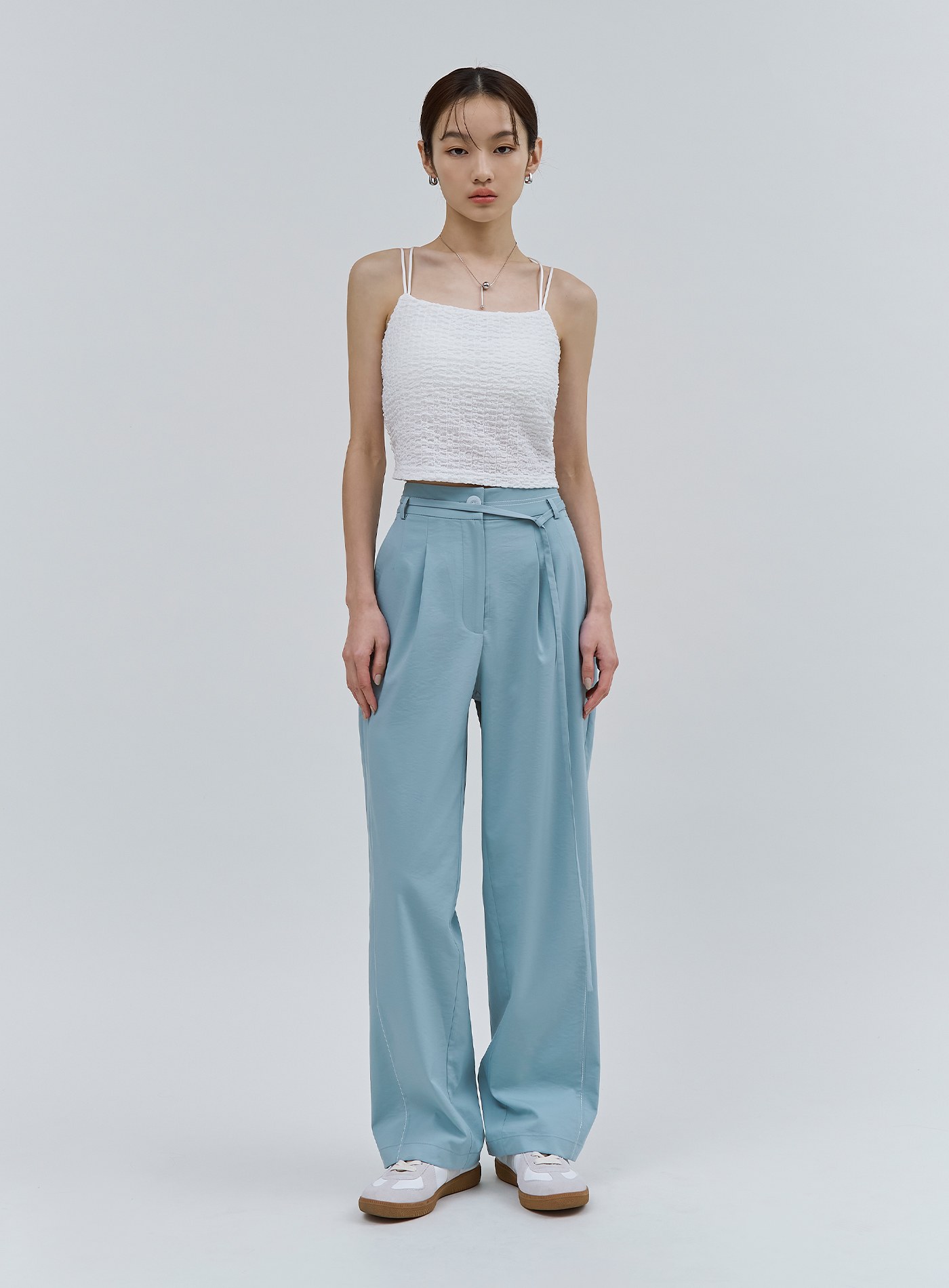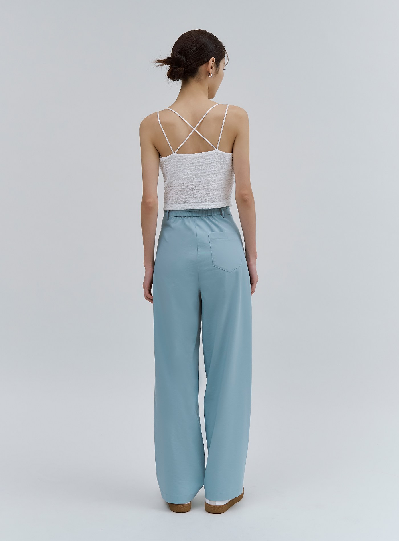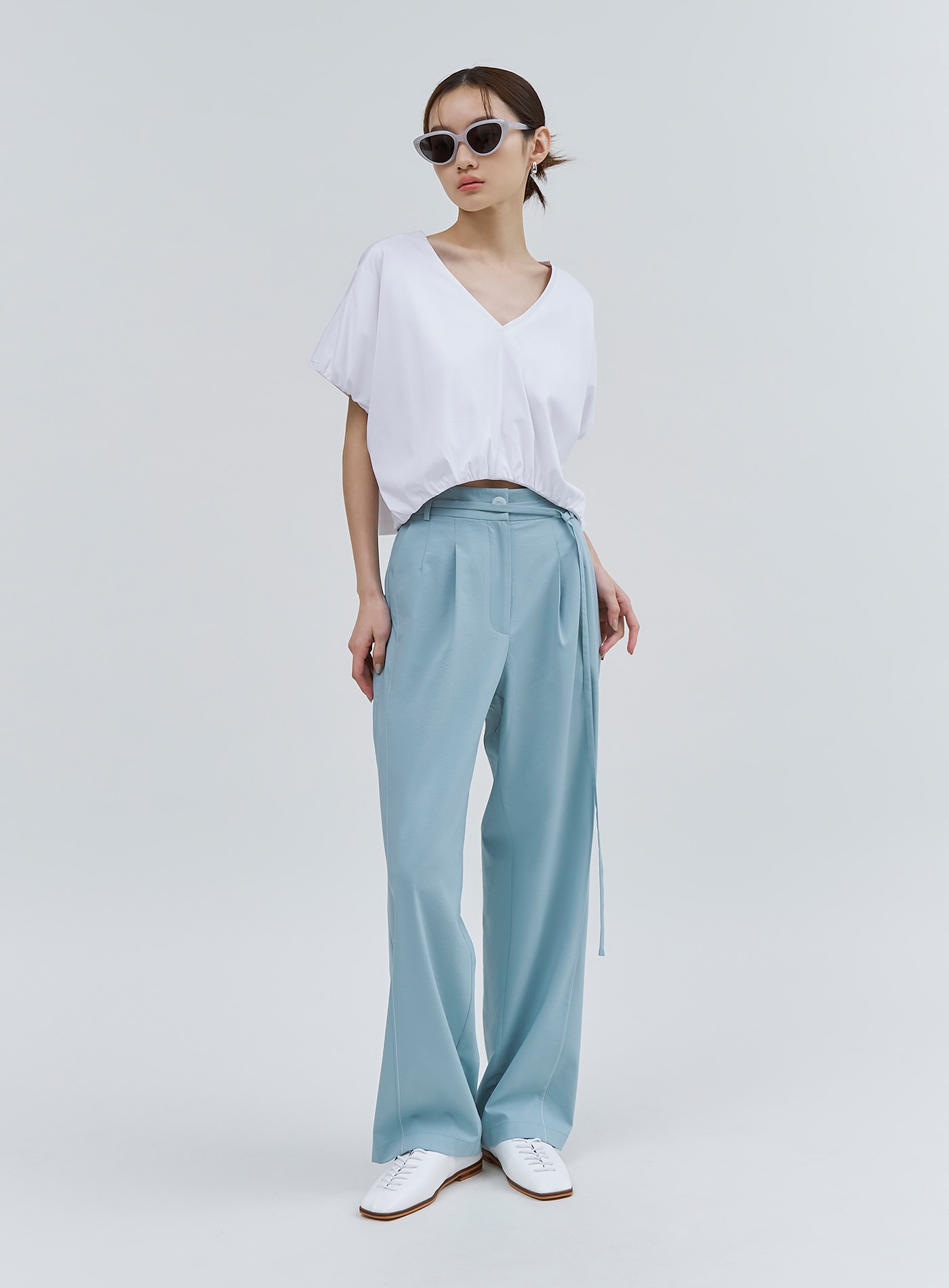 - 寬褲版型,適合夏日的清新湖水藍色