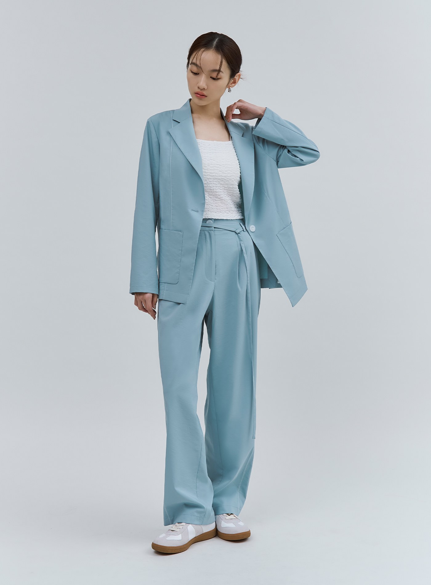 - 可與 '唯美湖水藍輕挺西裝外套' 搭成套裝