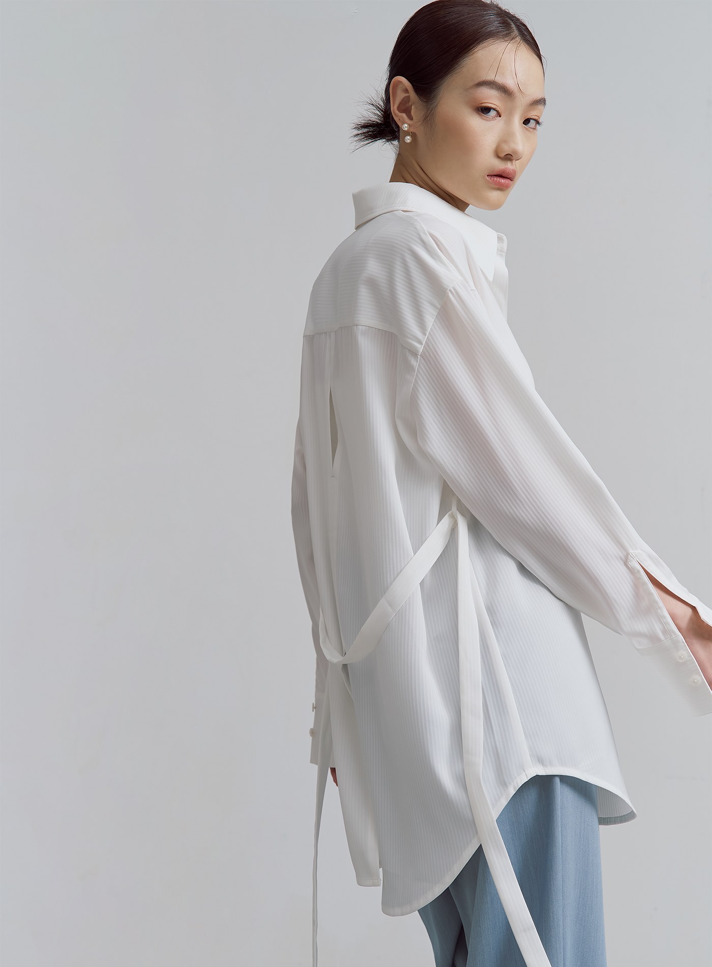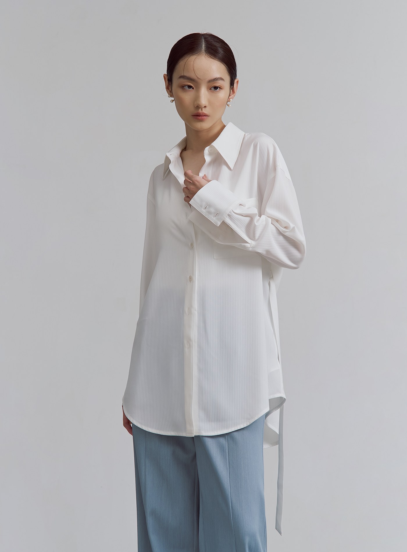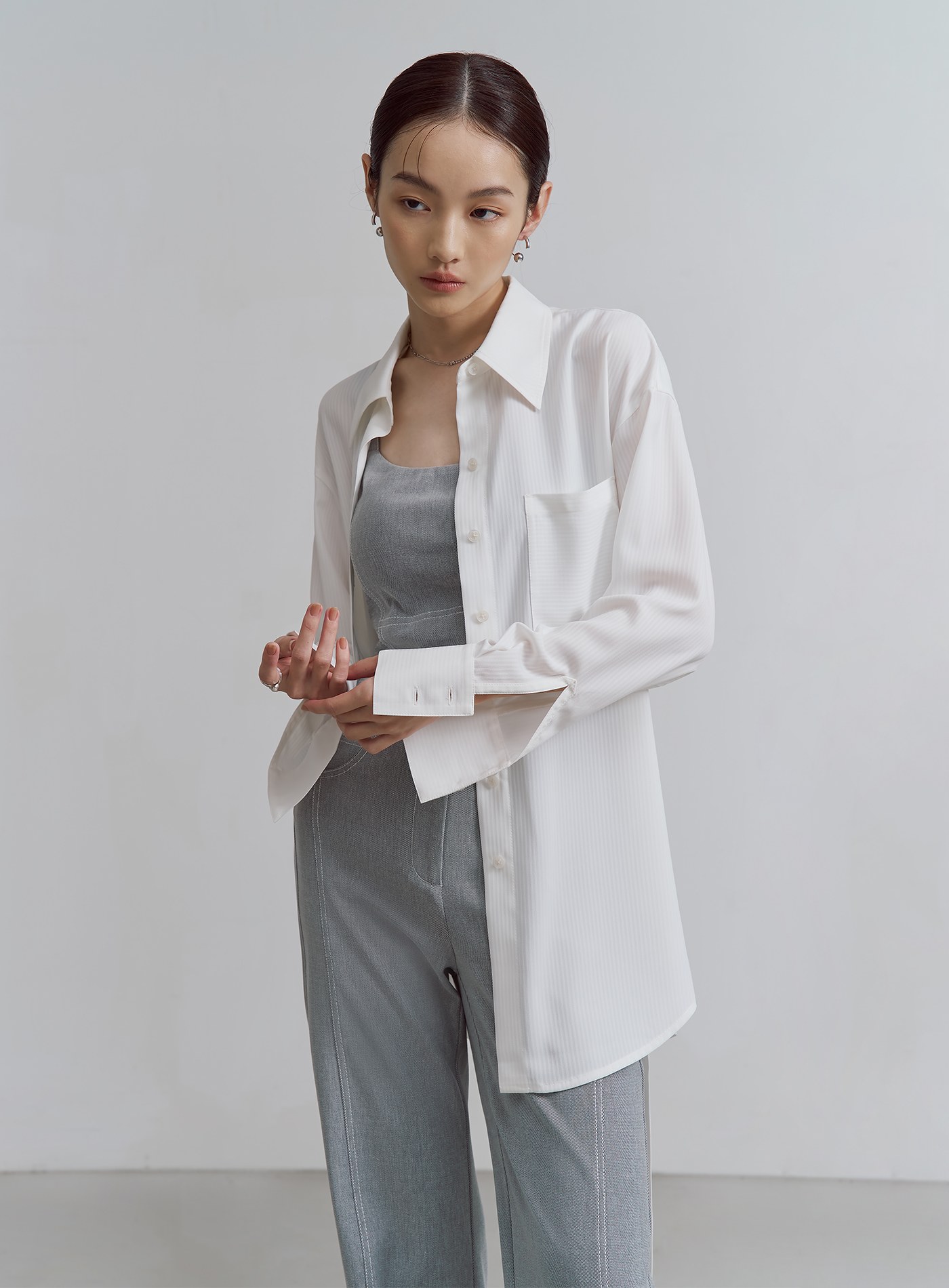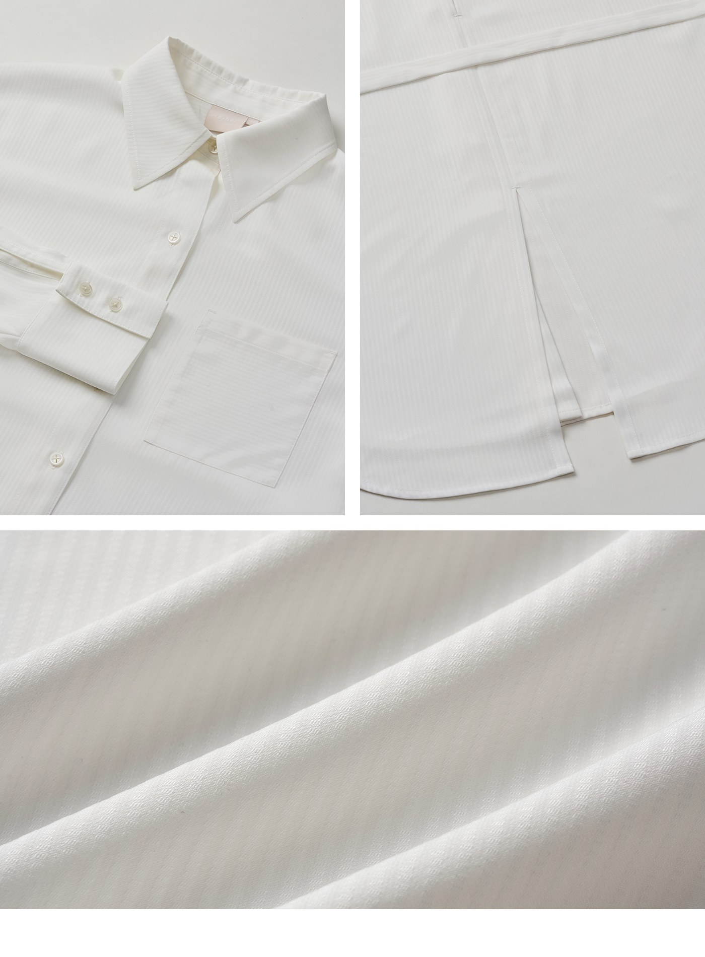 - 選用精緻的暗緹花條紋面料,微透霧面光澤