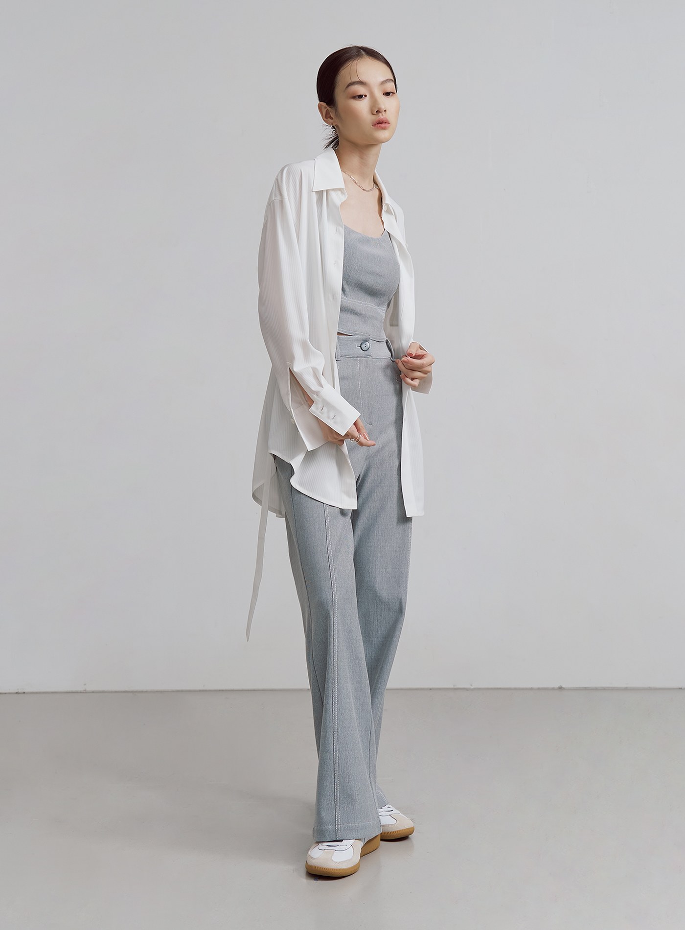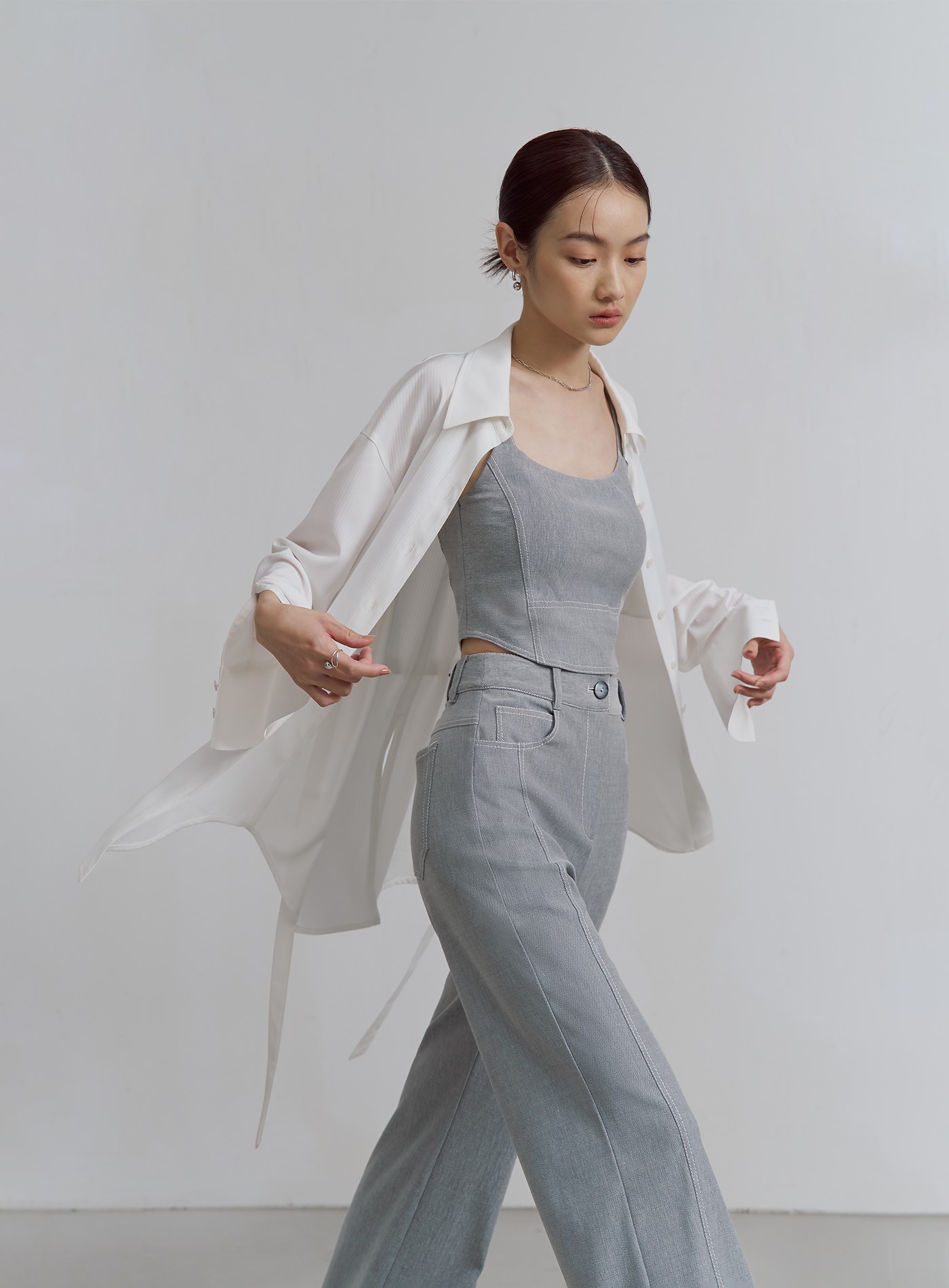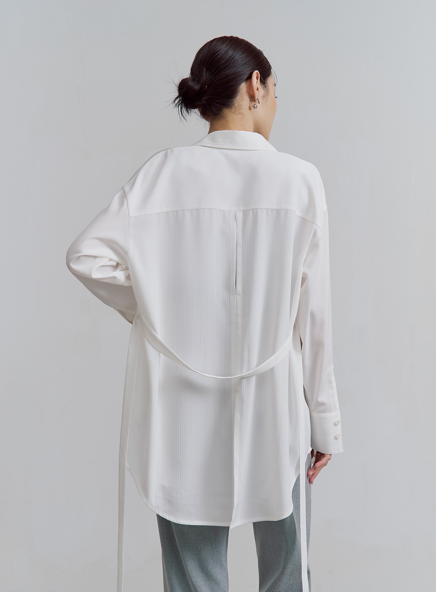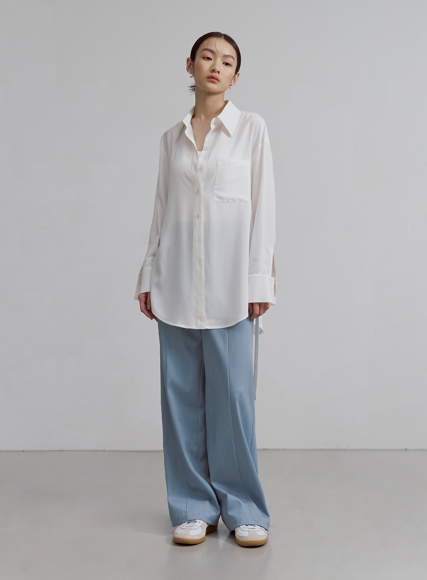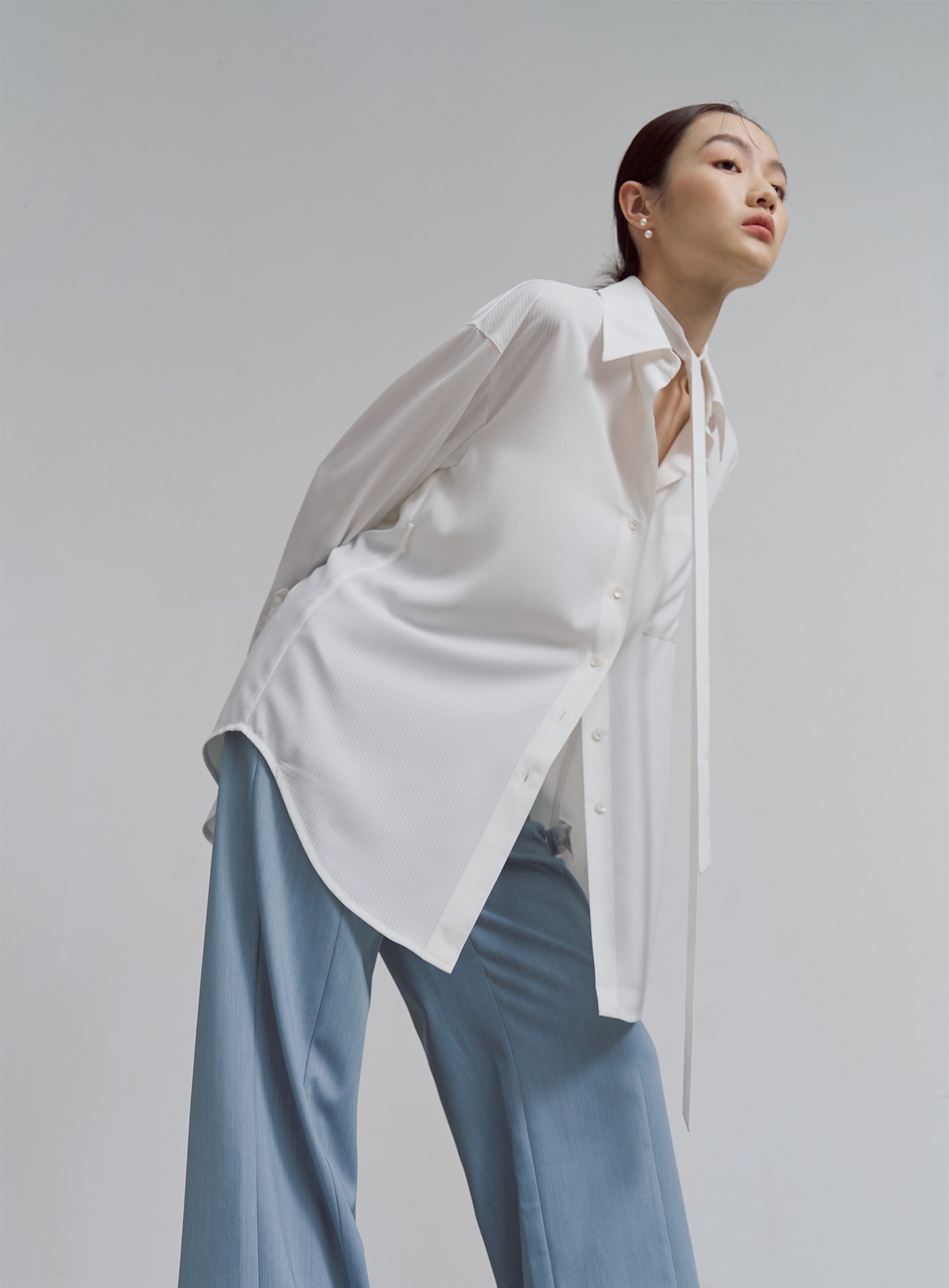 - 選用精緻的暗緹花條紋面料,微透霧面光澤