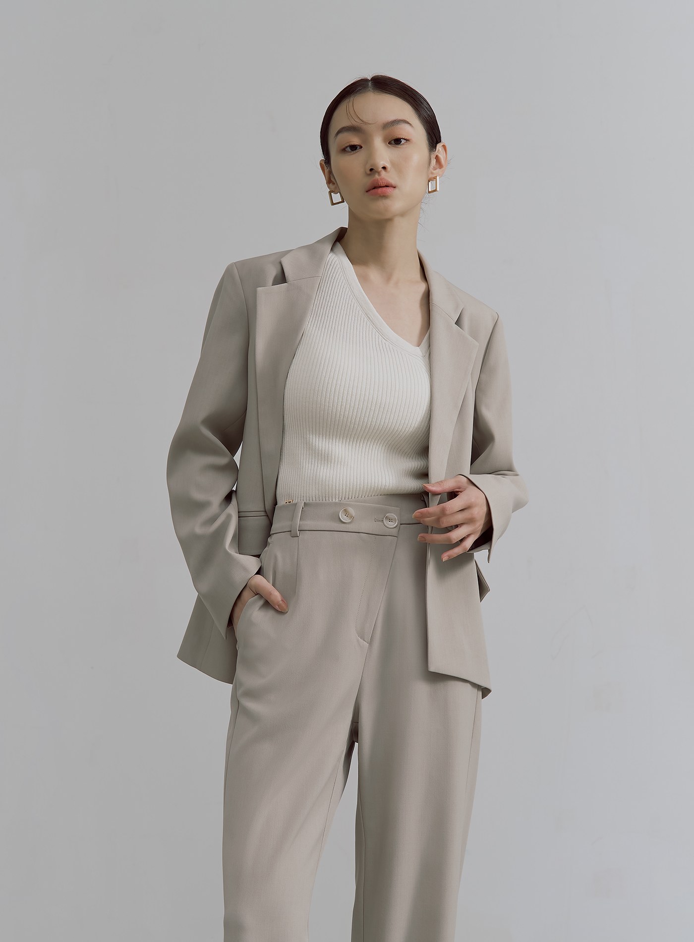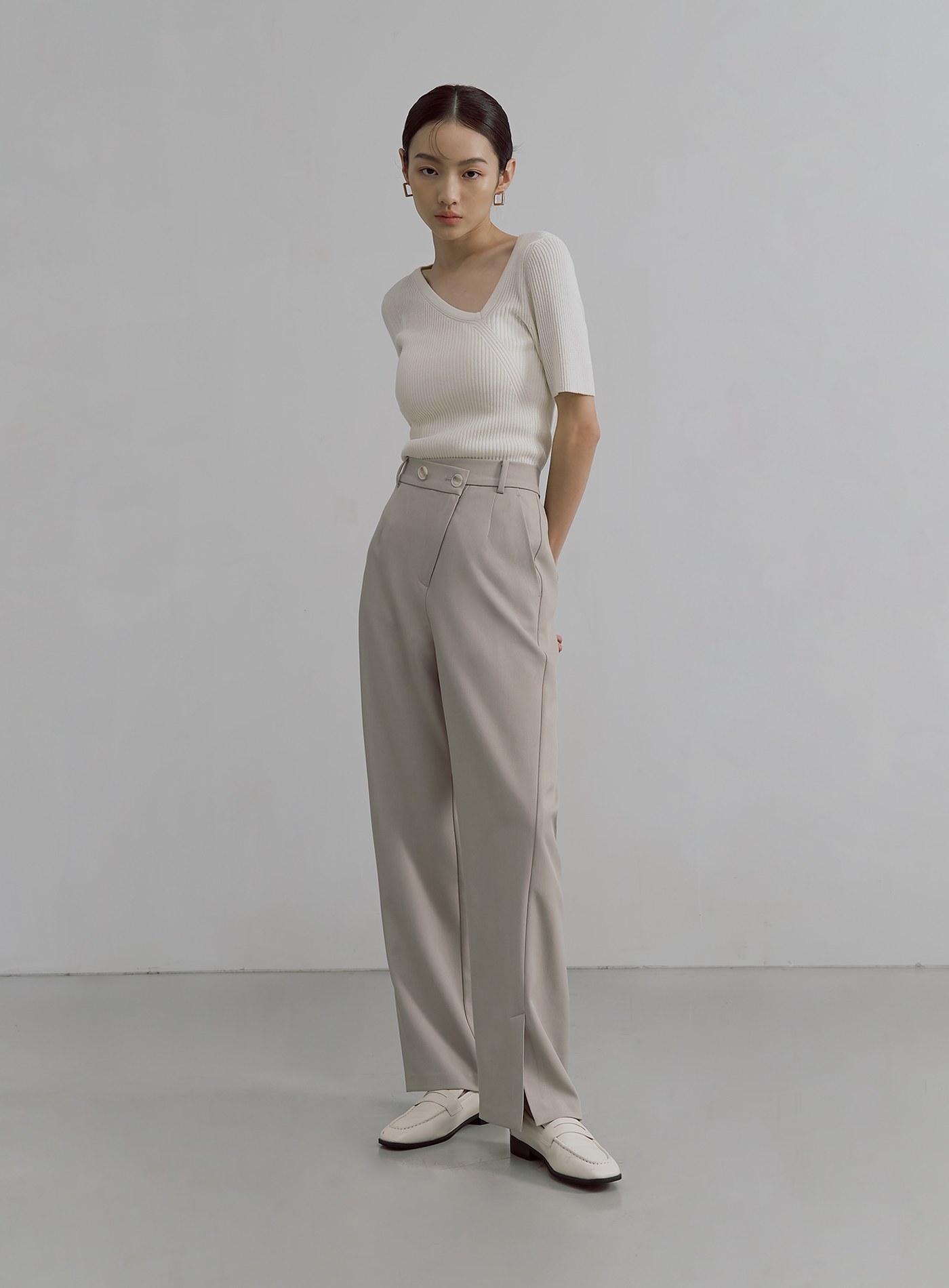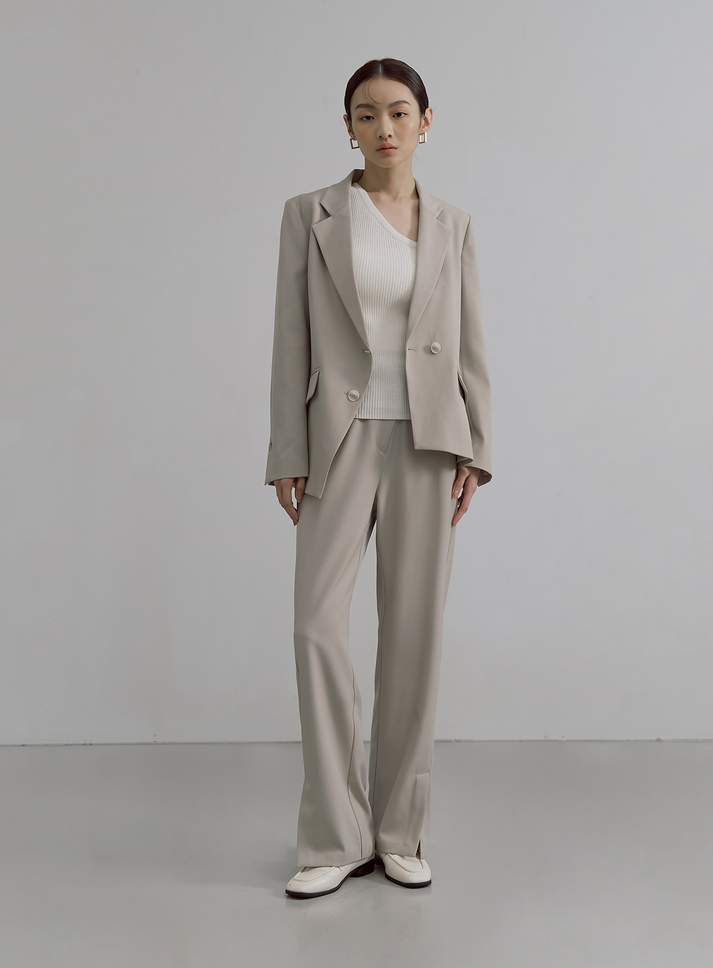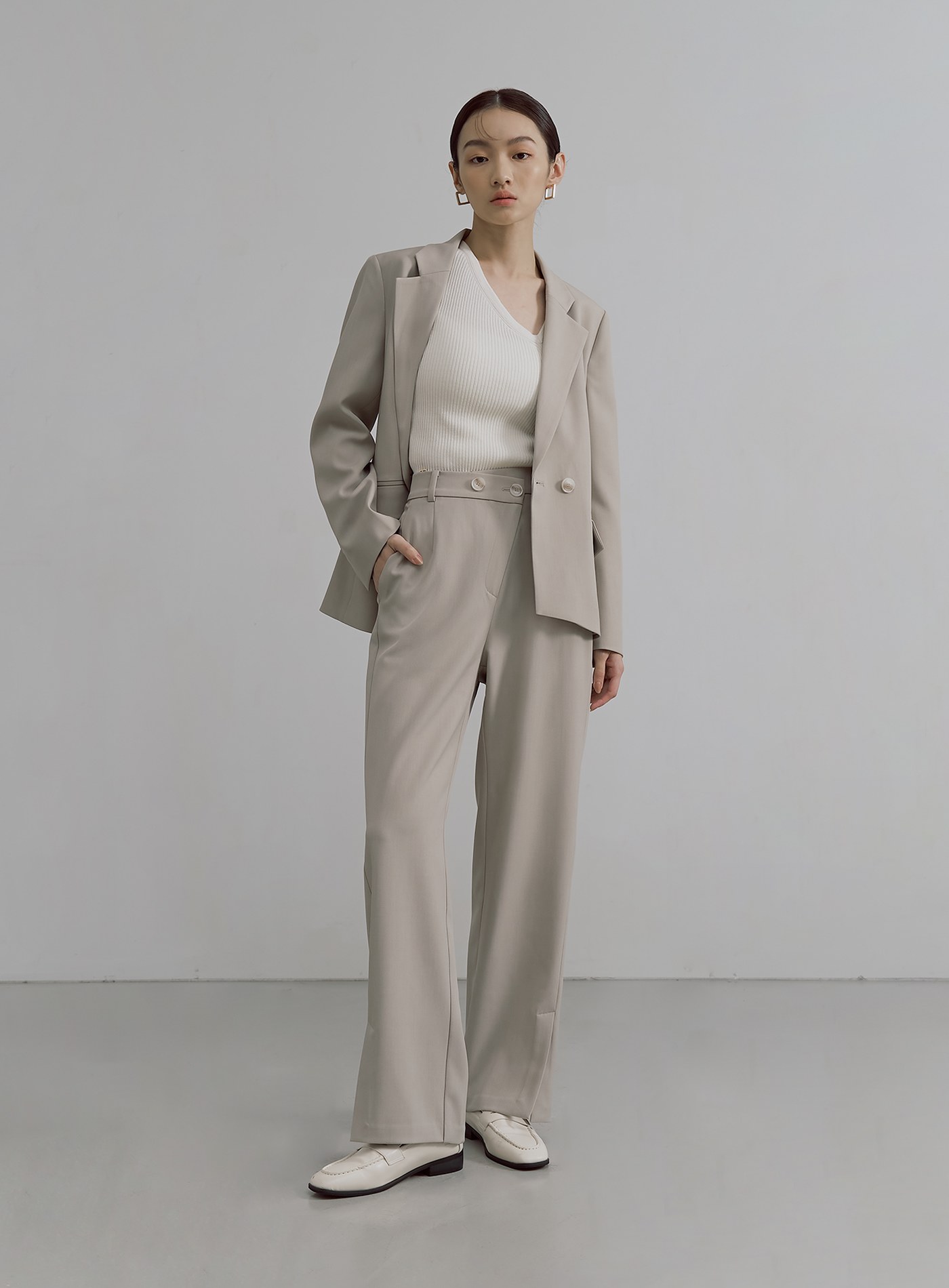 時髦腰頭雙釦側開衩西裝褲$70 USD