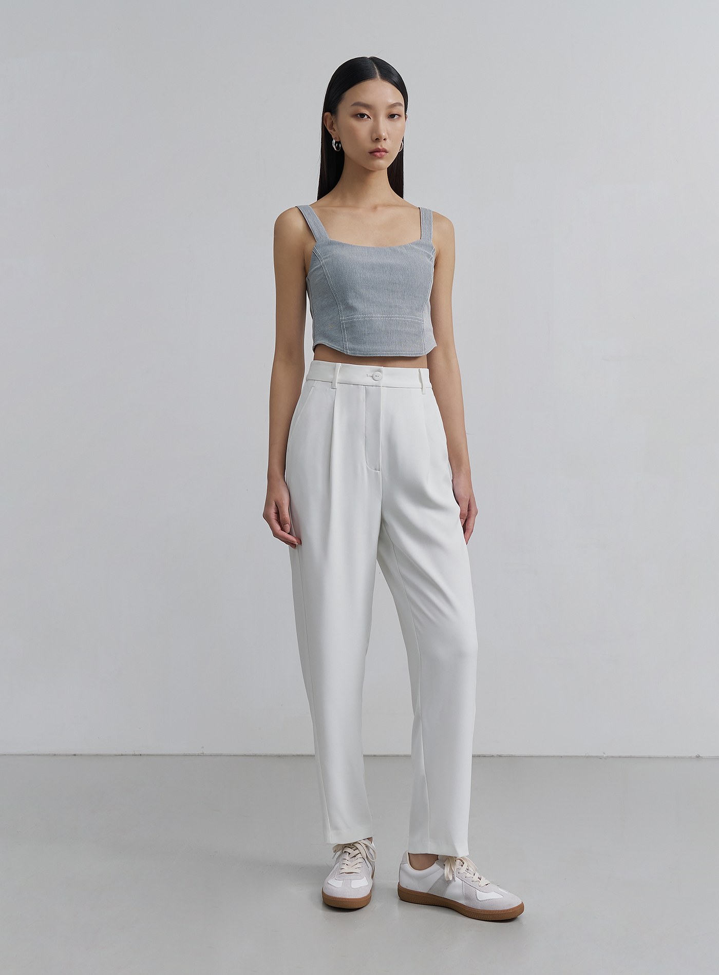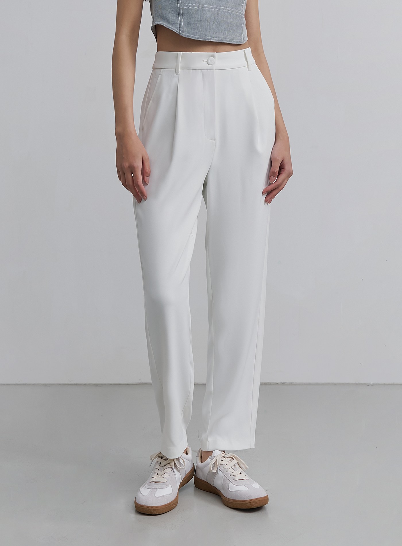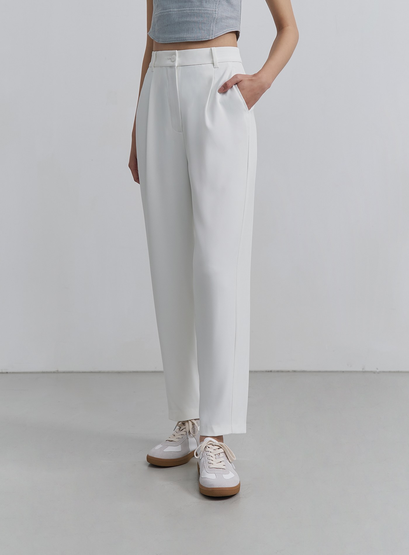 - 經典錐形九分西裝褲褲,正面壓褶設計