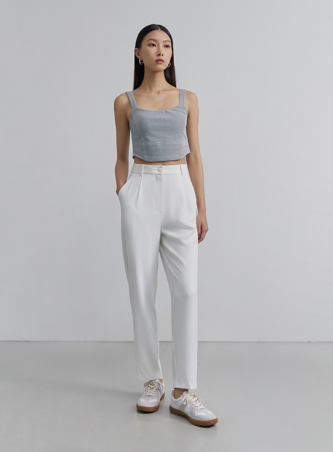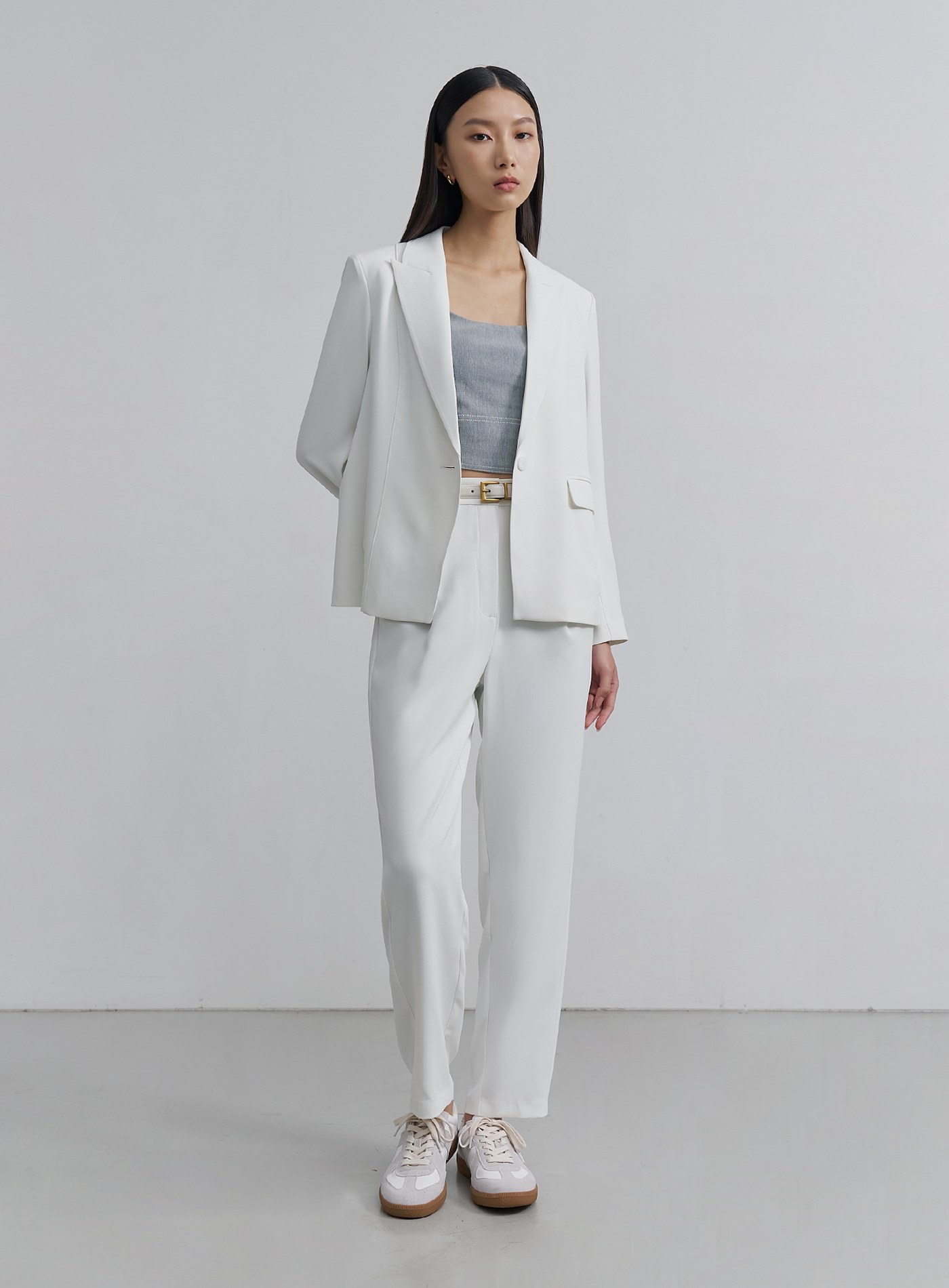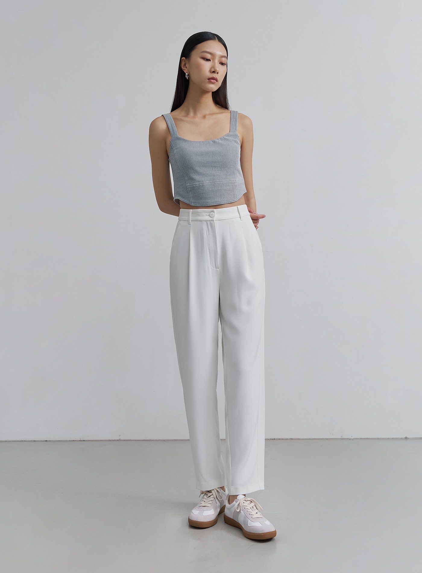 - 經典錐形九分西裝褲褲,正面壓褶設計