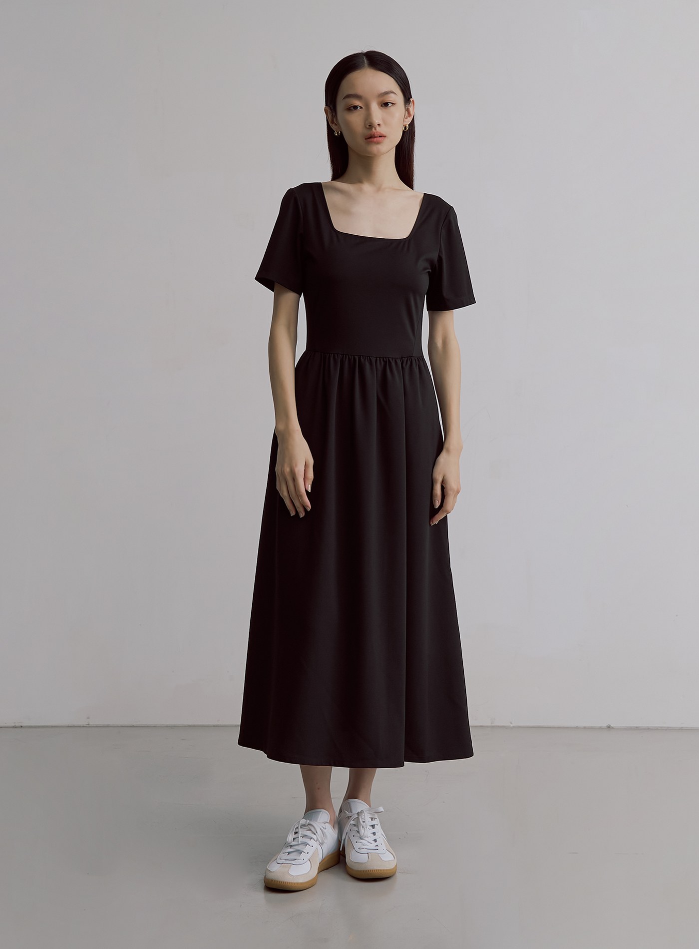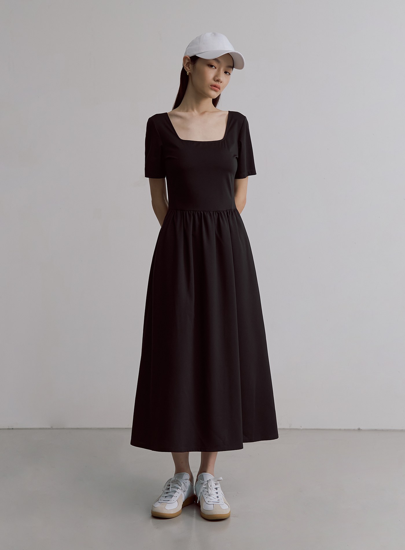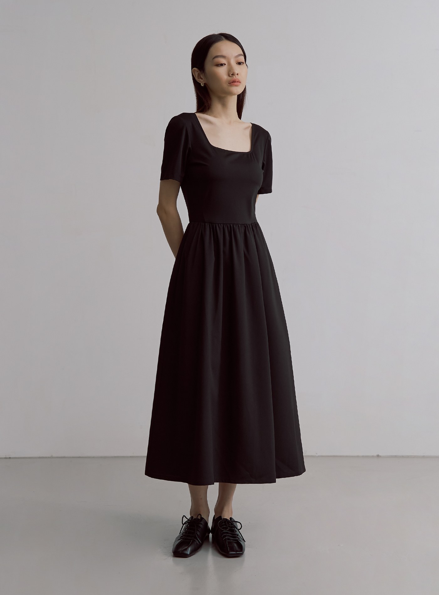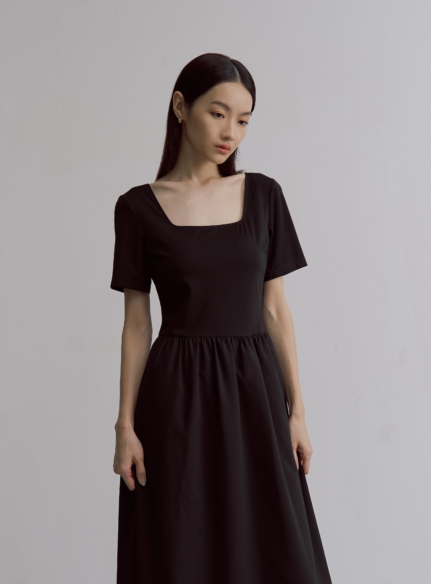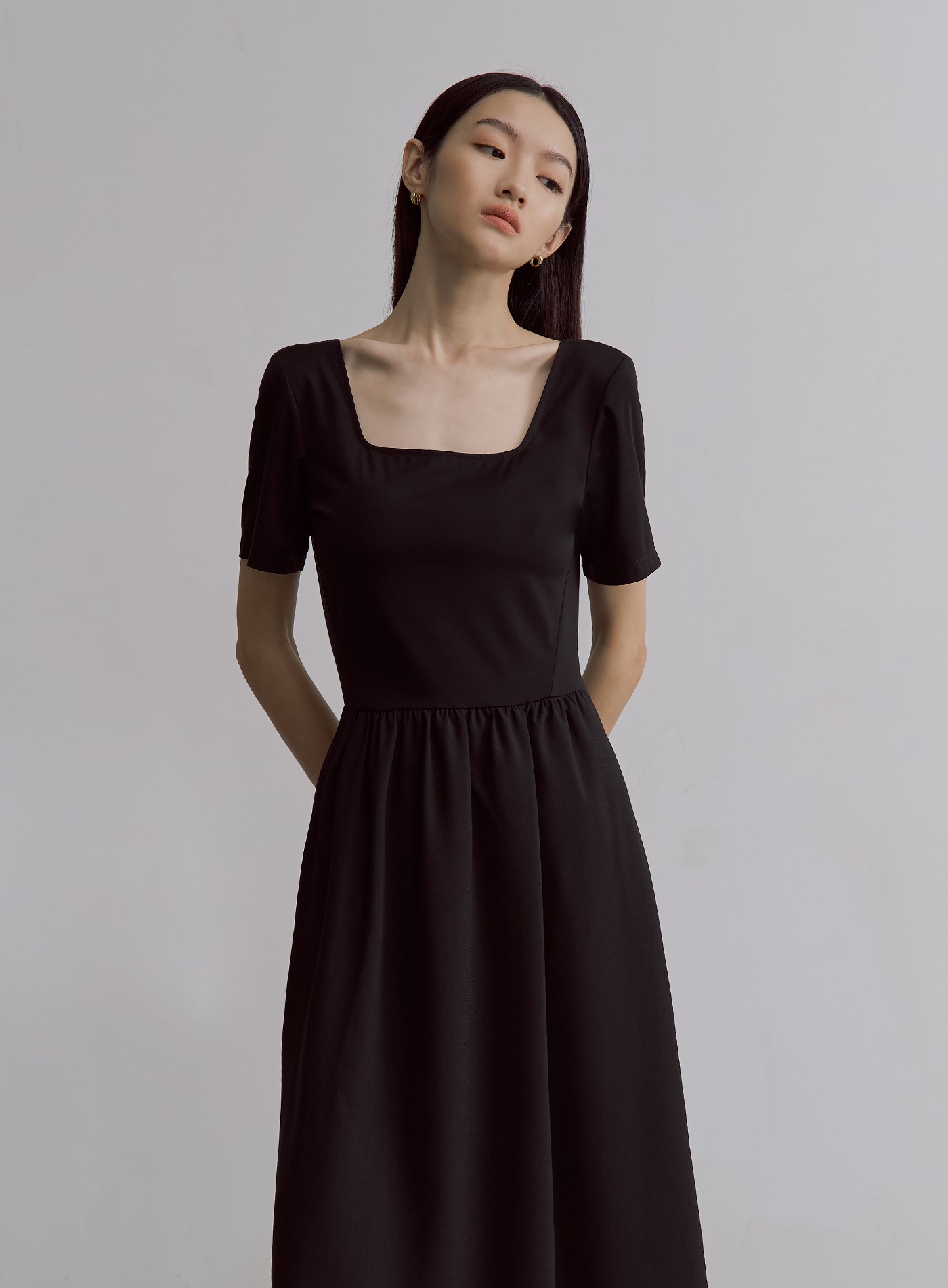- 短袖方領設計,展現纖細肩頸亦可修飾手臂