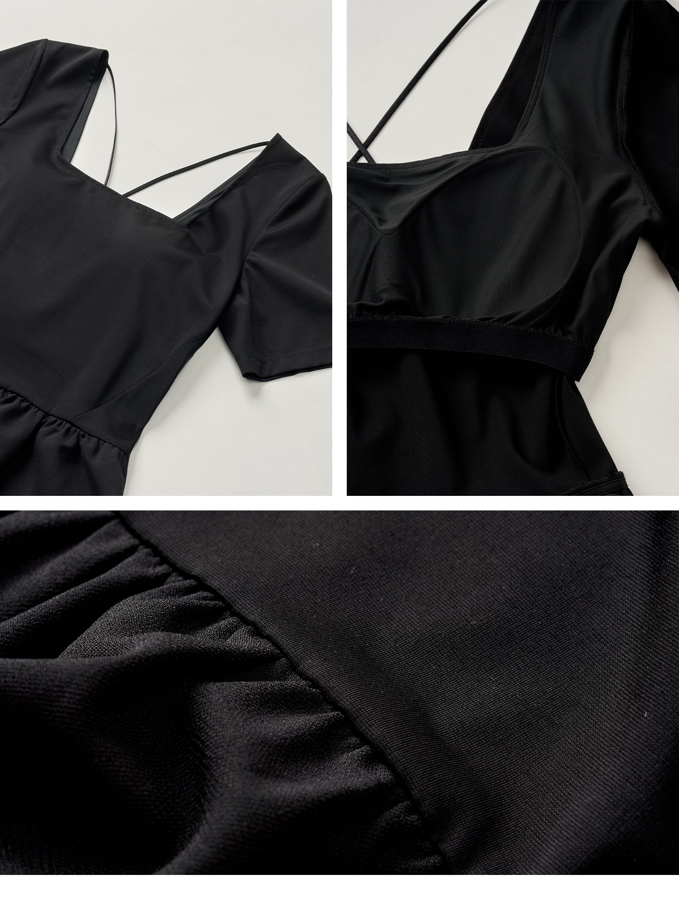 - 上身修身,腰部抽皺形成澎裙廓形,完美修飾身形
