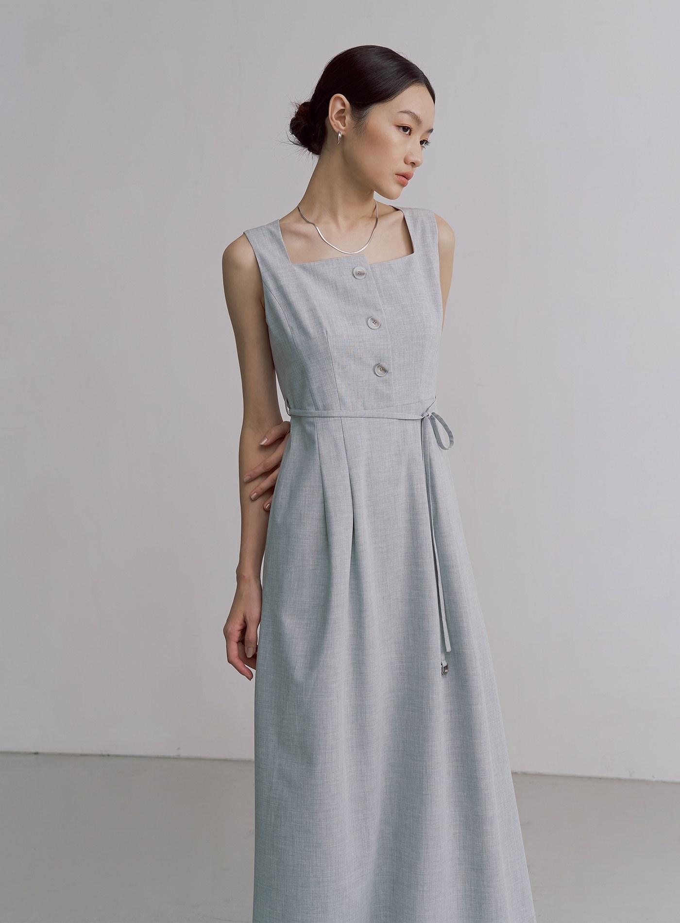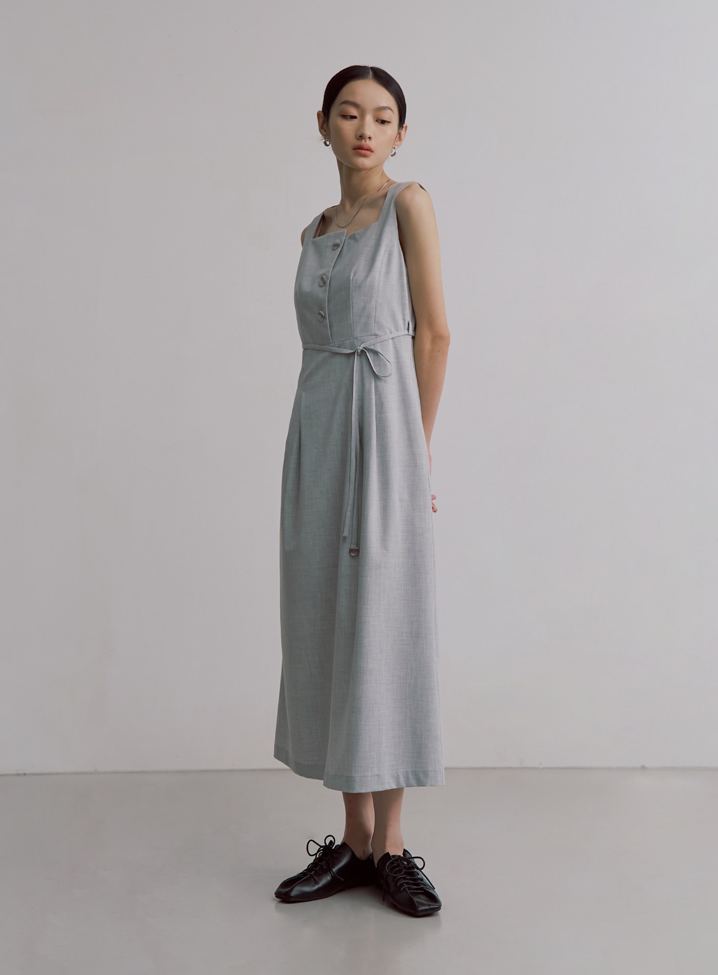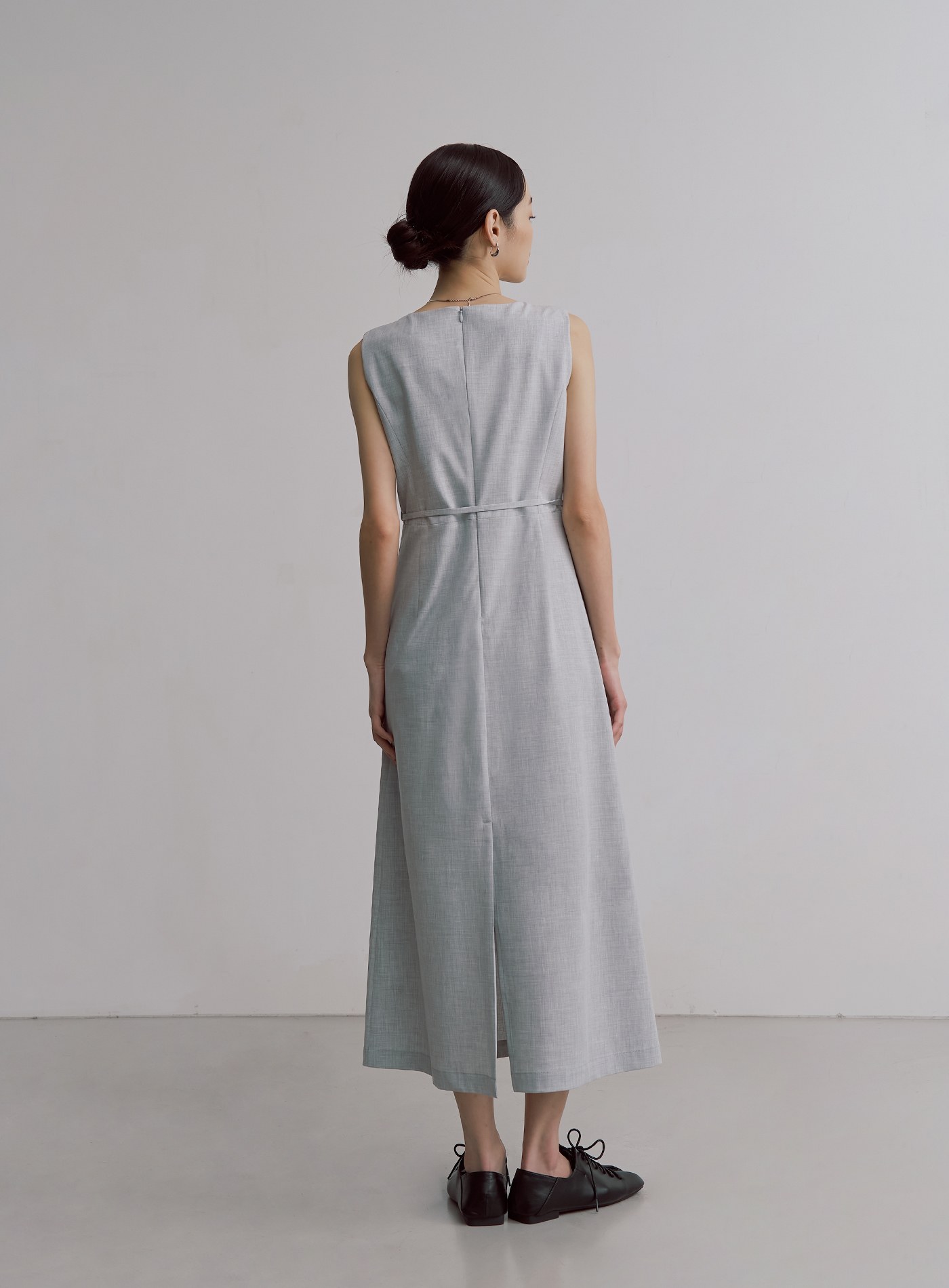 無袖壓摺綁帶飄逸洋裝$79 USD