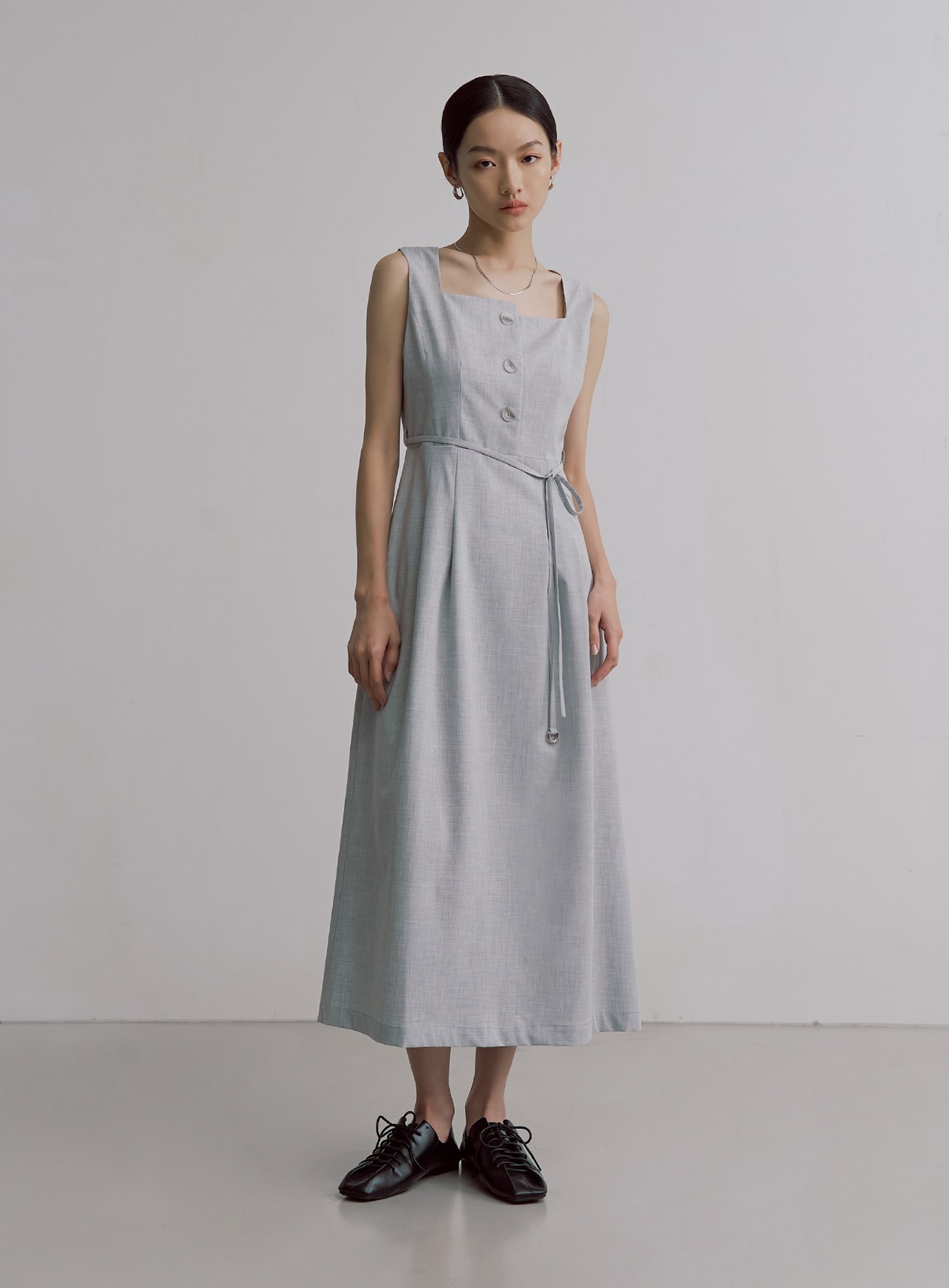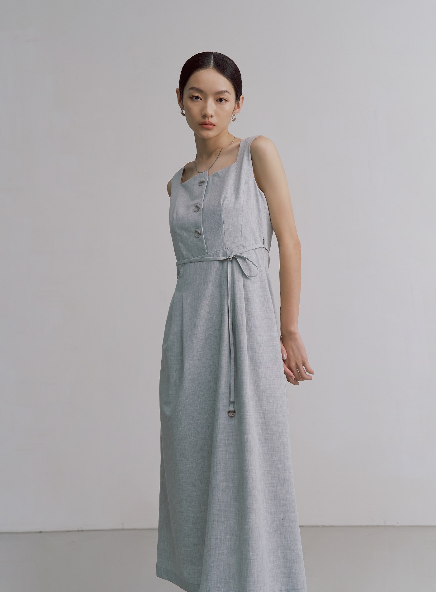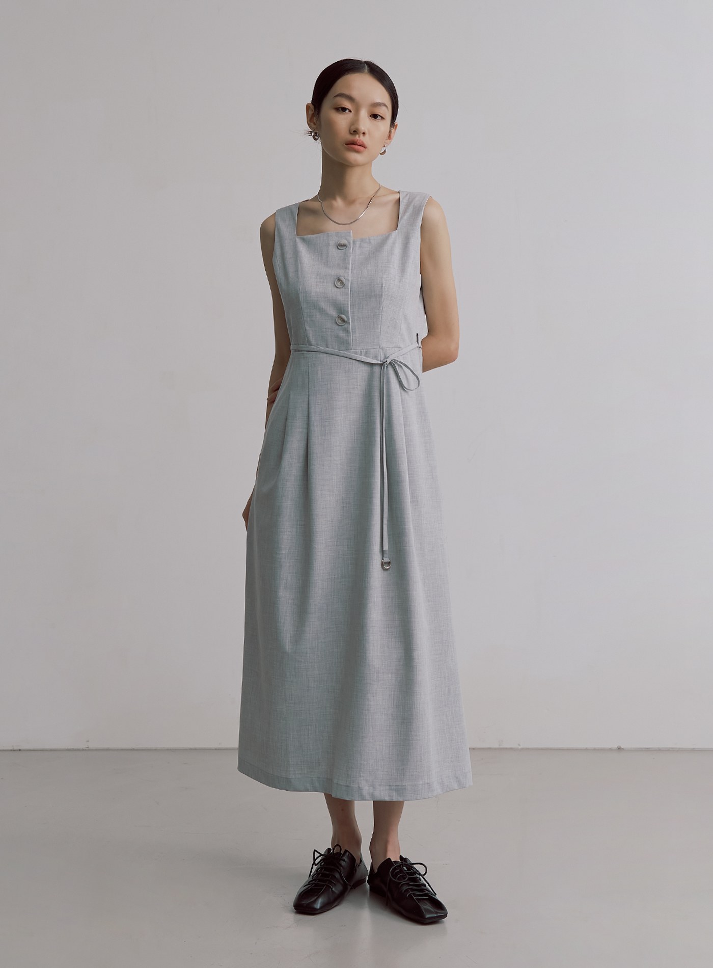 無袖壓摺綁帶飄逸洋裝$79 USD