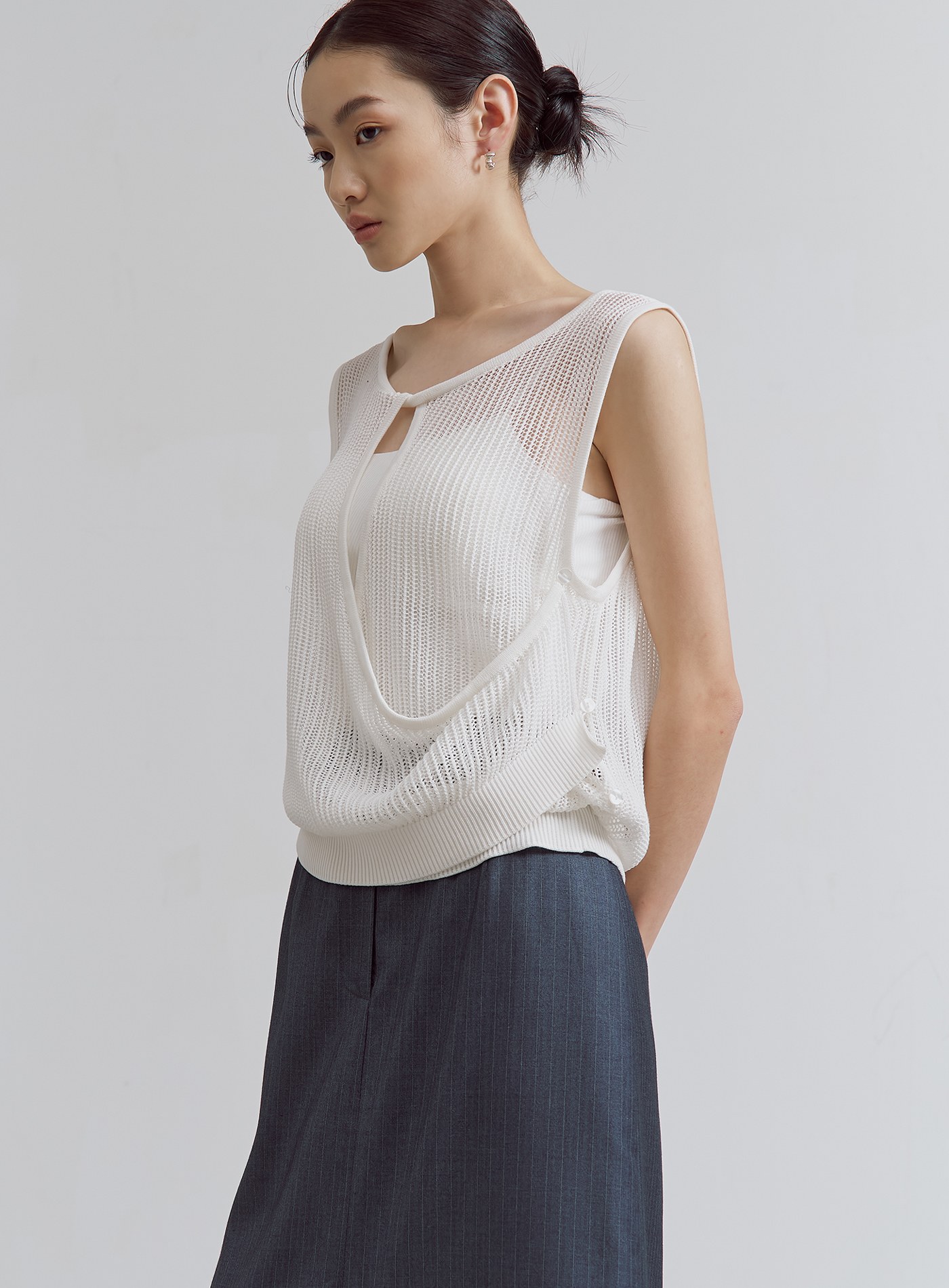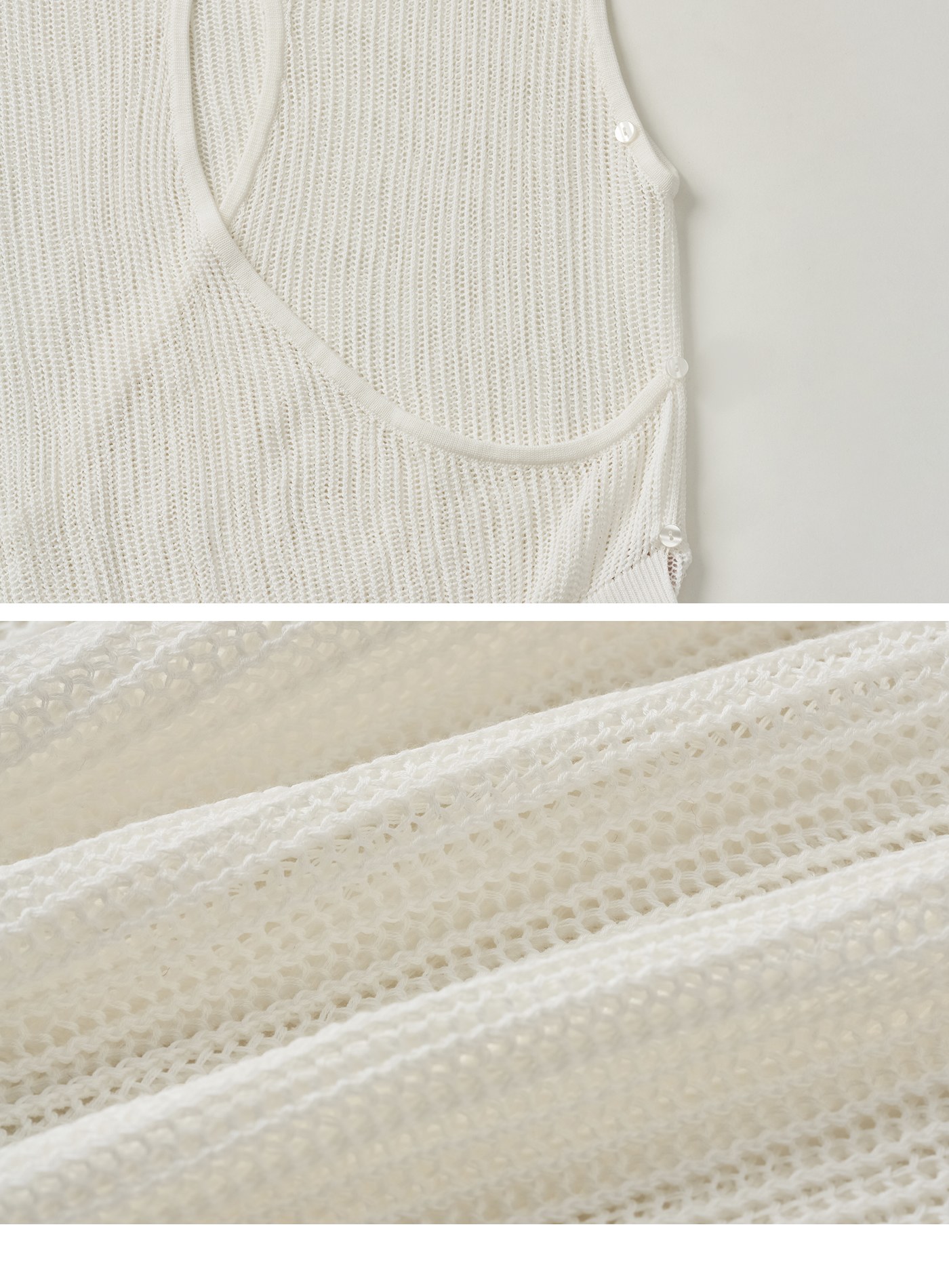- 選用網洞組織針織結構,鏤空隱約露出肌膚
