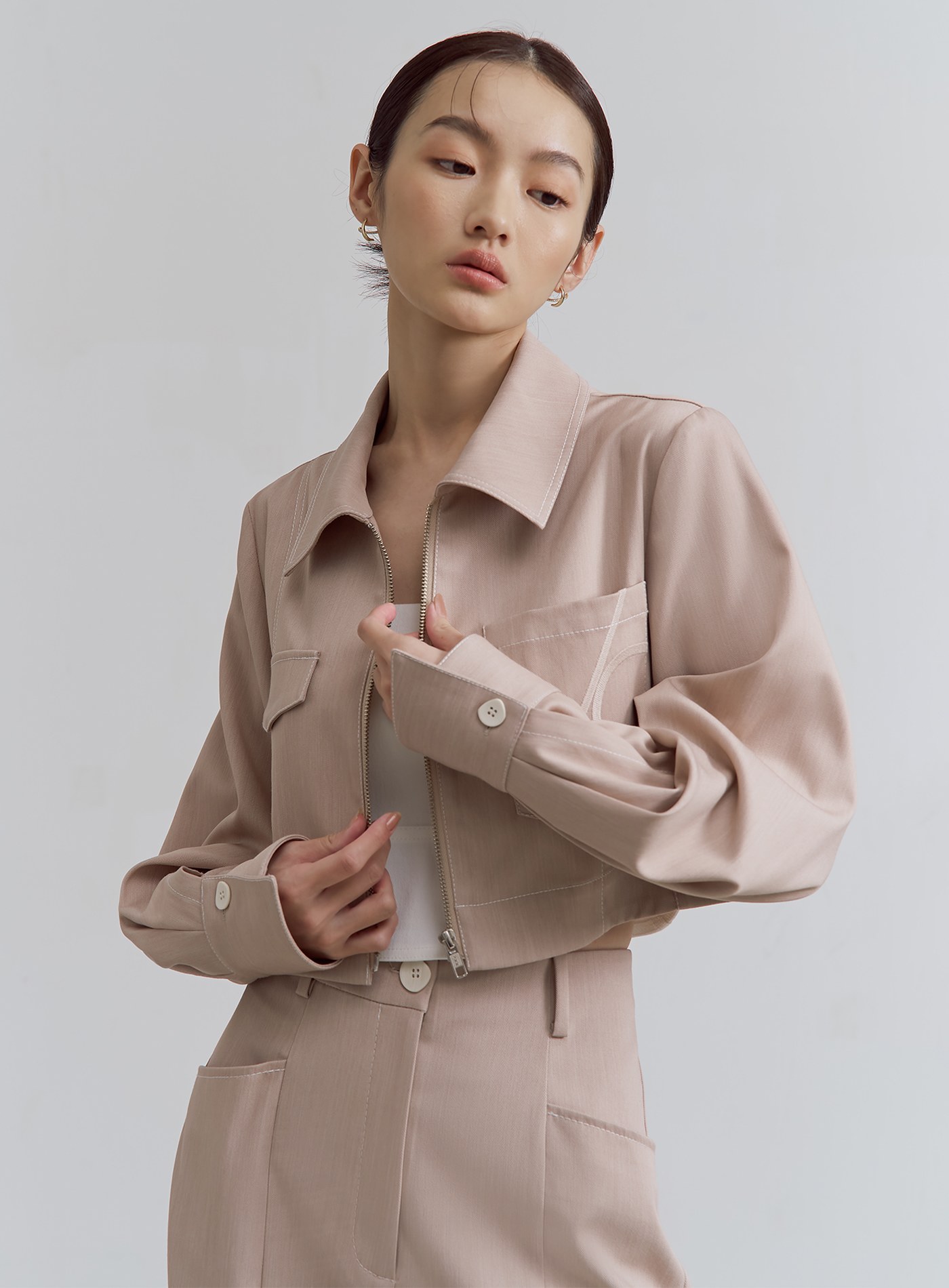 - 仿牛仔壓線,微澎袖造型,袖口開衩前移