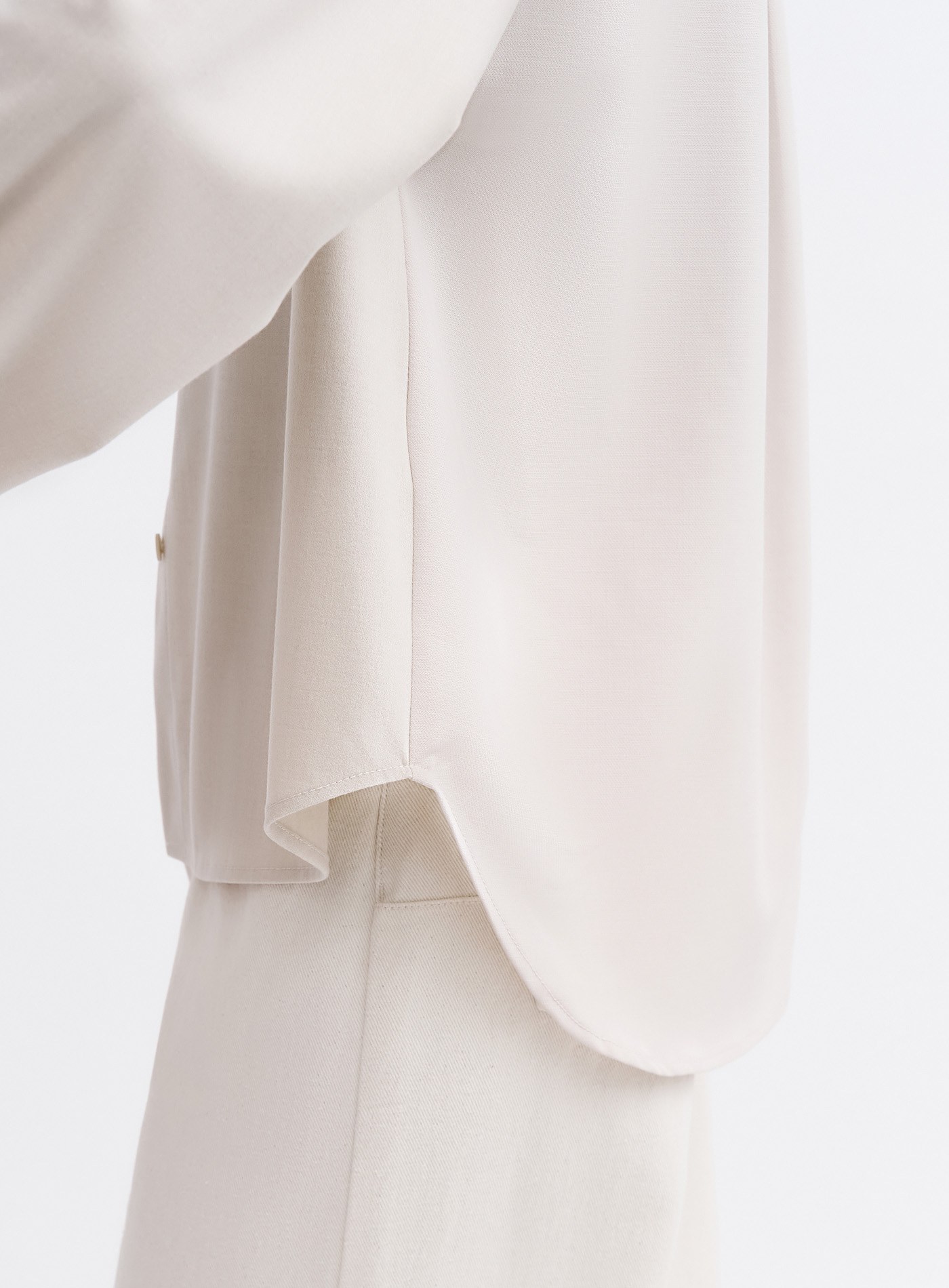 - 異素材拼接,雙色紗線面料