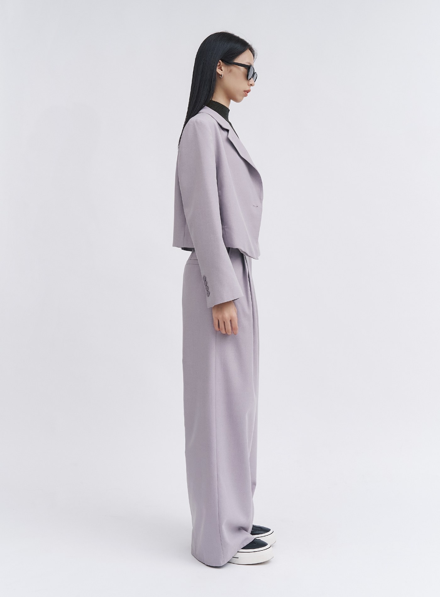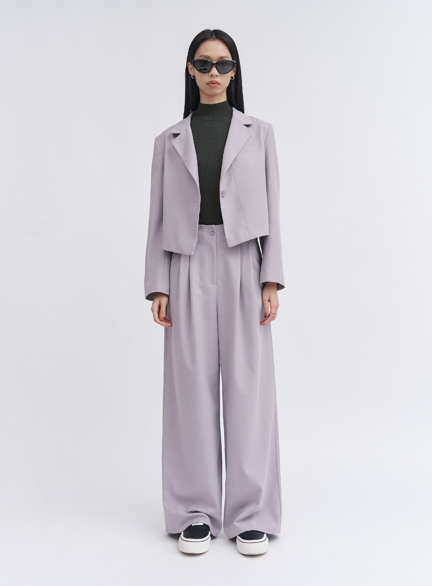 - 可與"簡約斜切短版西裝外套"搭配穿著