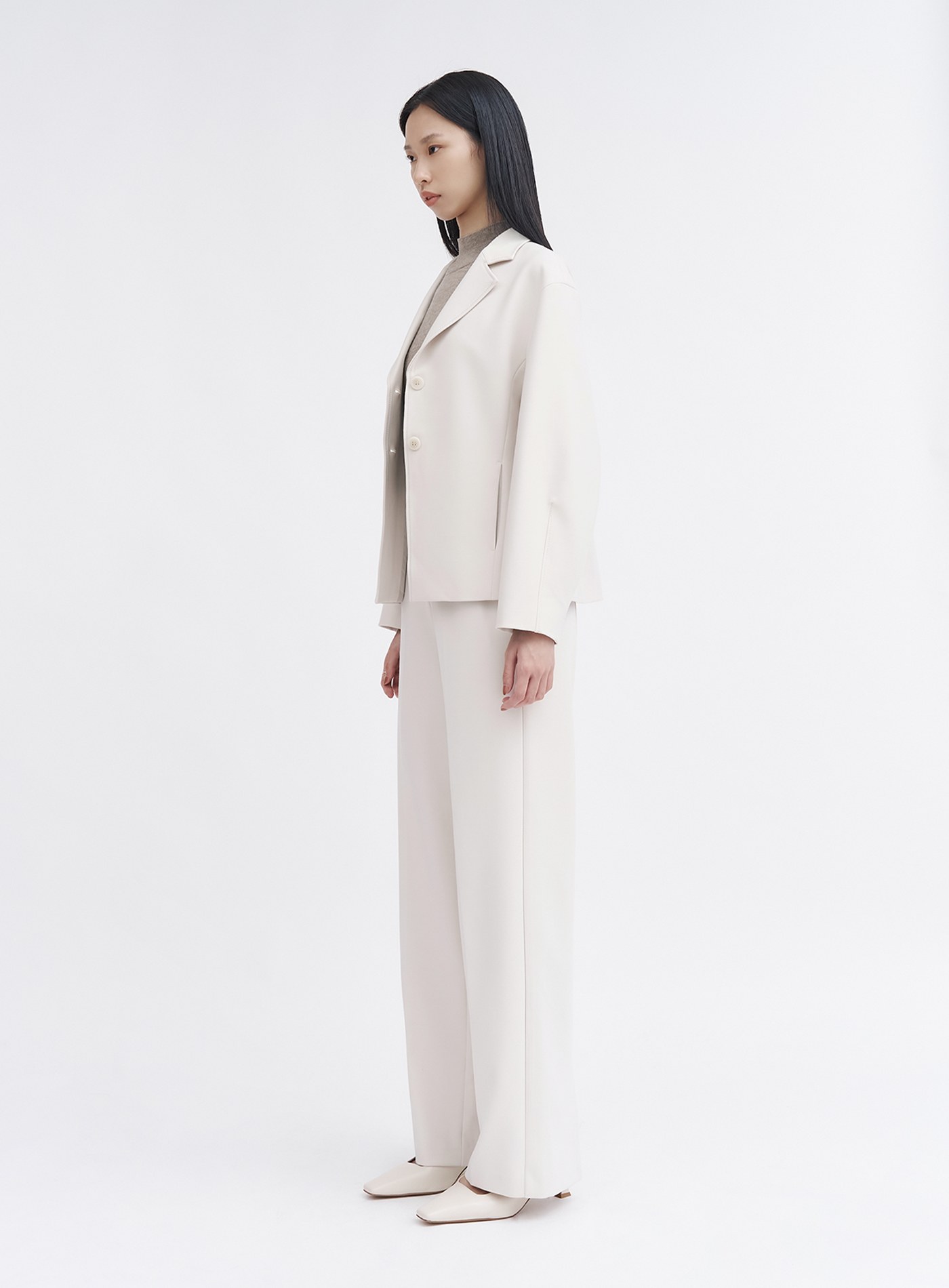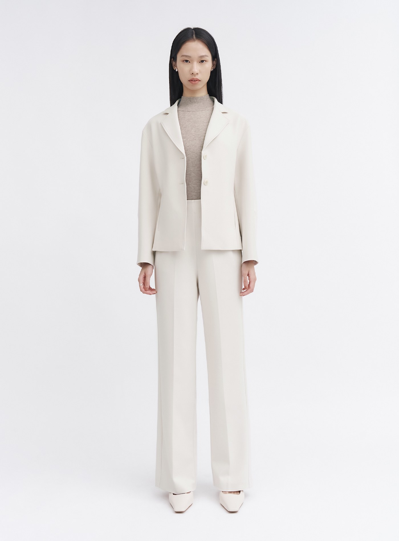 - 可與"經典挺廓收腰西裝外套"搭配穿著