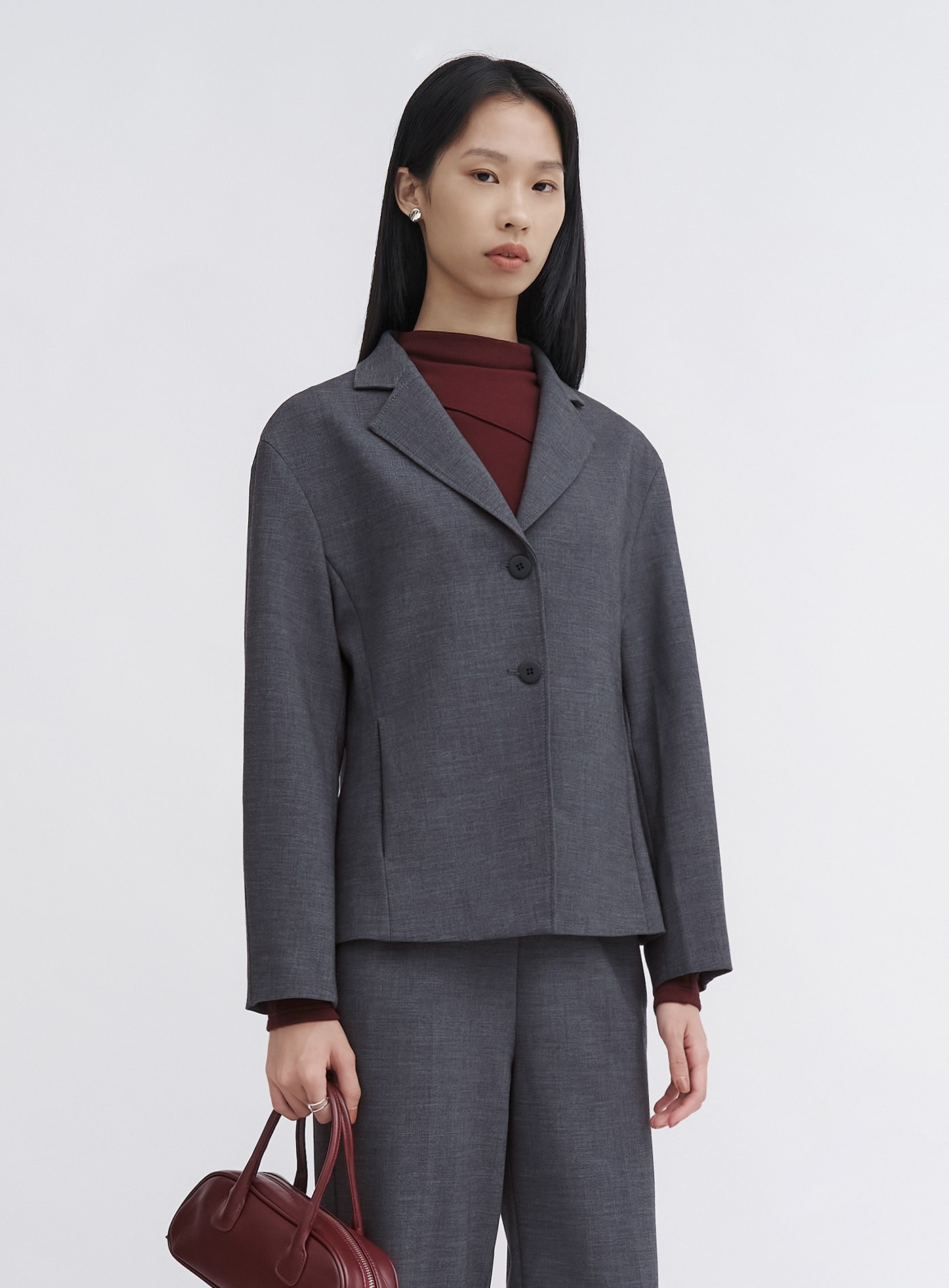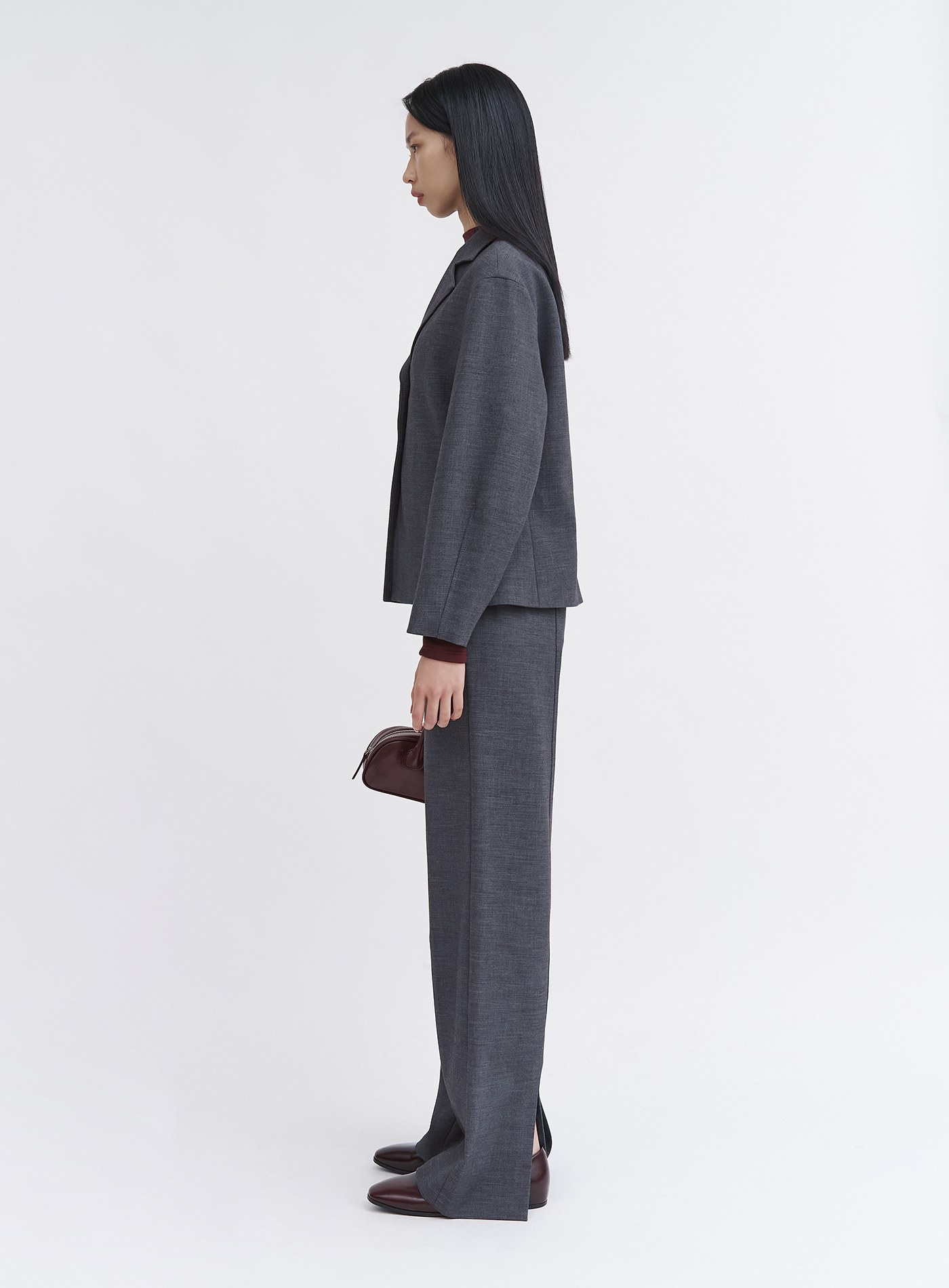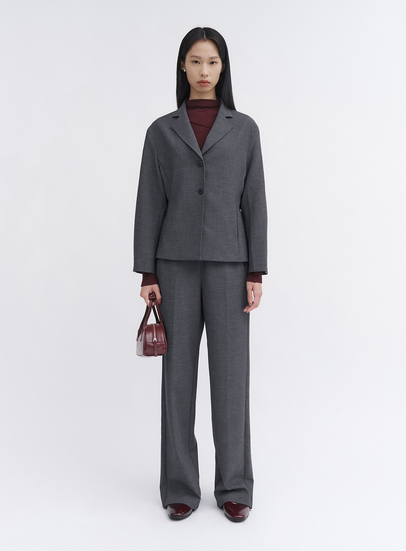 - 可與"經典挺廓無腰頭西裝褲"搭配穿著