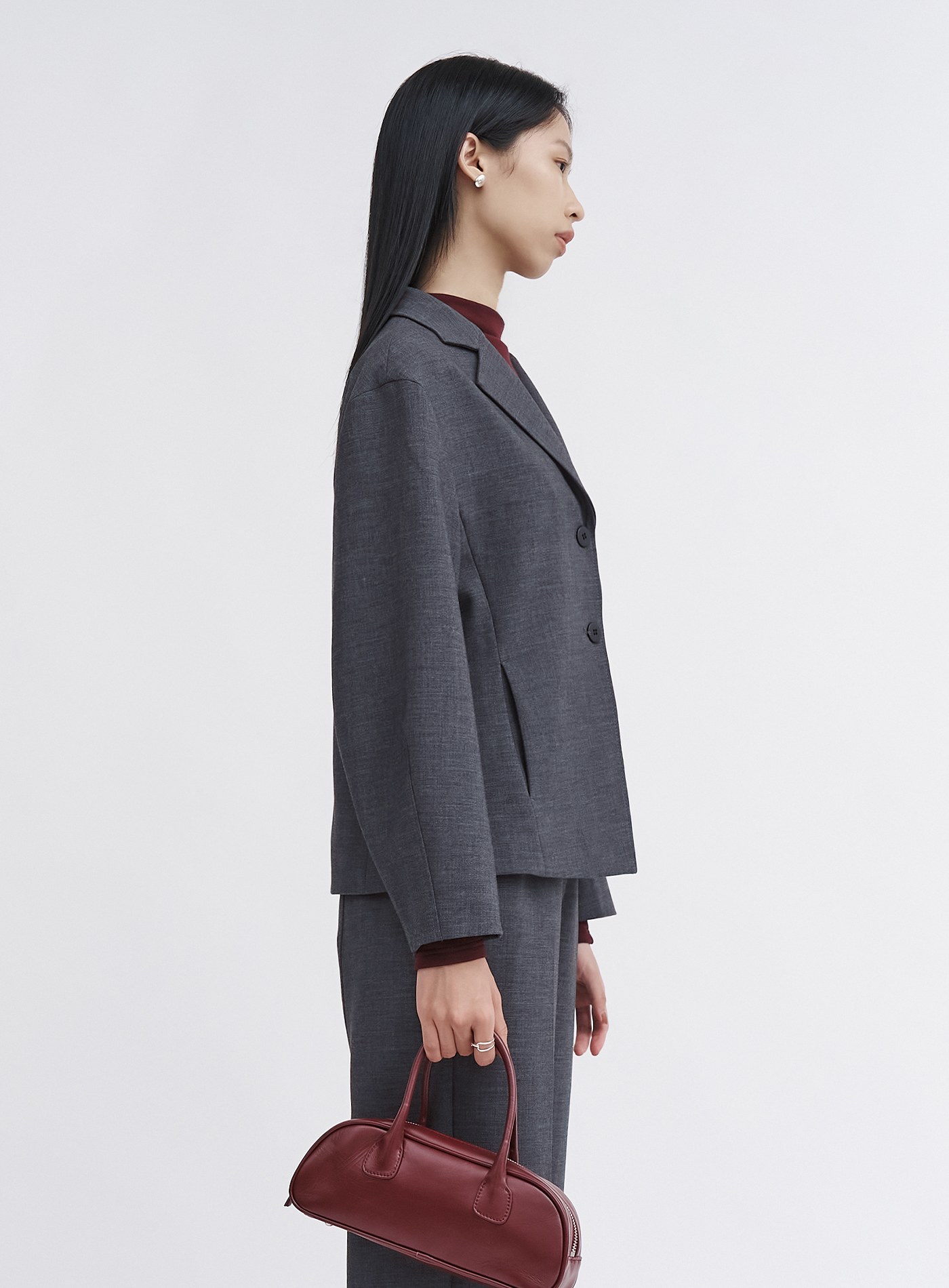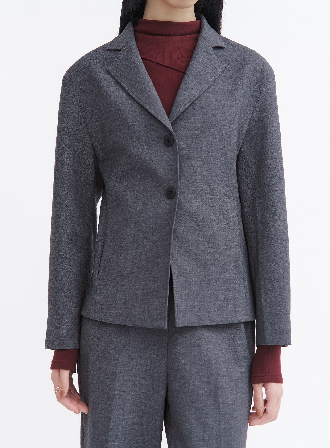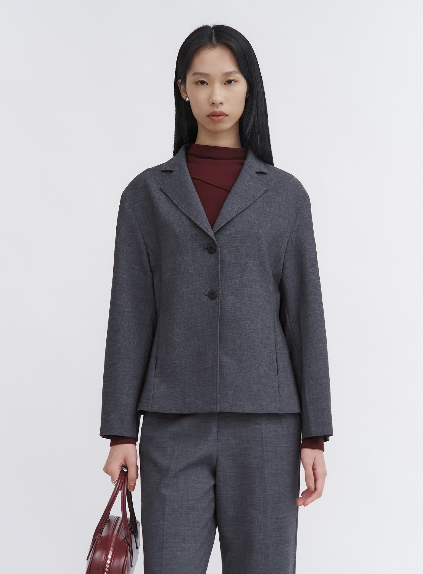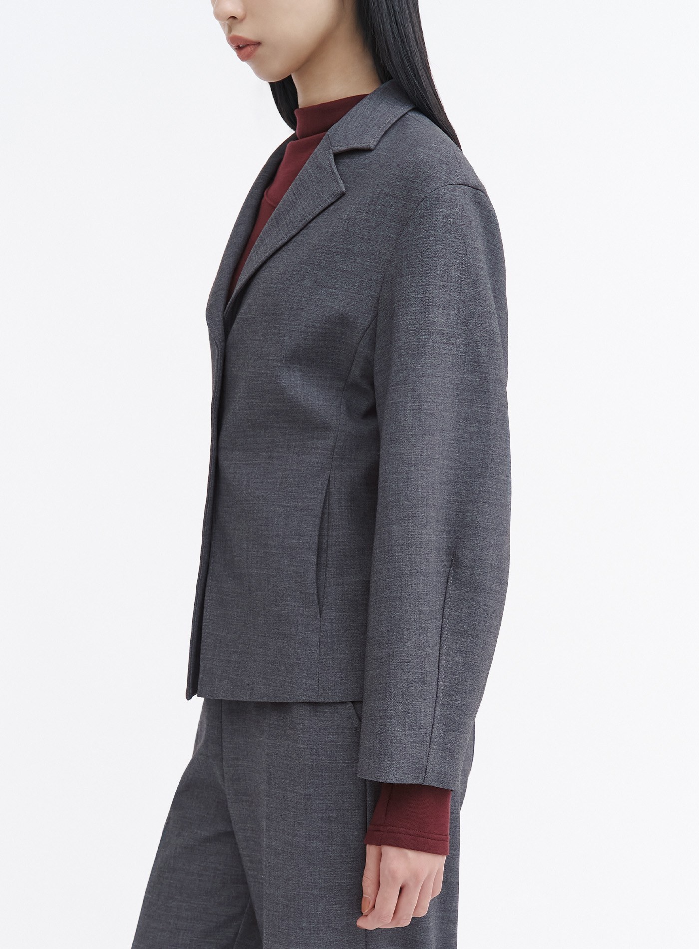 - 可與"經典挺廓無腰頭西裝褲"搭配穿著