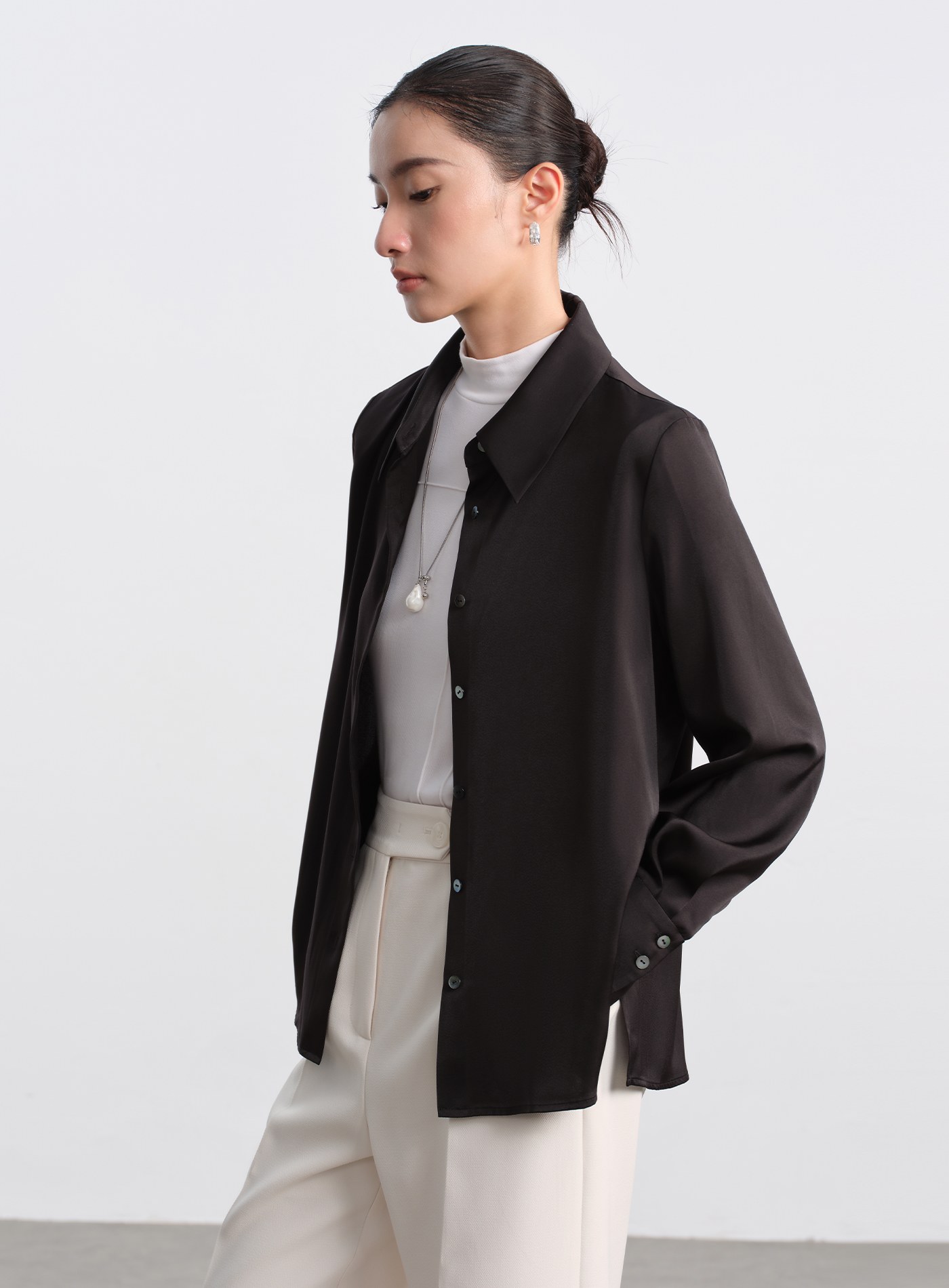 工裝風口袋紋理感雪紡襯衫$73 USD