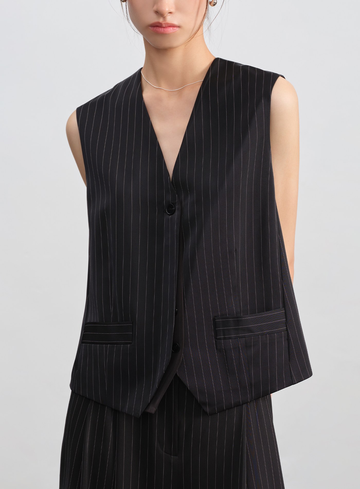 - 選用經典黑底白條西裝布,布面緊實垂墜,手感滑順柔軟