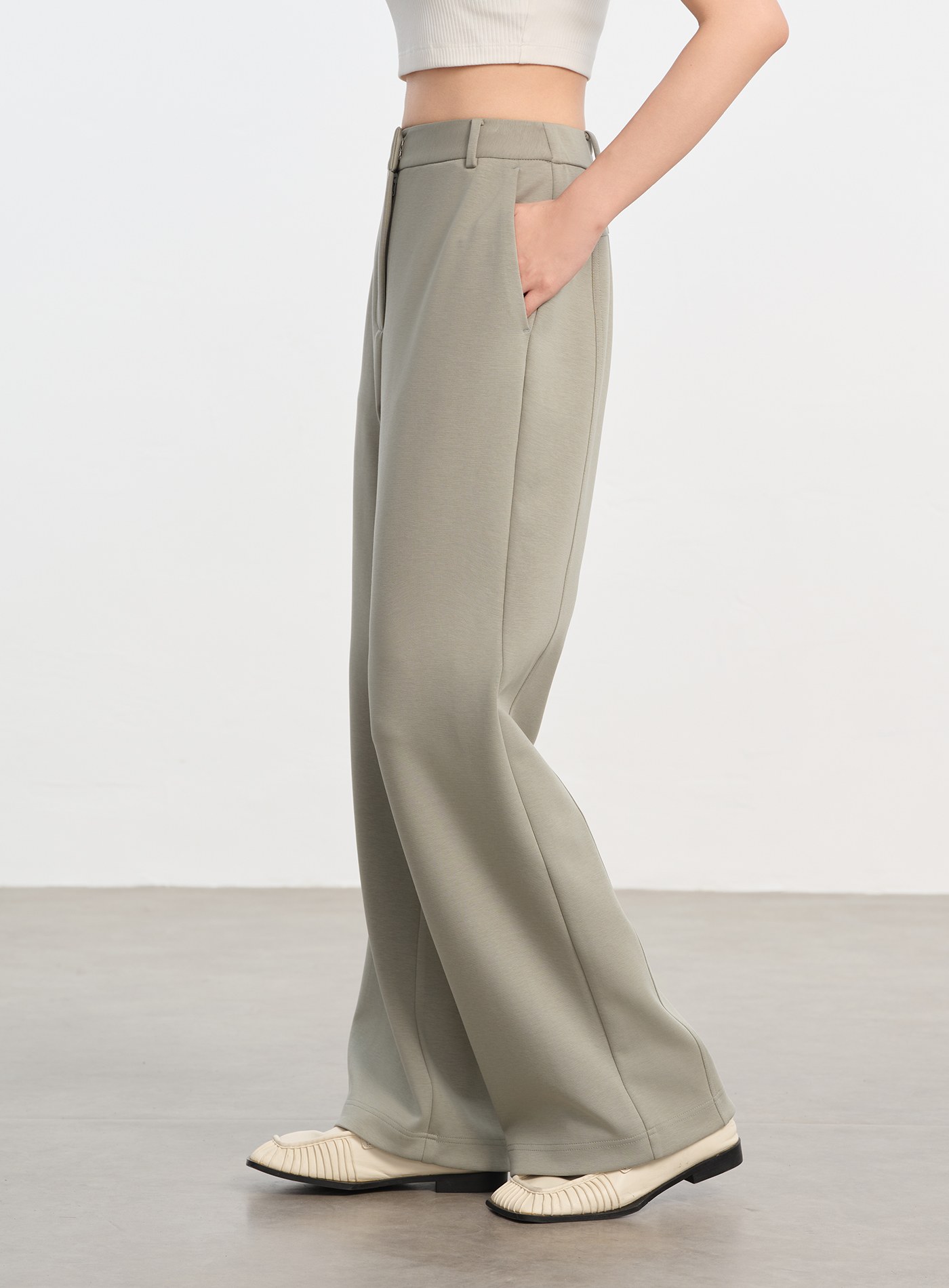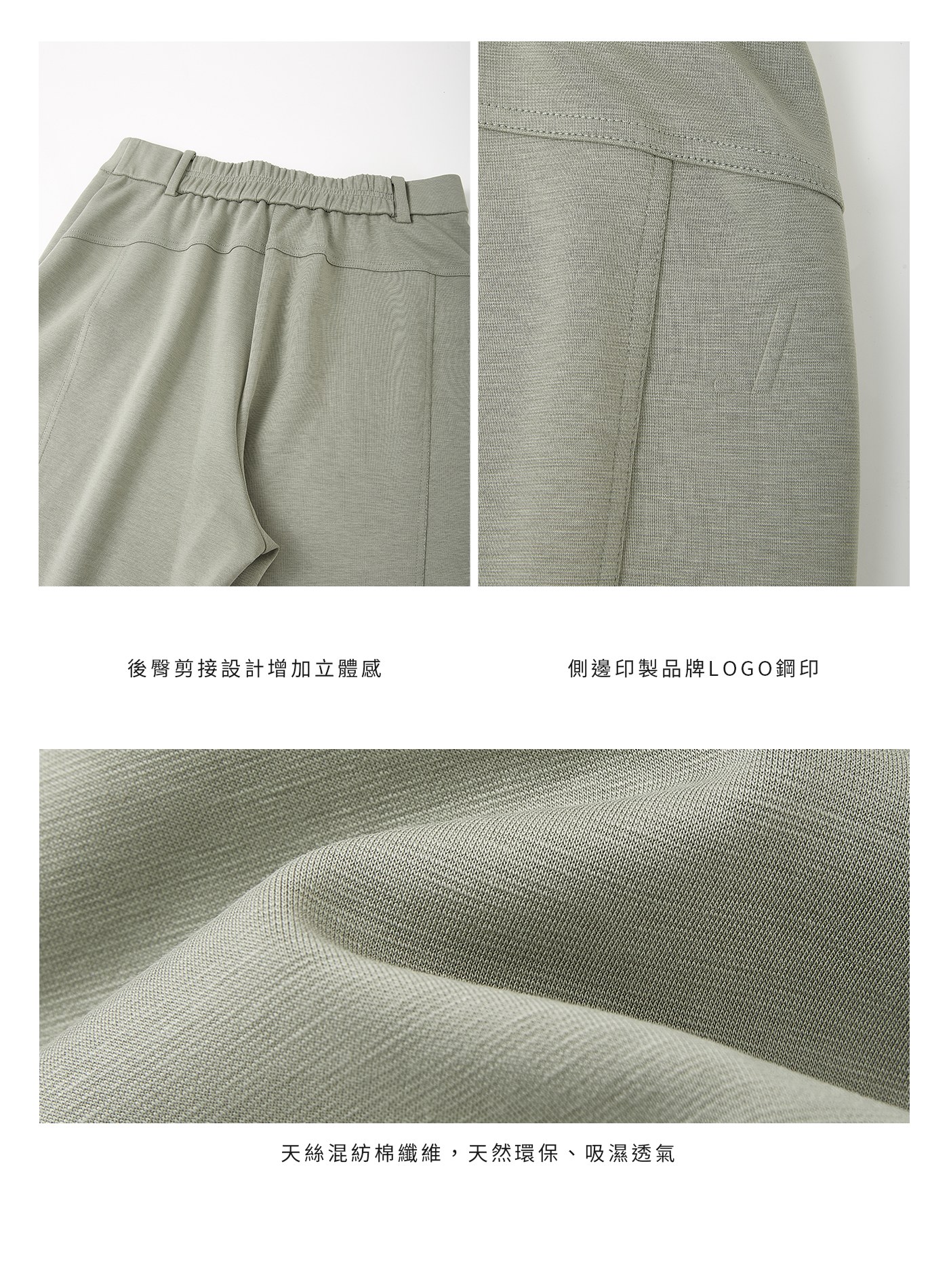 - 面料具良好彈性,舒適親膚,走動間自然垂墜