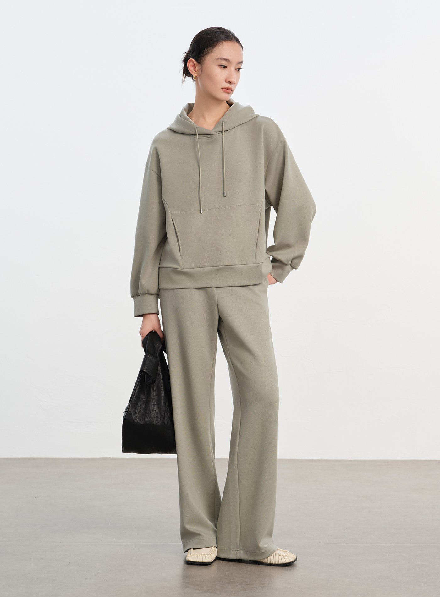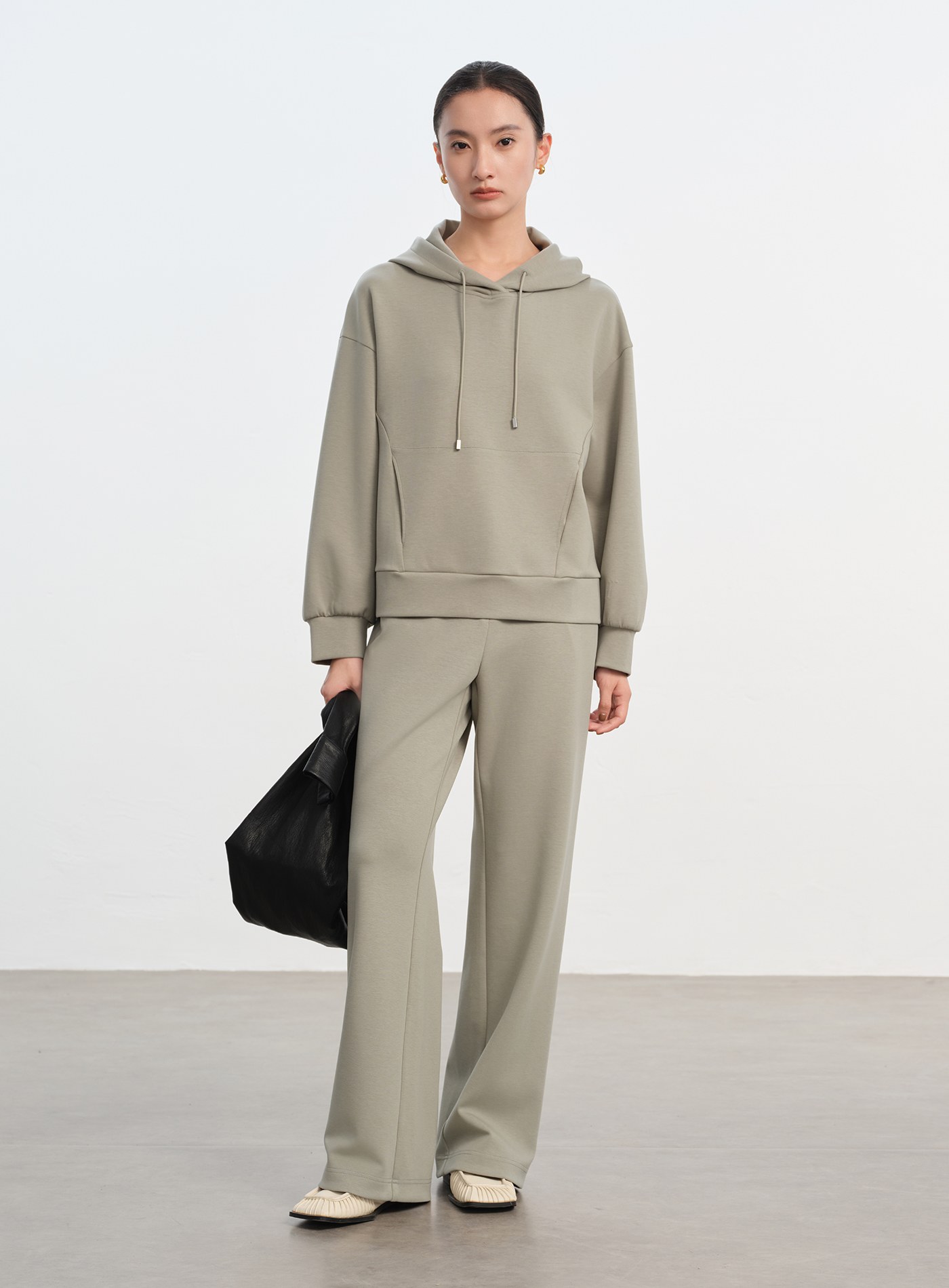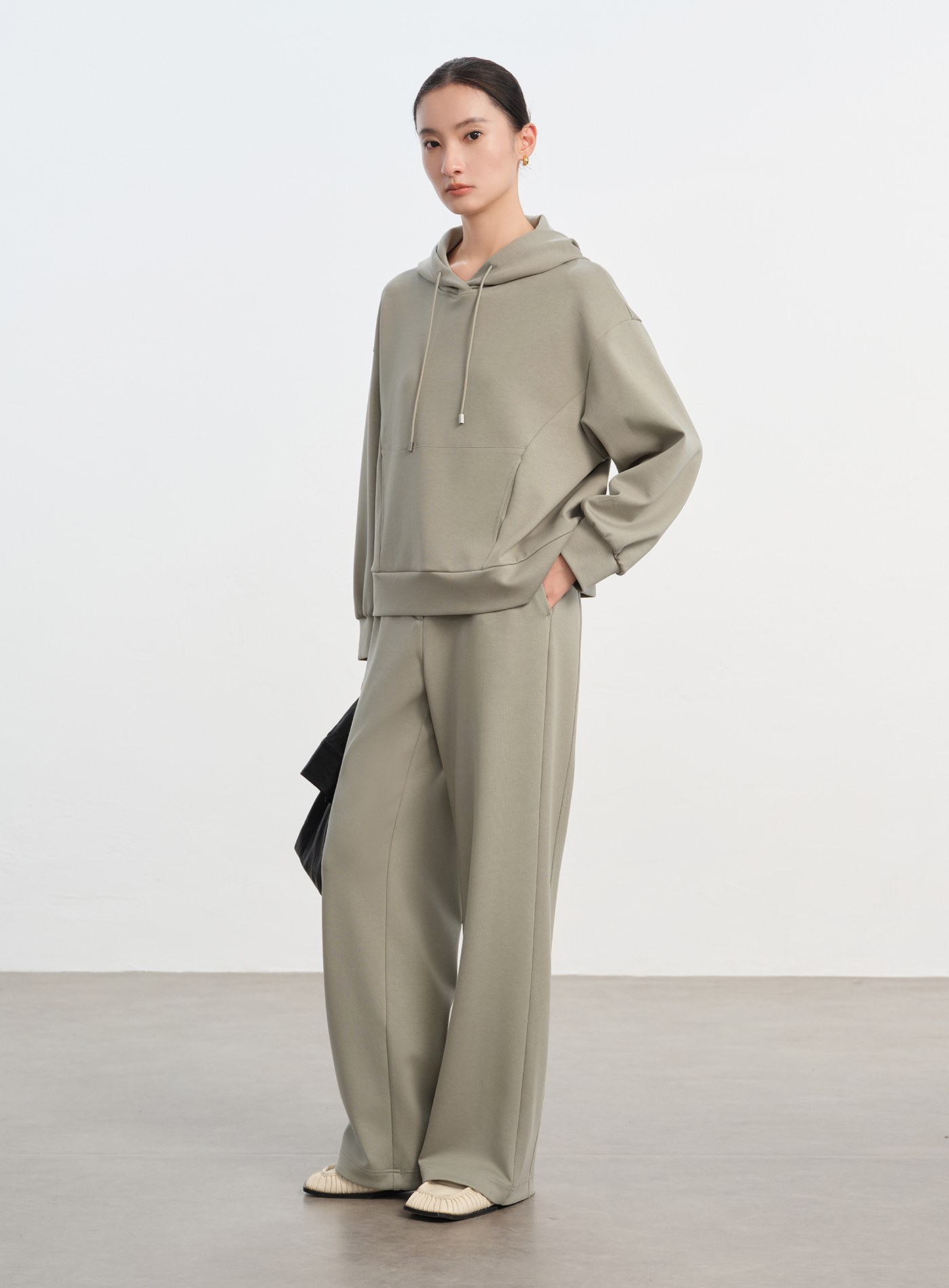 - 寬鬆闊腿褲型,後臀剪接設計增加立體感