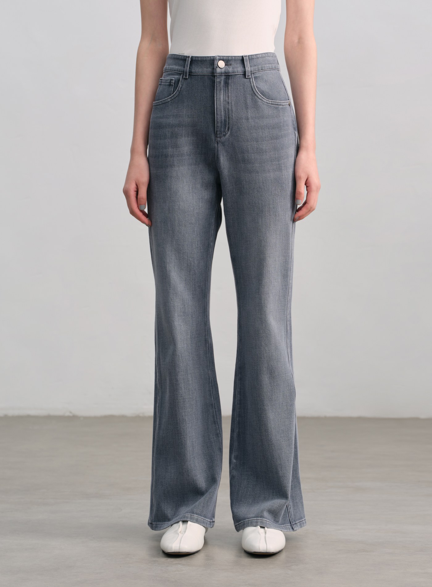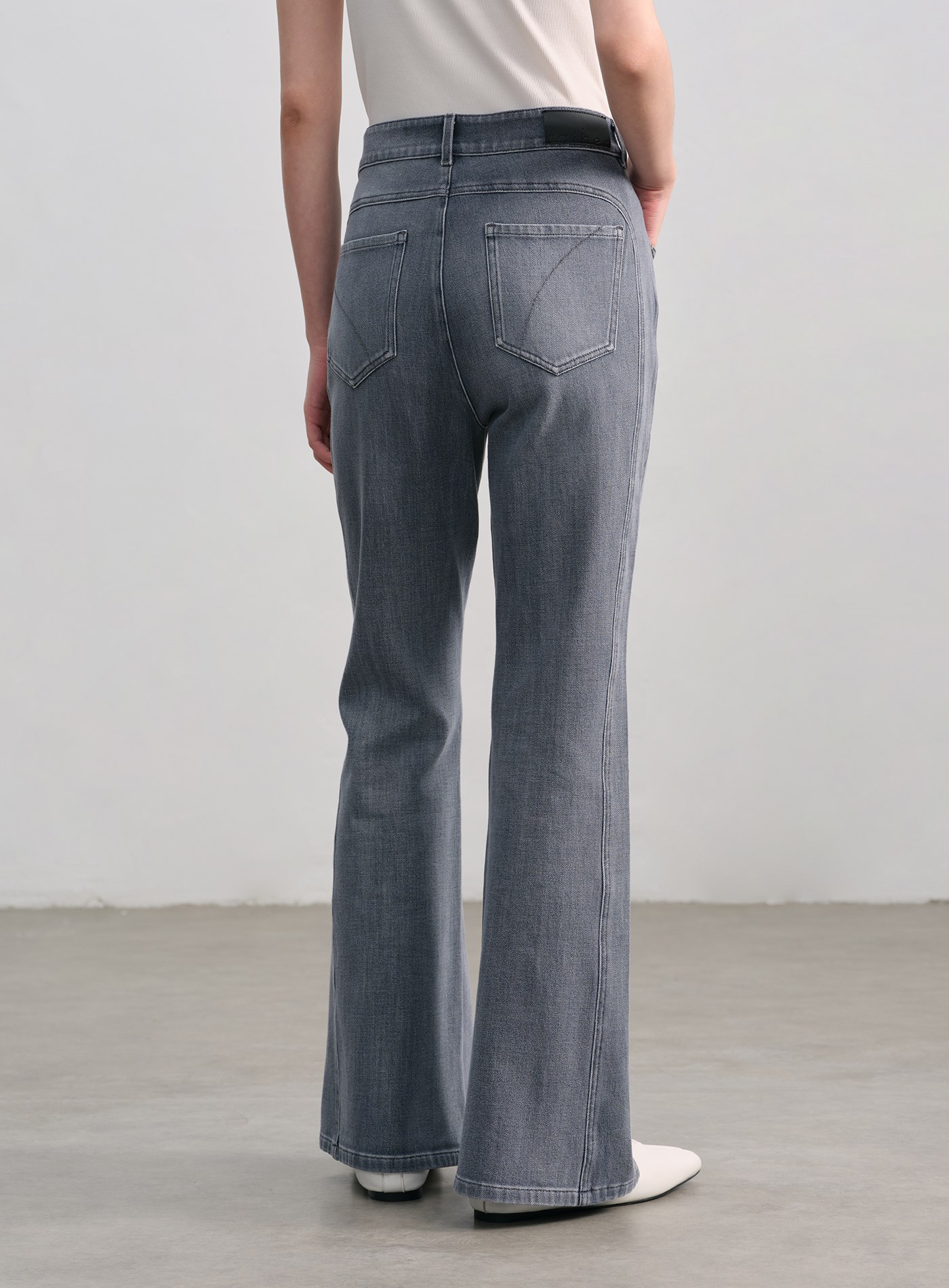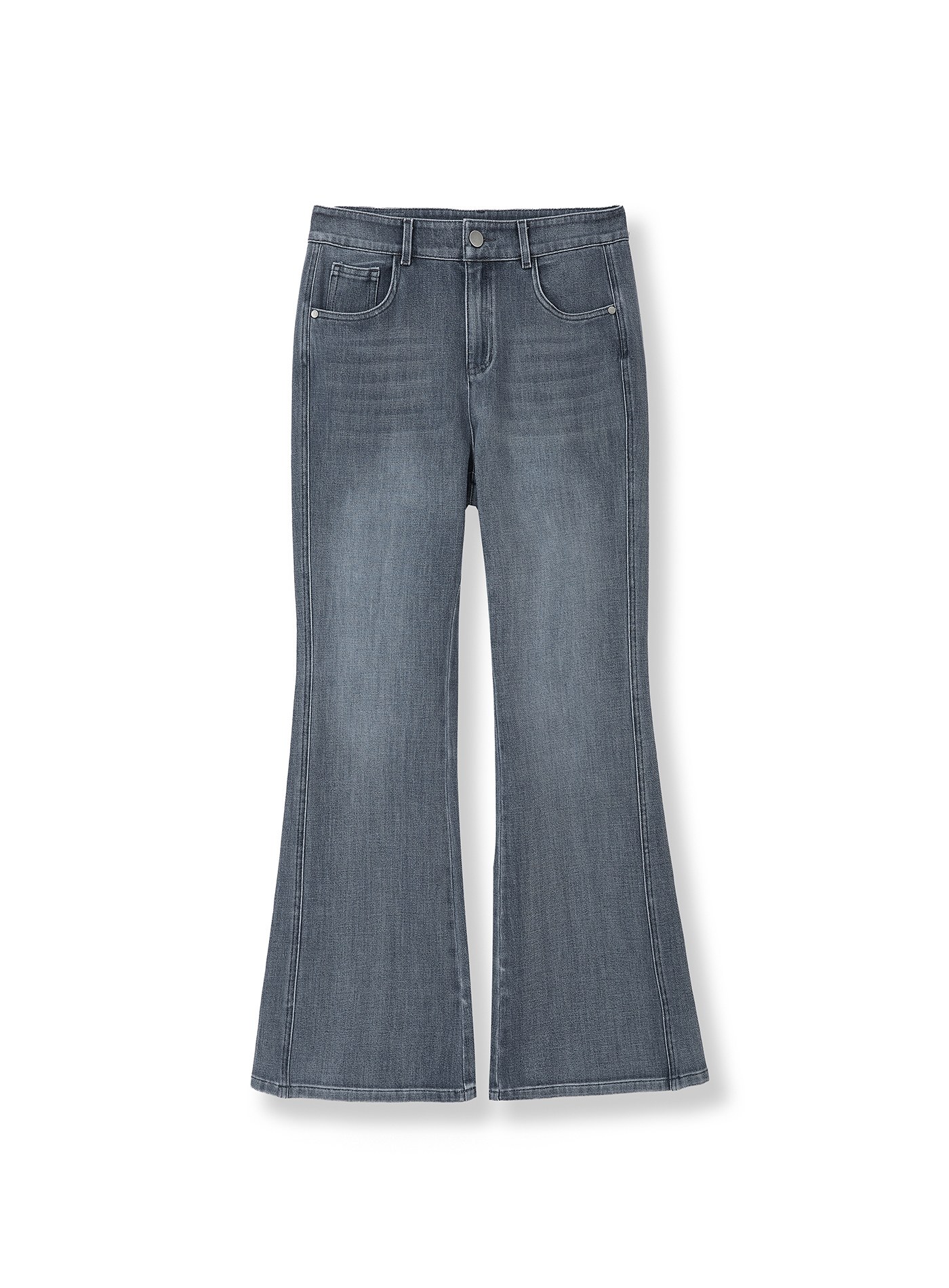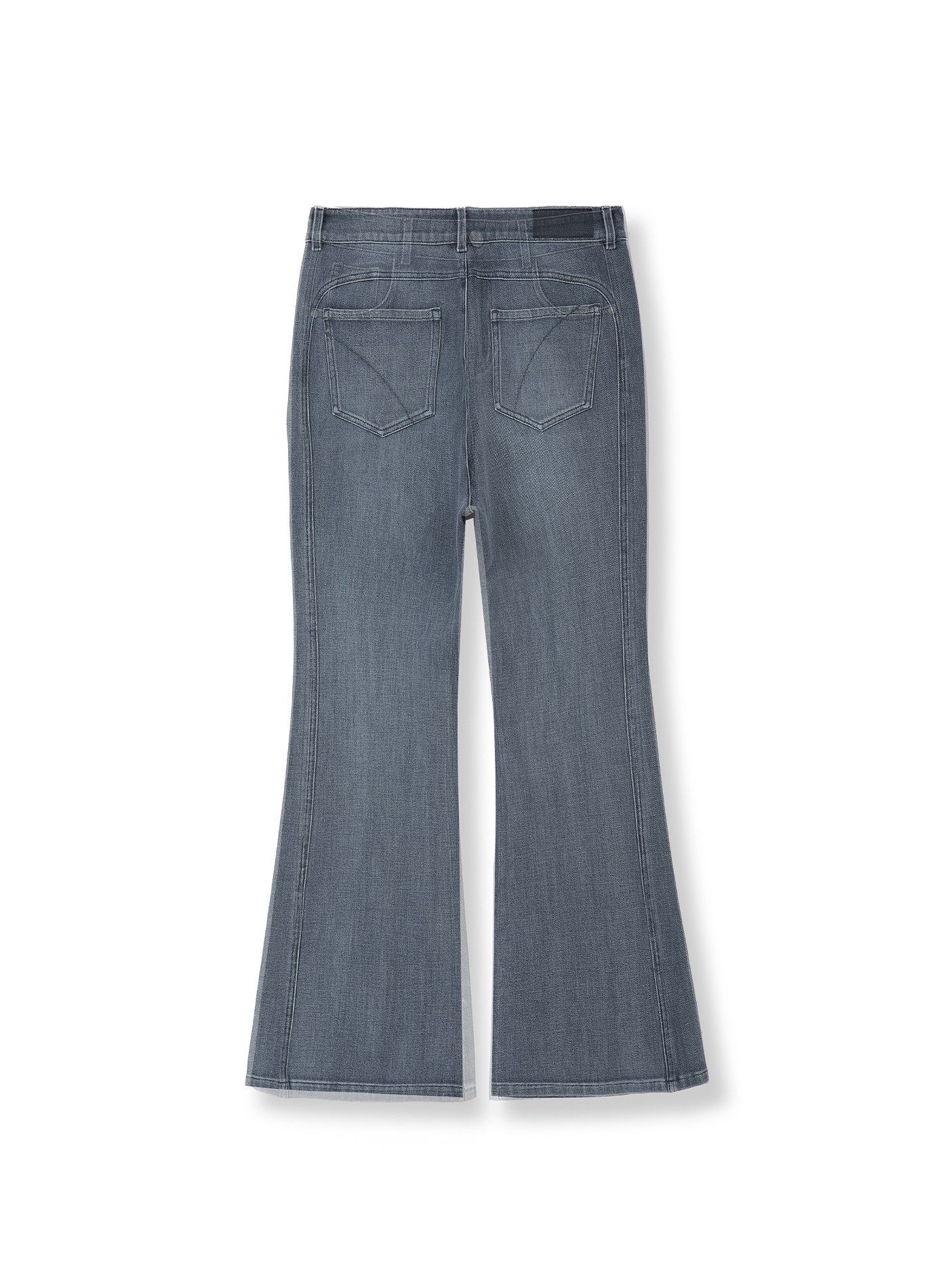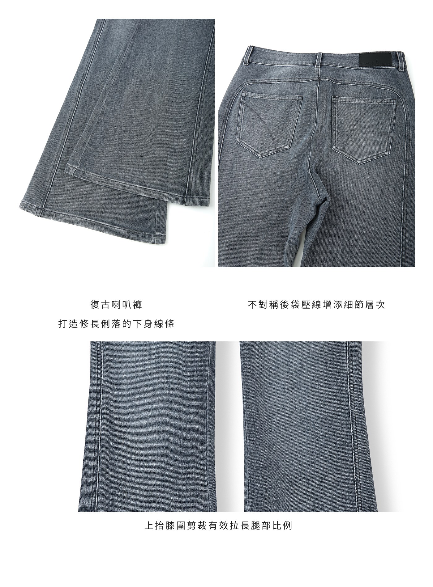 - 復古灰色喇叭褲,打造修長俐落的下身線條。