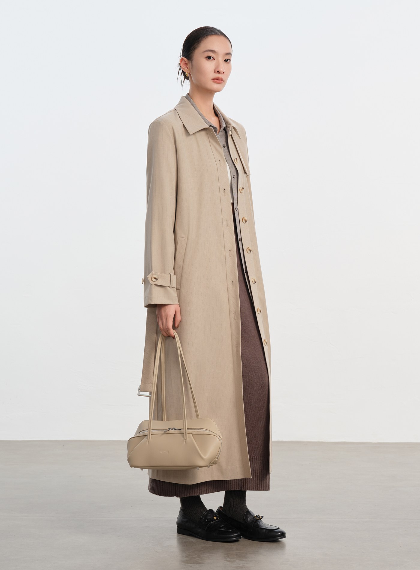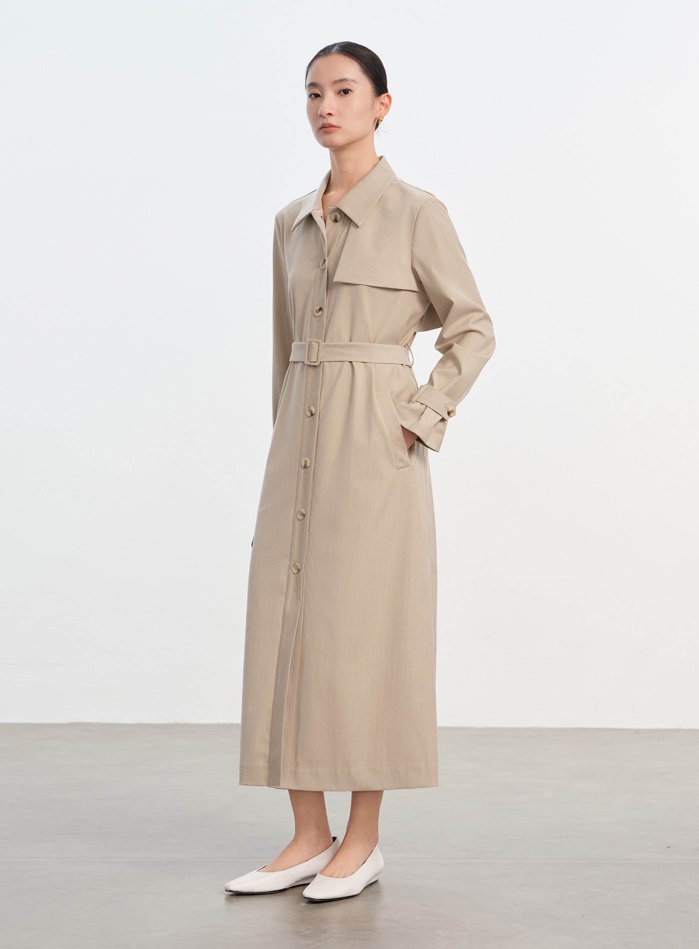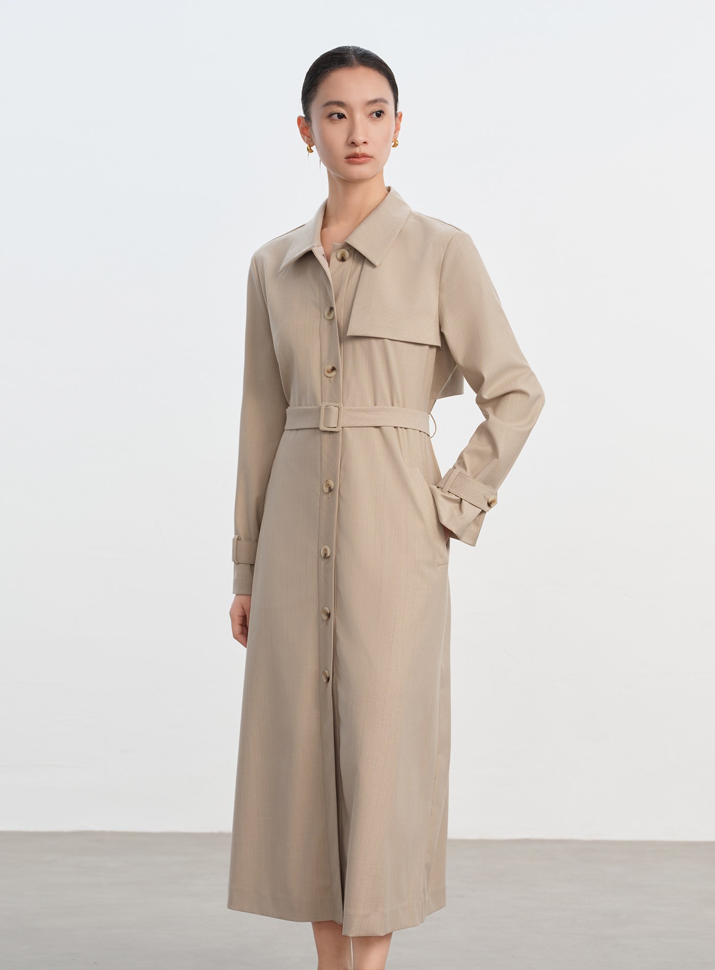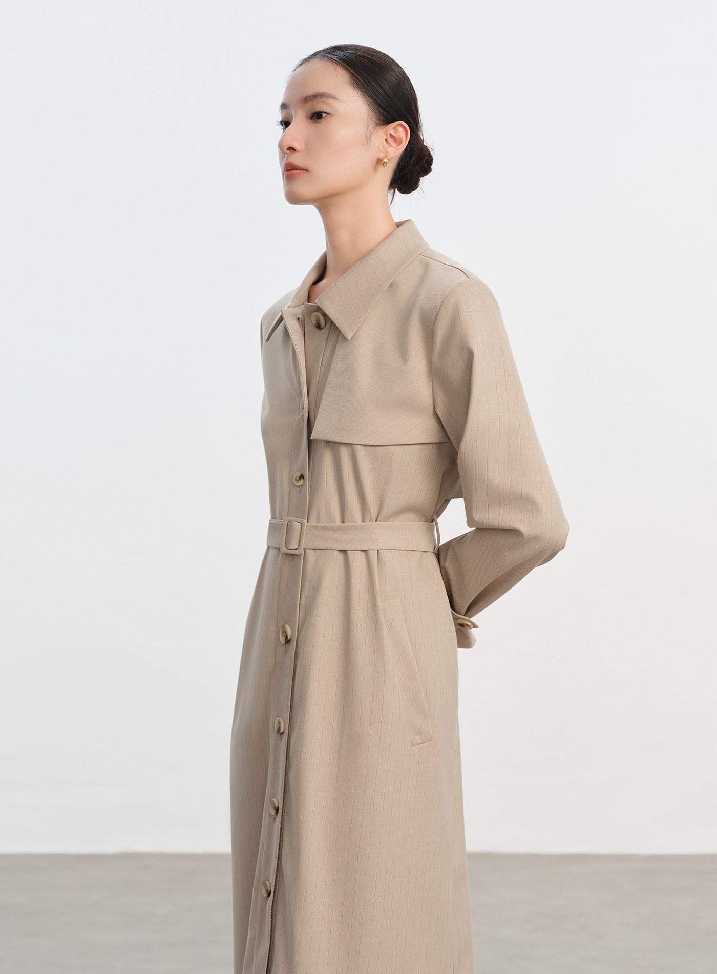 雙層不對稱綁帶襯衫式洋裝$105 USD