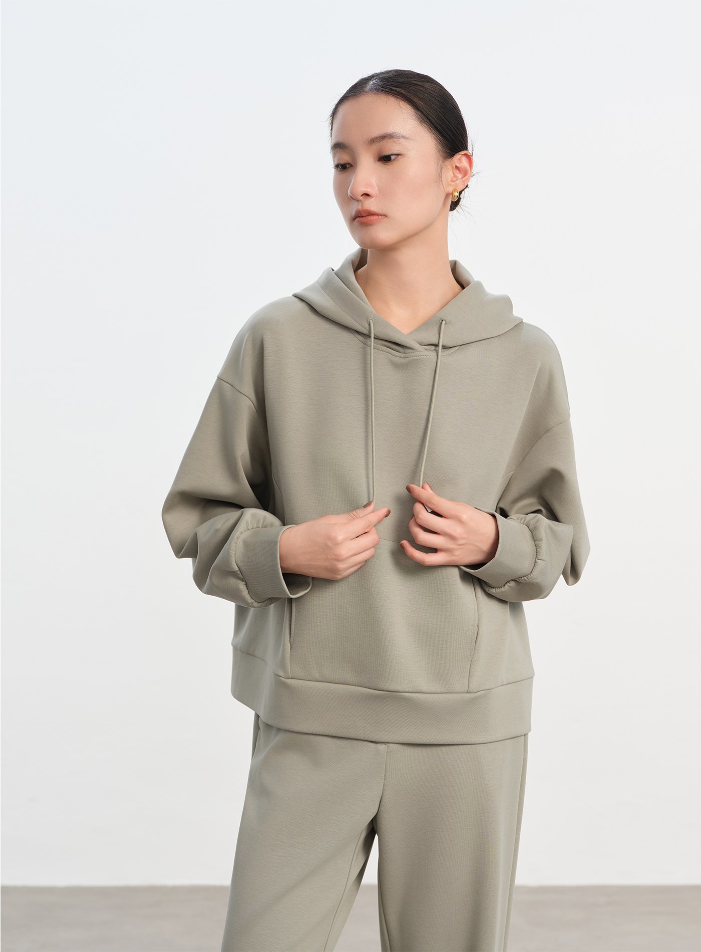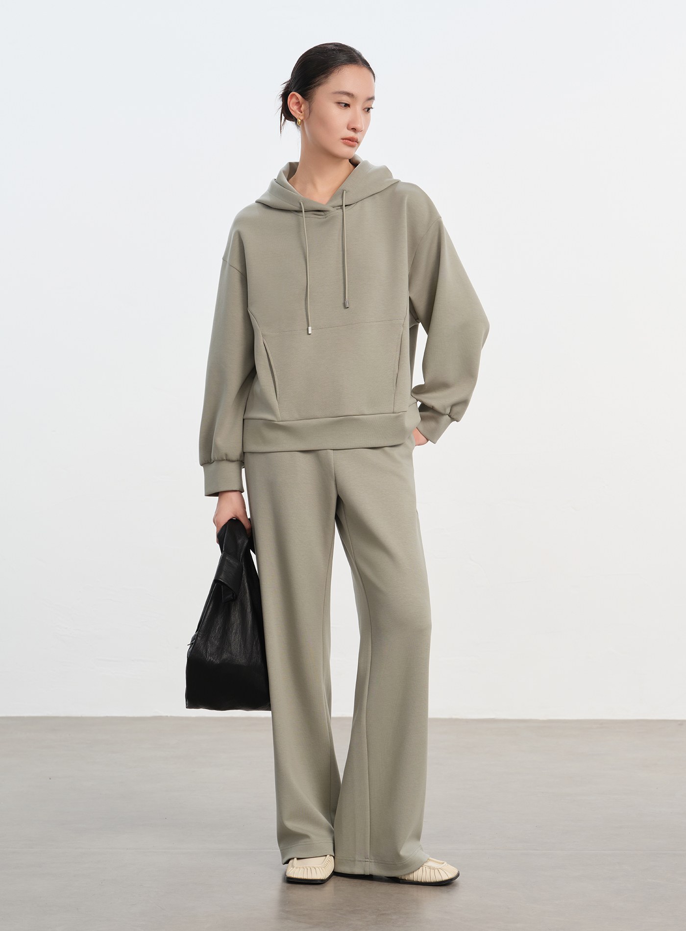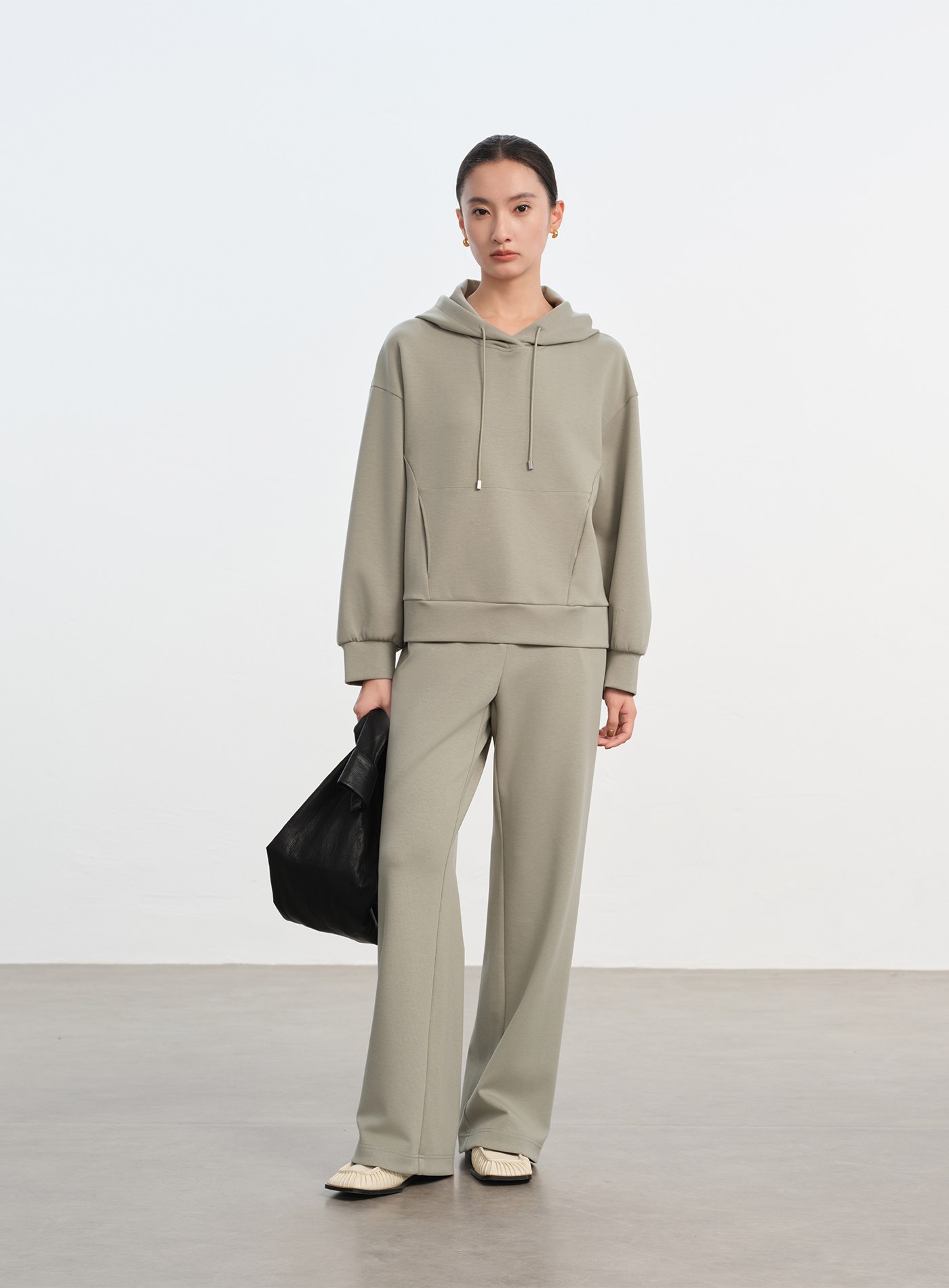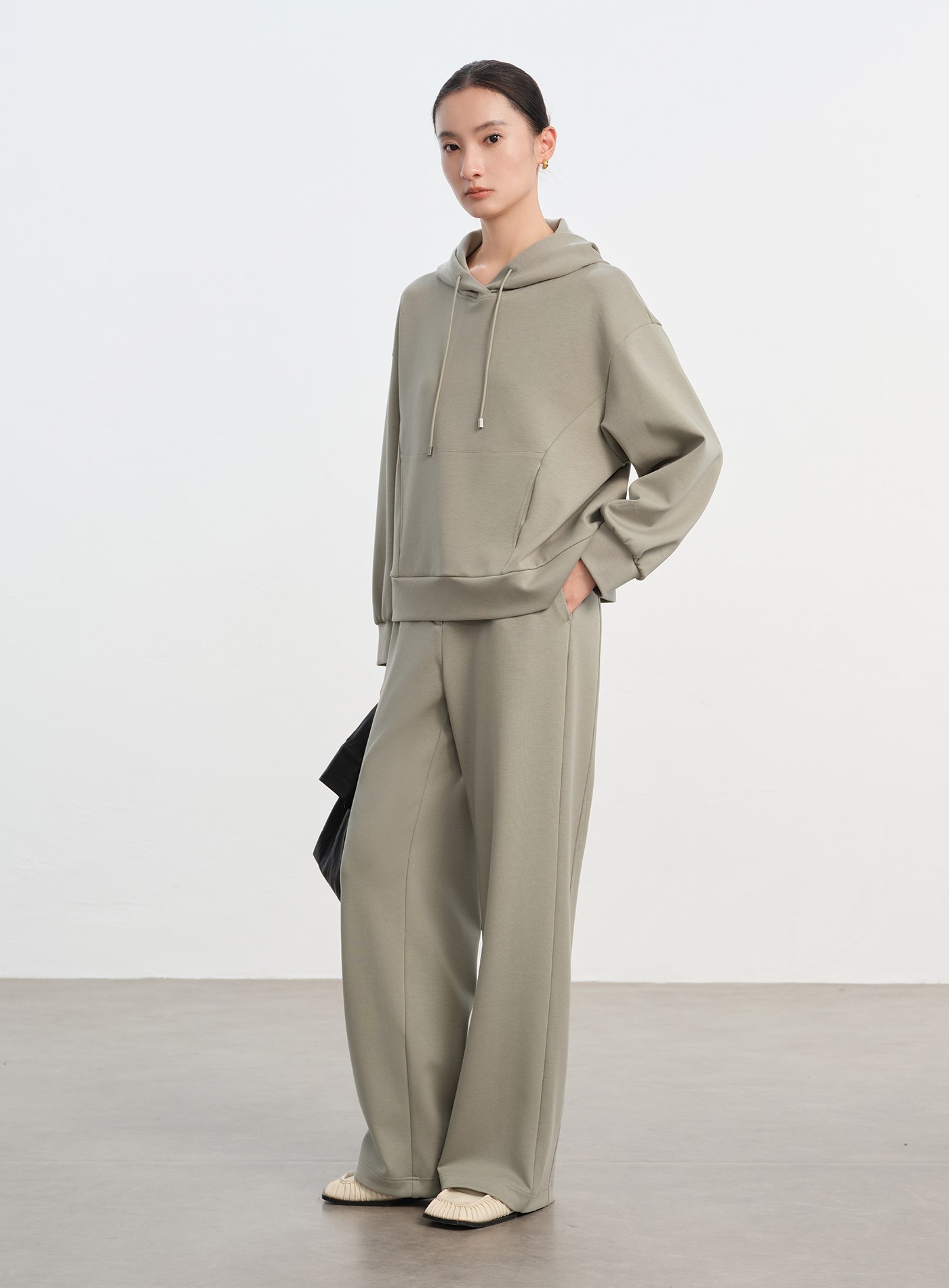 - 面料具良好彈性,舒適親膚,走動間自然垂墜