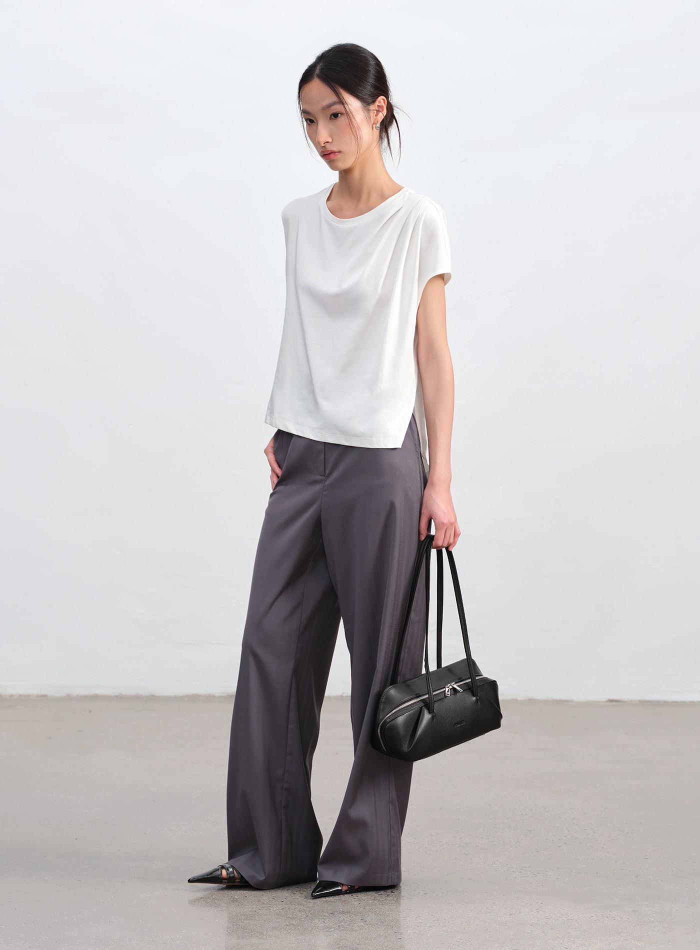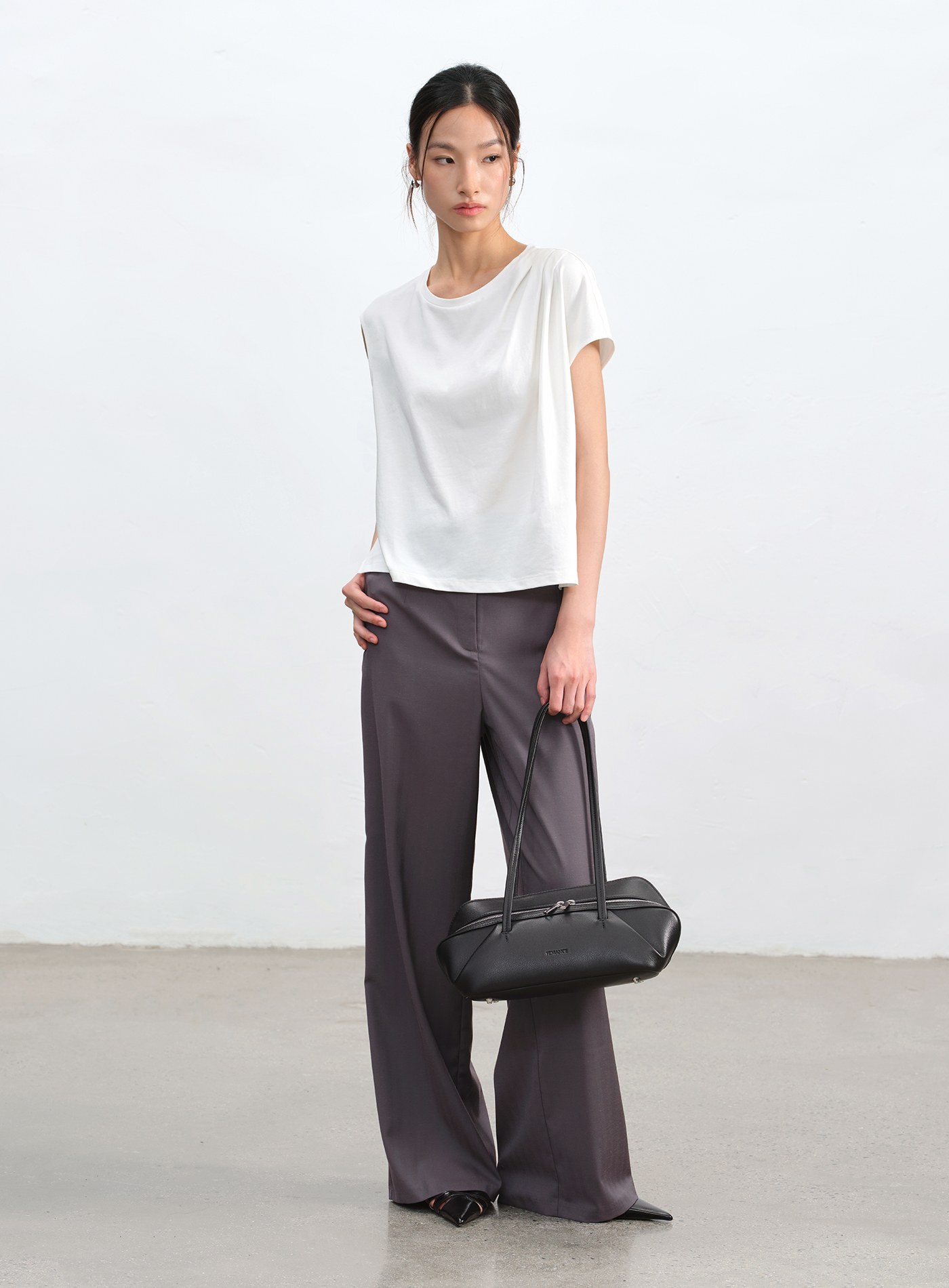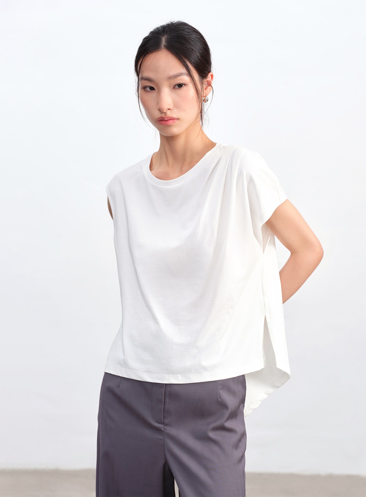 - 不對稱袖口與不規則下擺剪裁,俐落有型