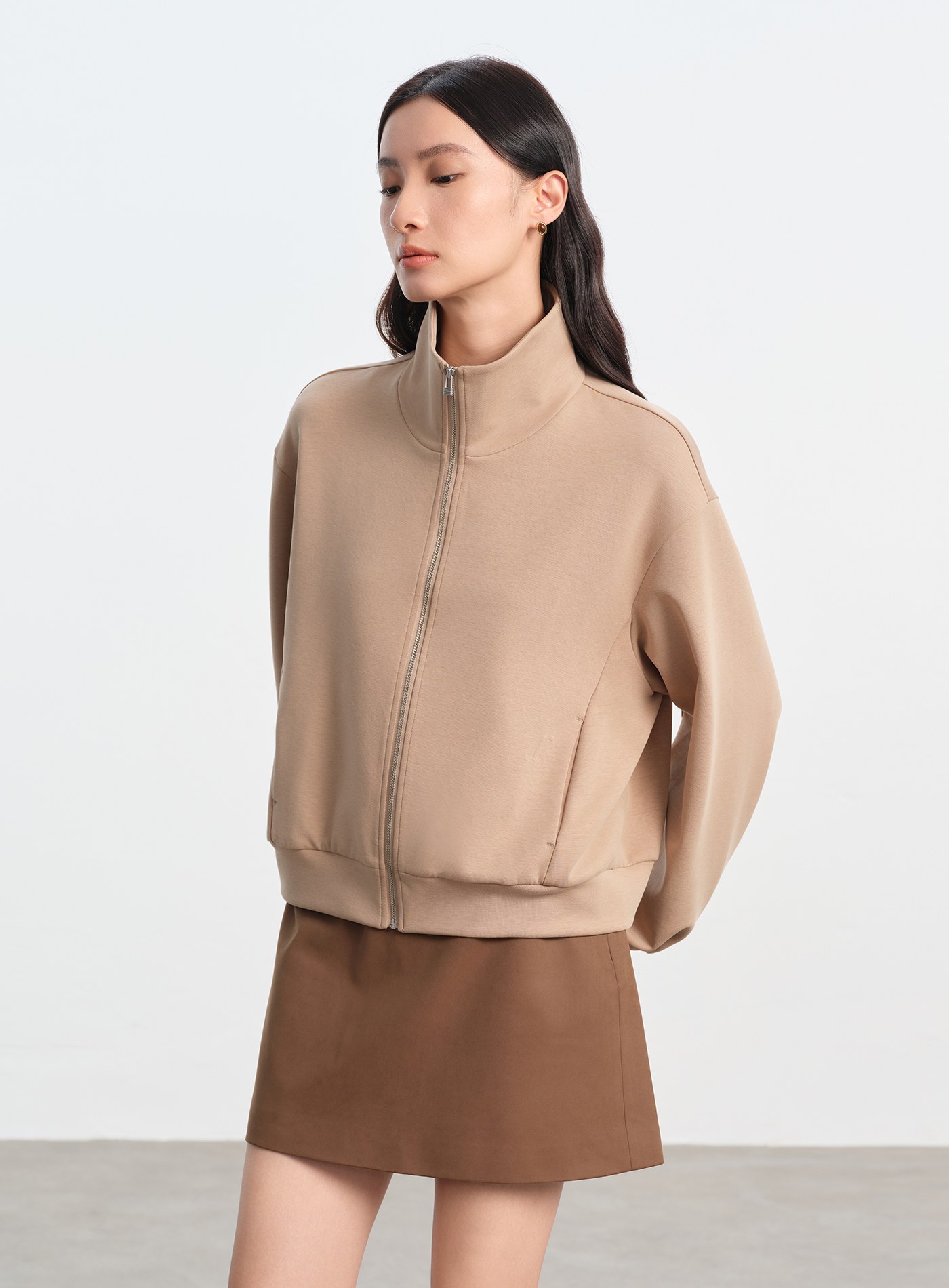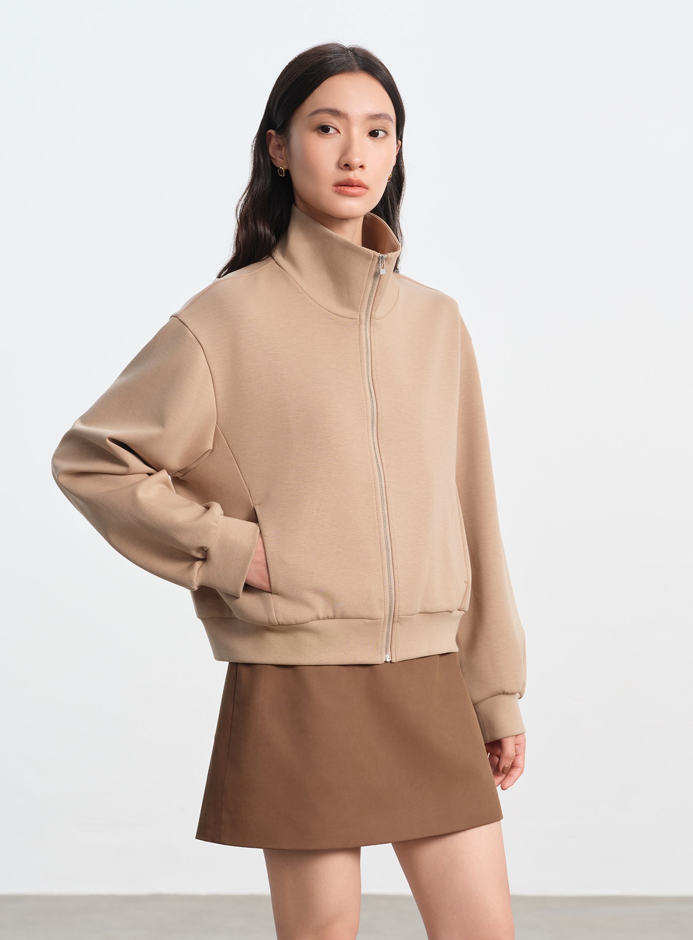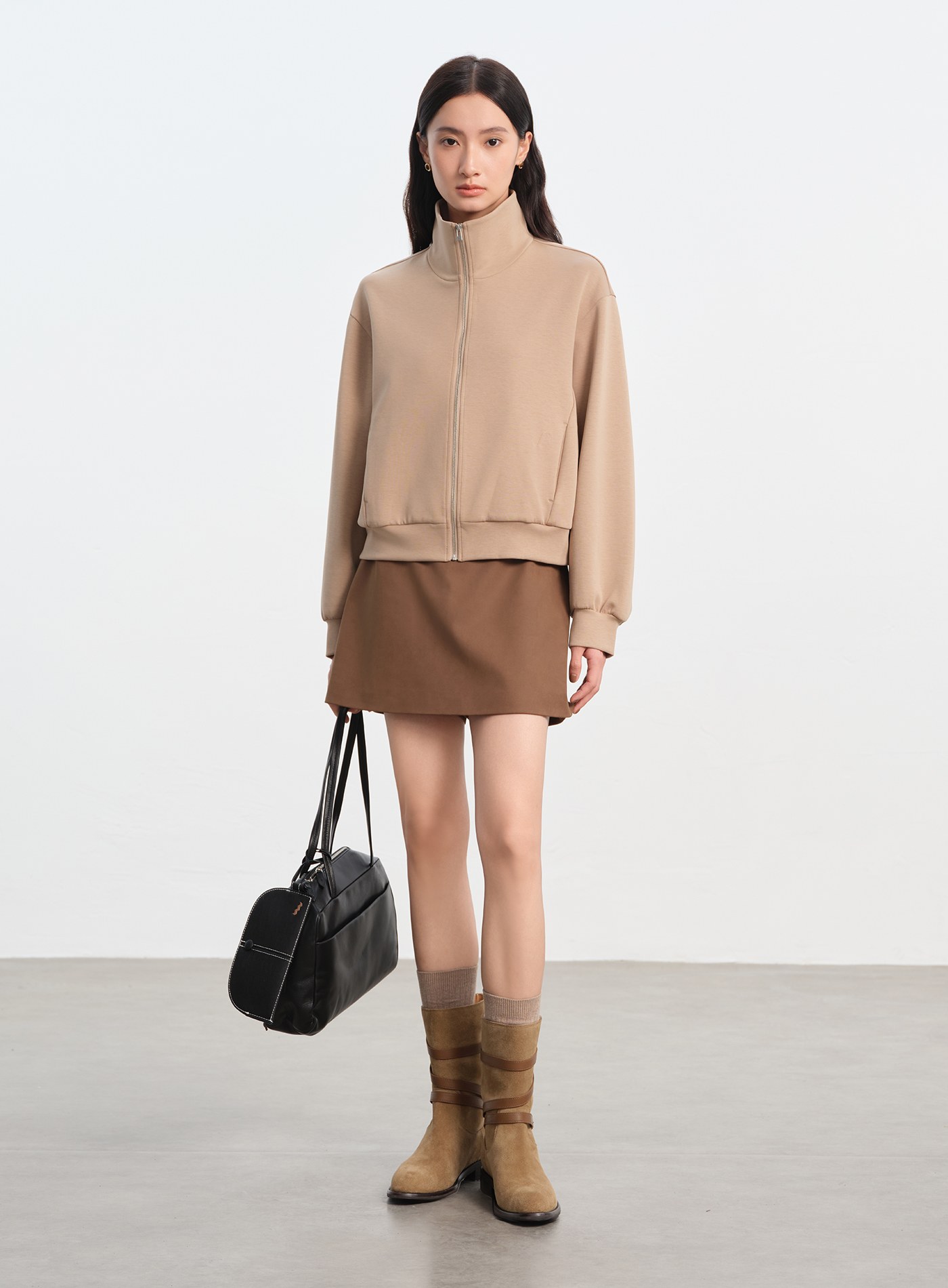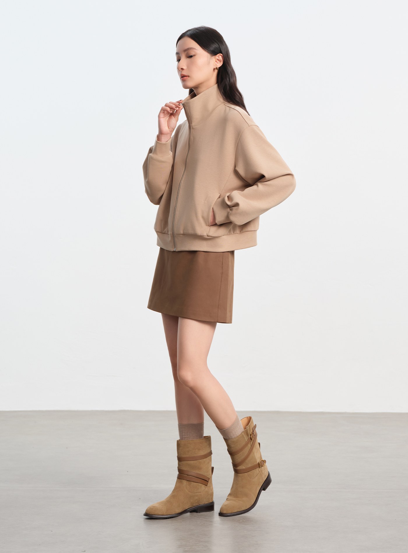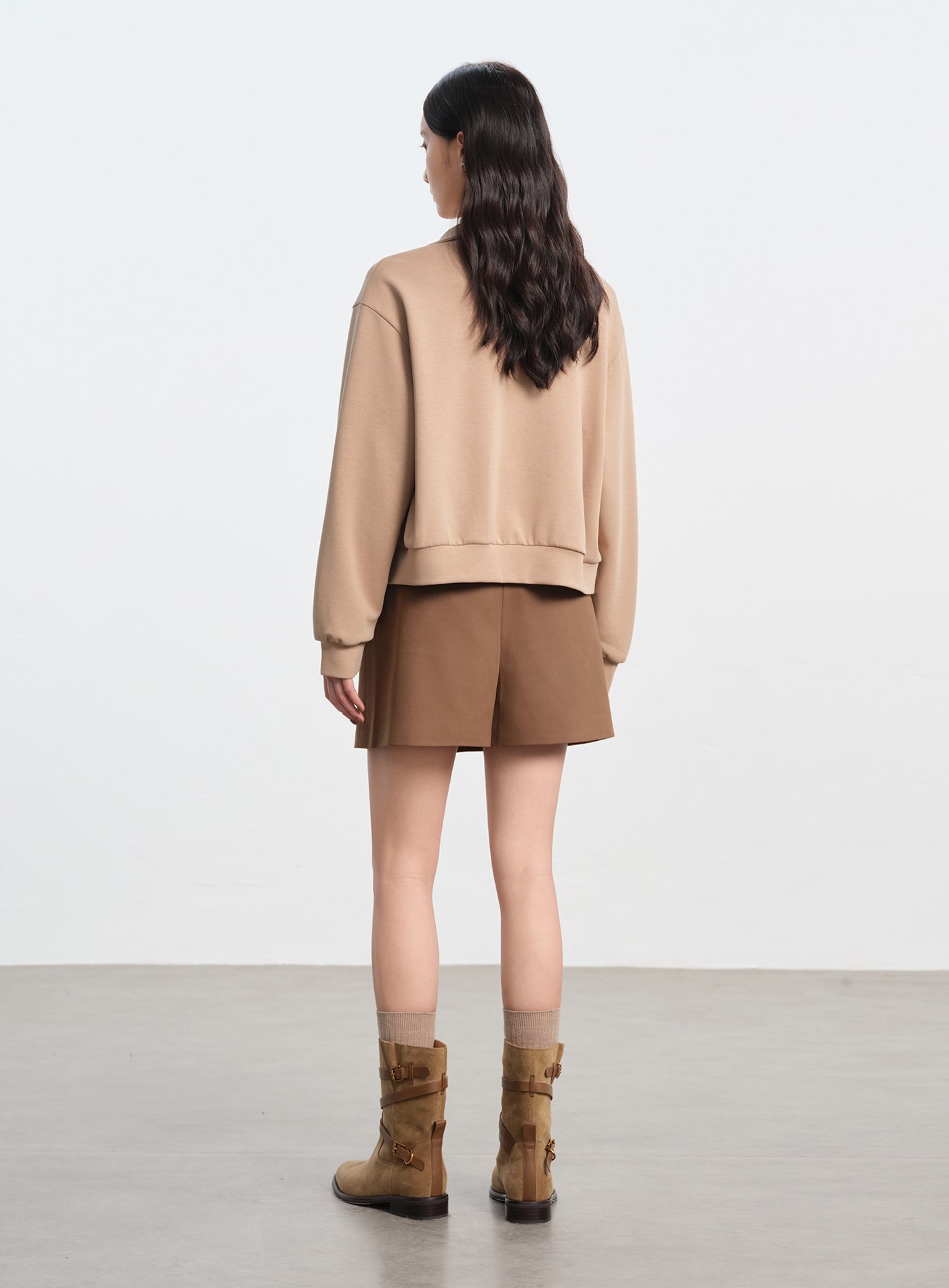 羊毛雙面呢圓領不對稱拼接大衣$191 USD