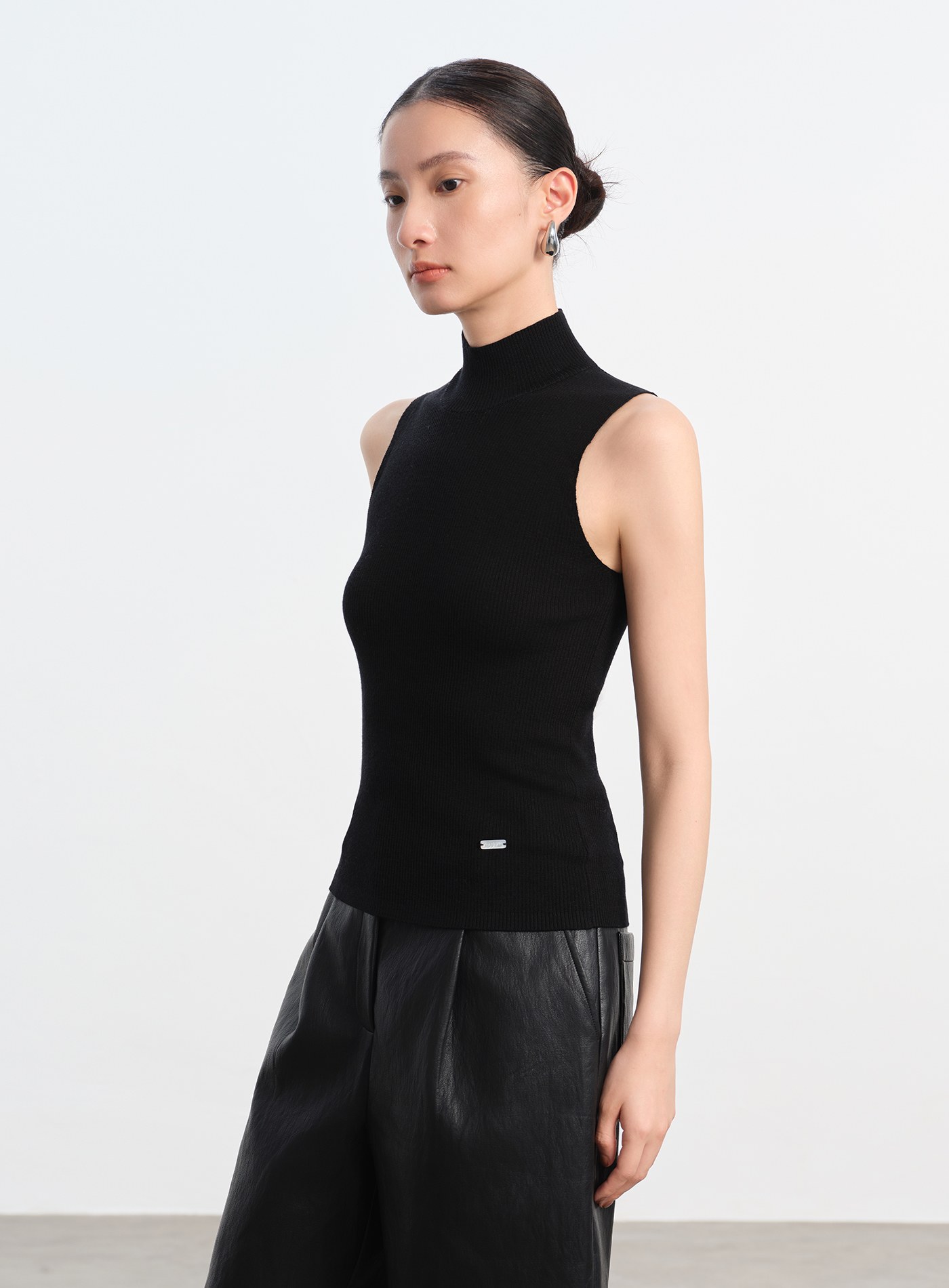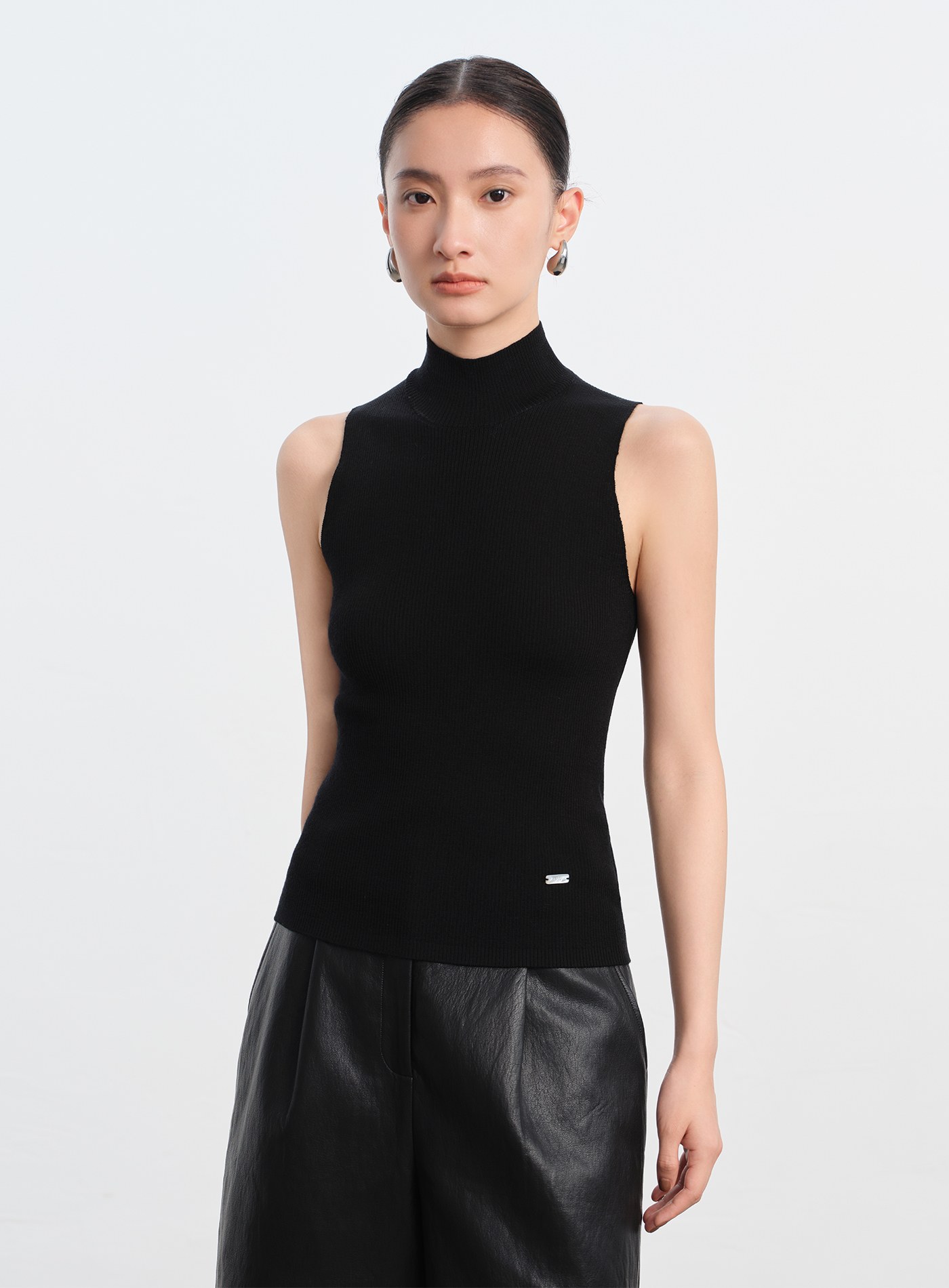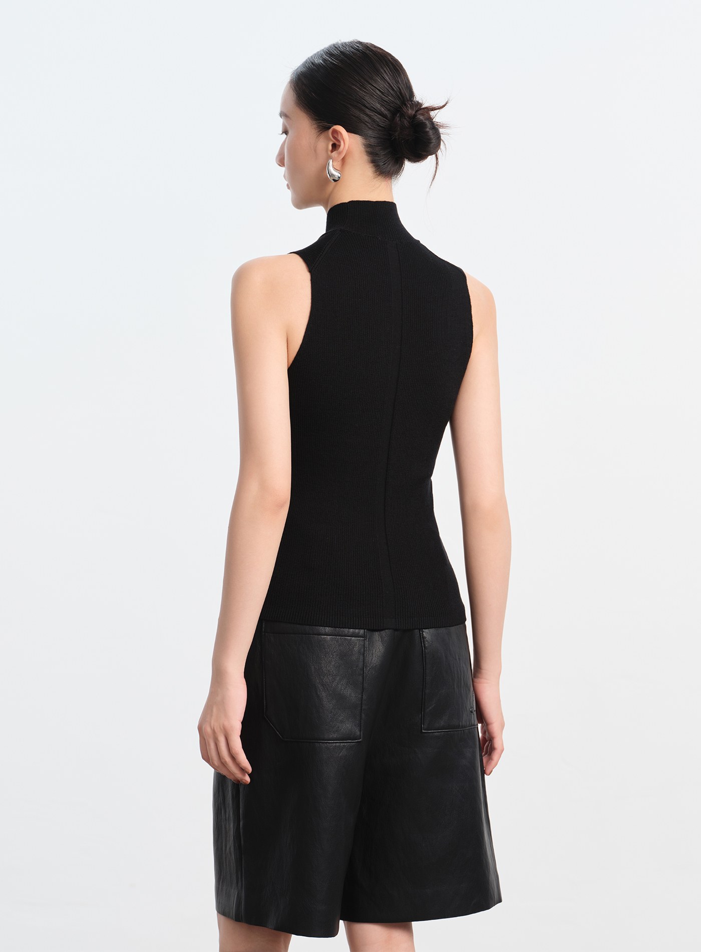 半高領坑條無袖上衣$35 USD