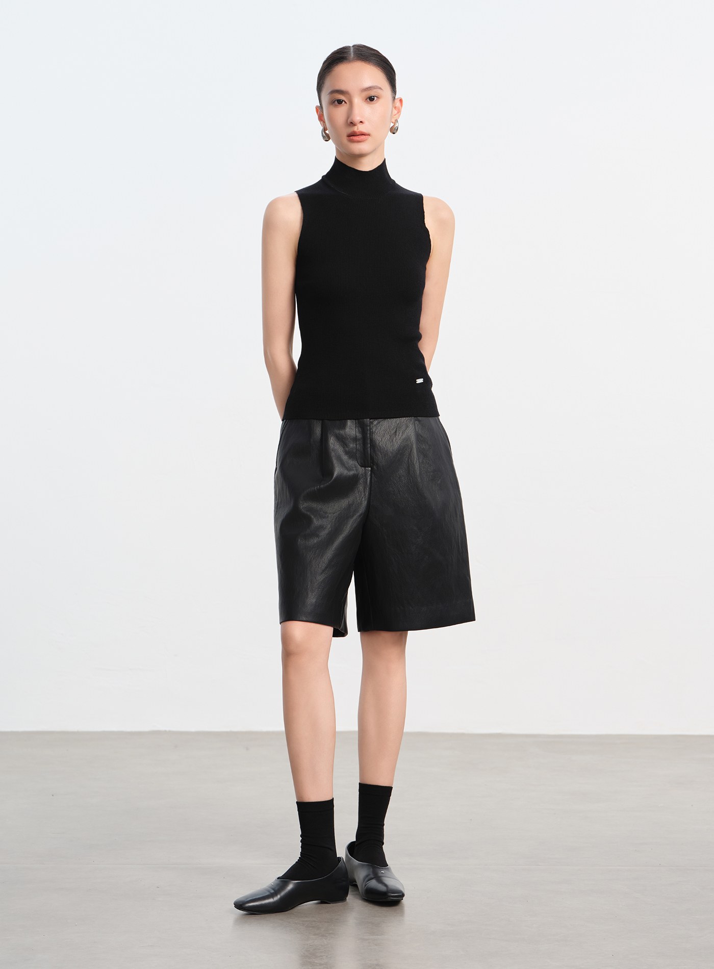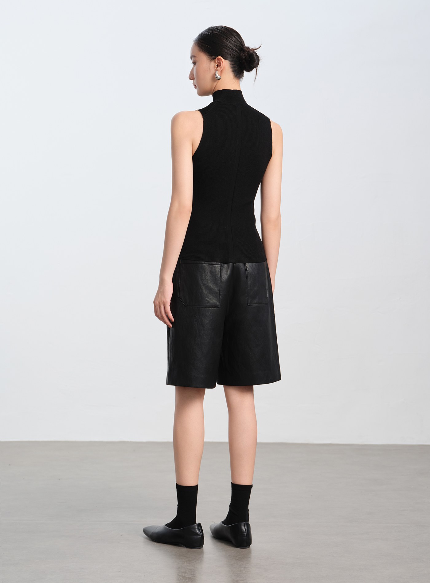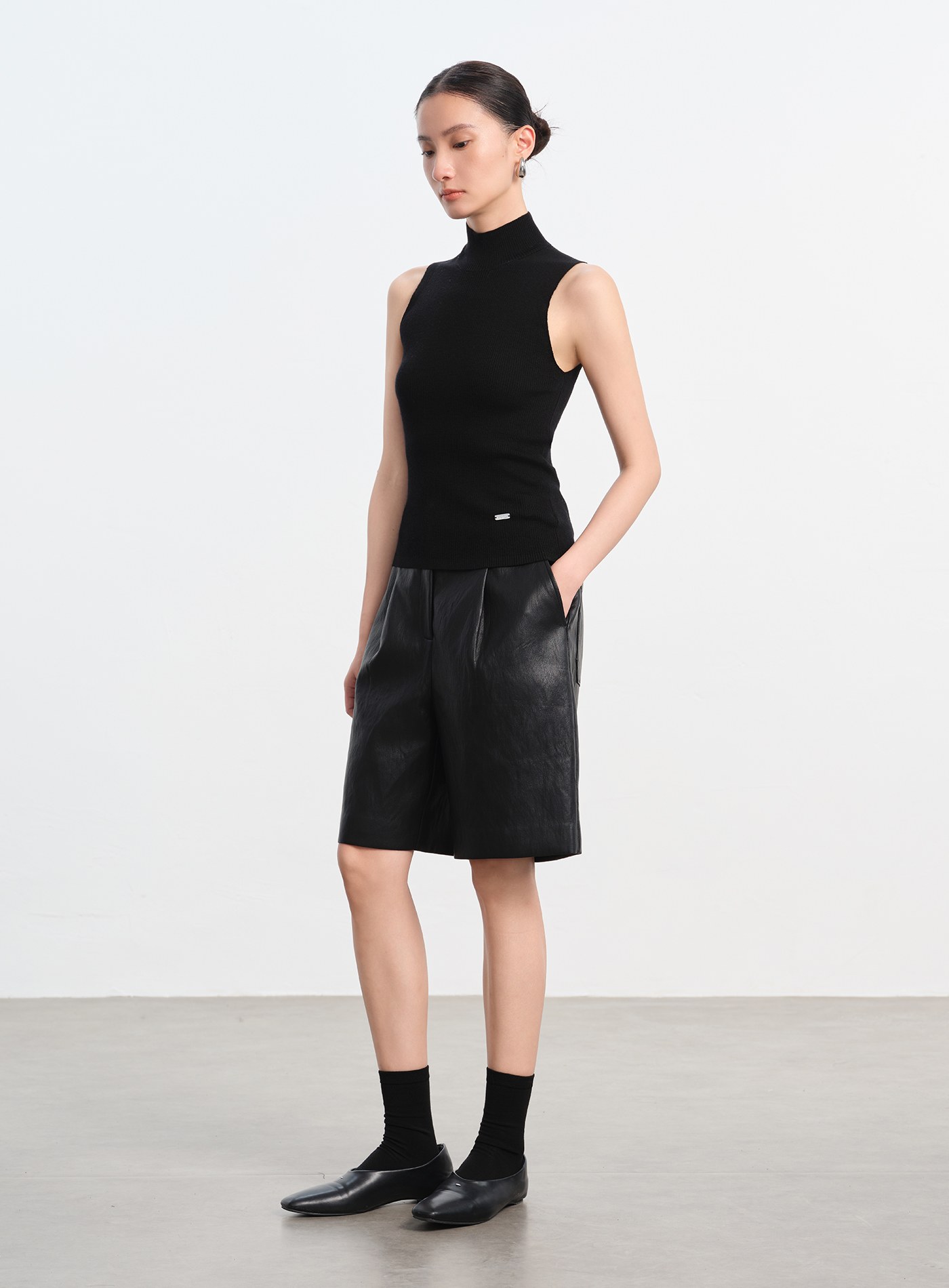 半高領坑條無袖上衣$35 USD