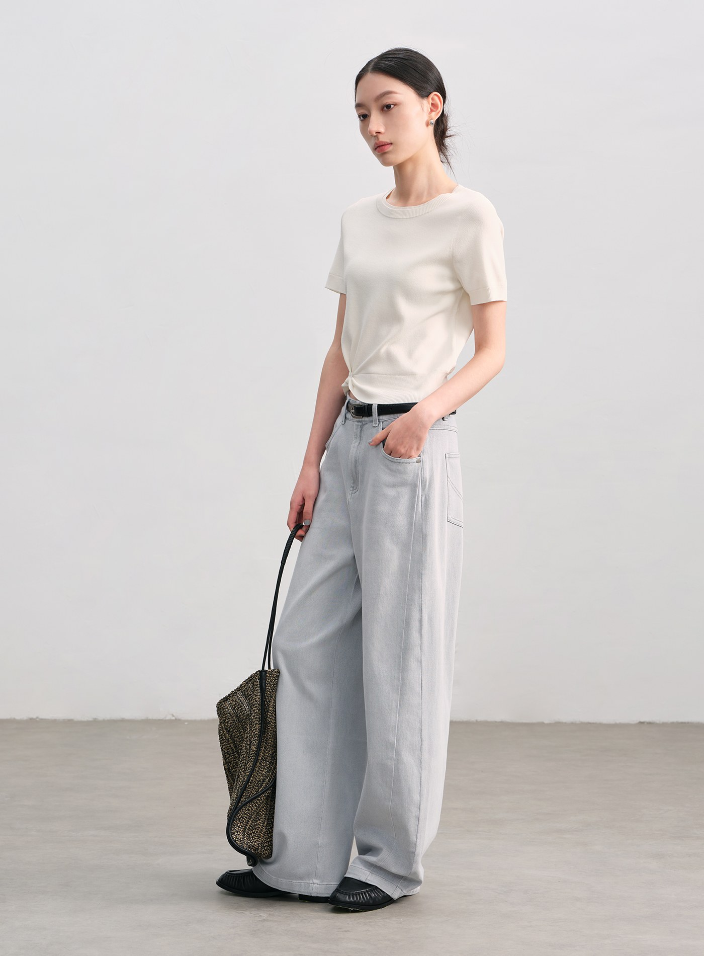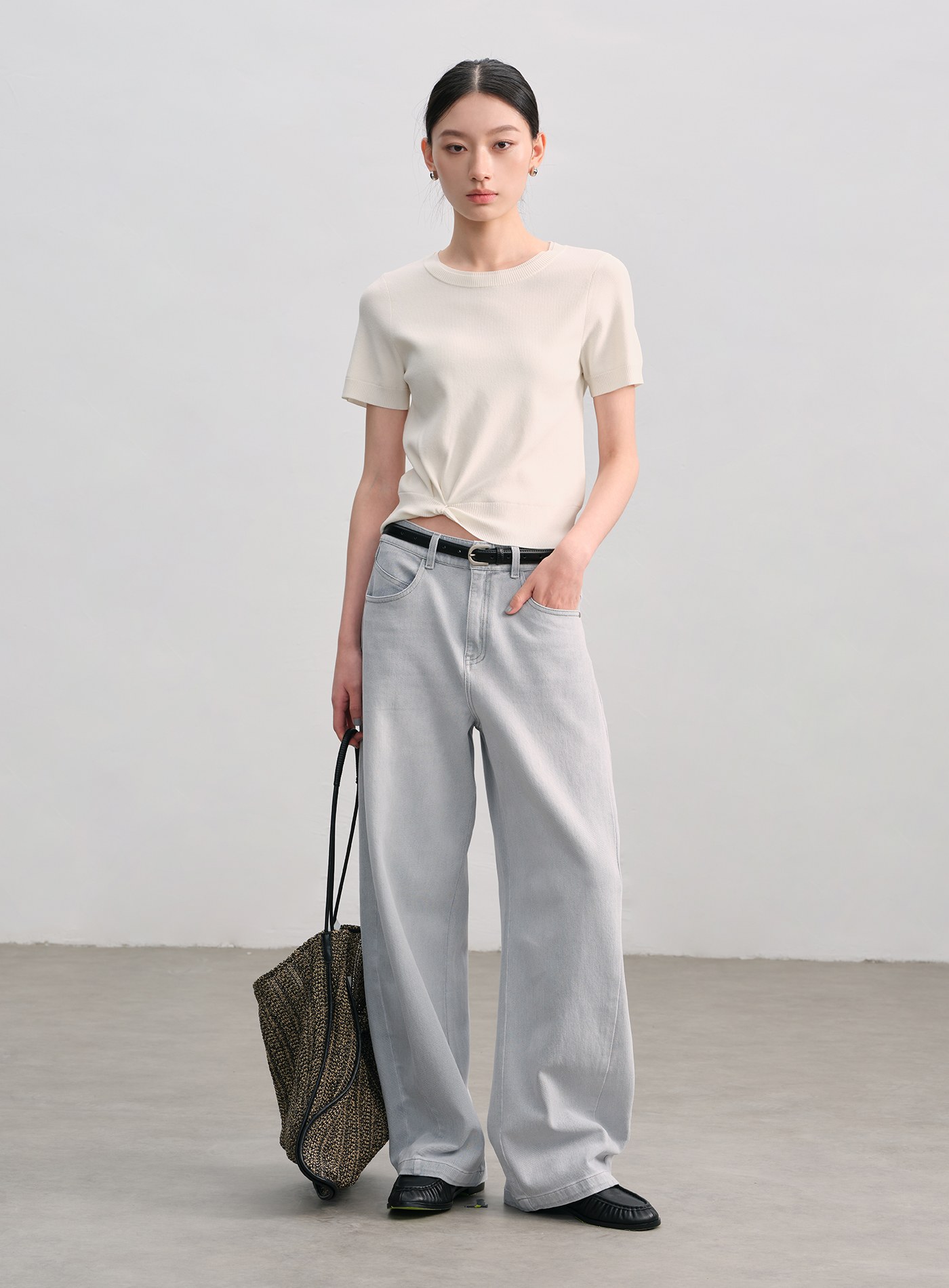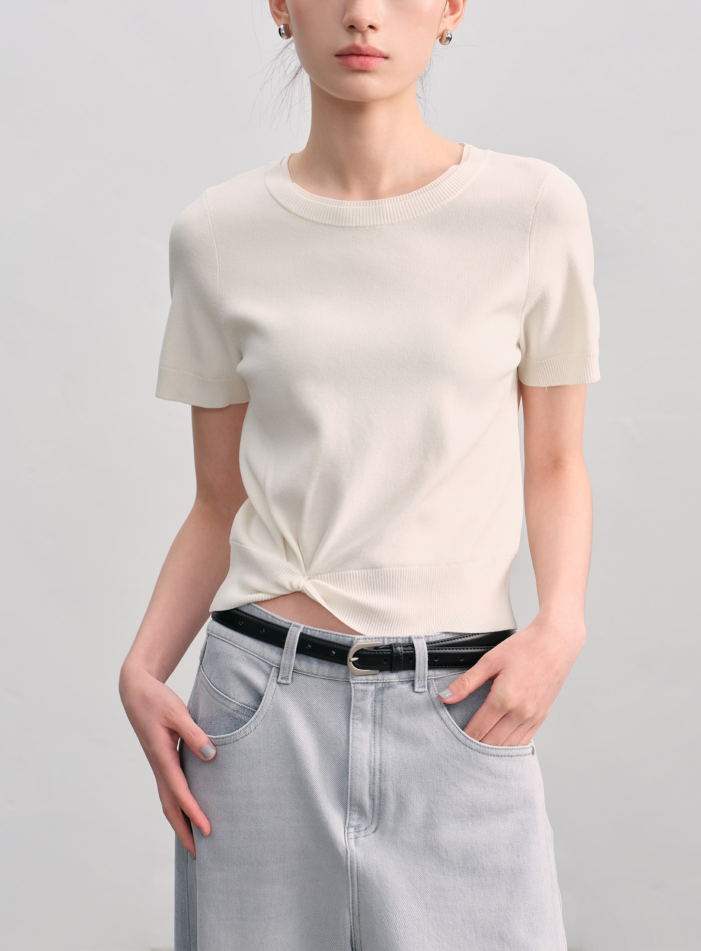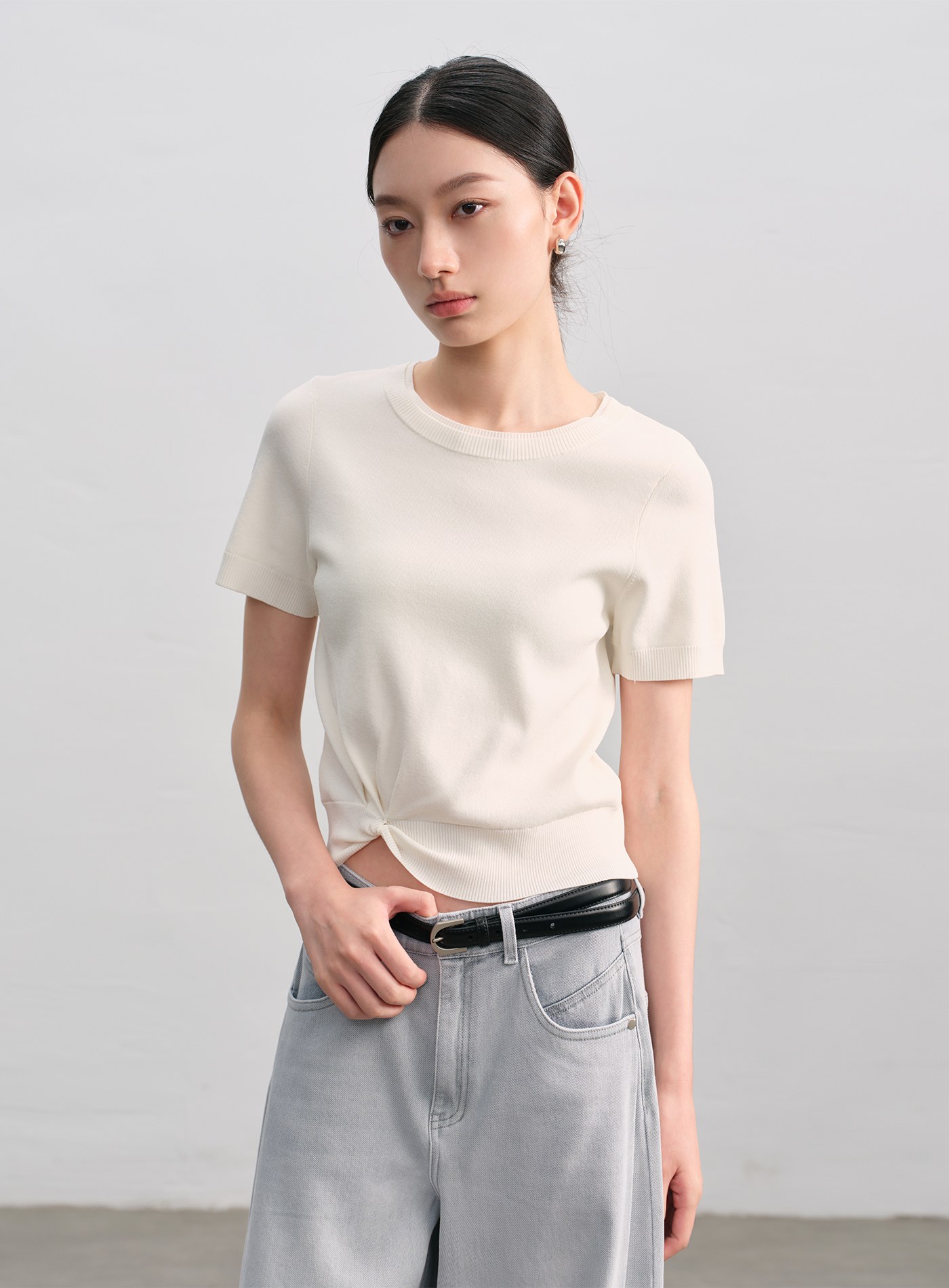 休閒織紋收腰短袖上衣$54 USD