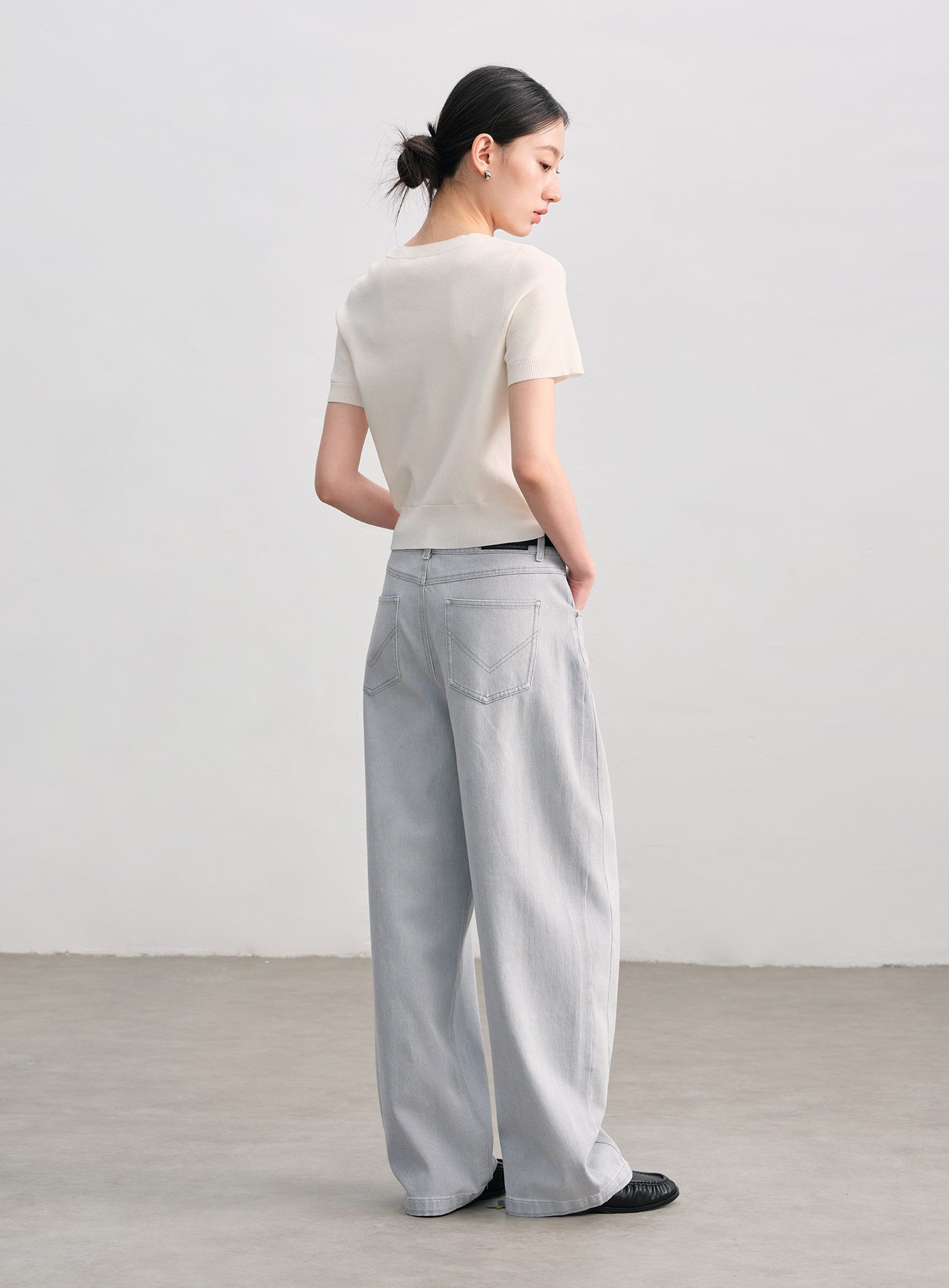 微光澤後壓褶五分袖上衣$63 USD