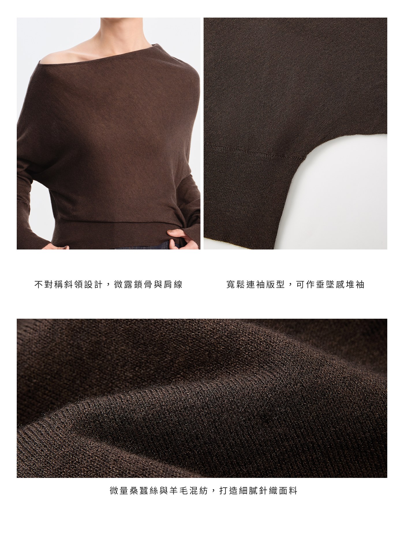 - 微量桑蠶絲與羊毛混紡,打造細膩針織面料