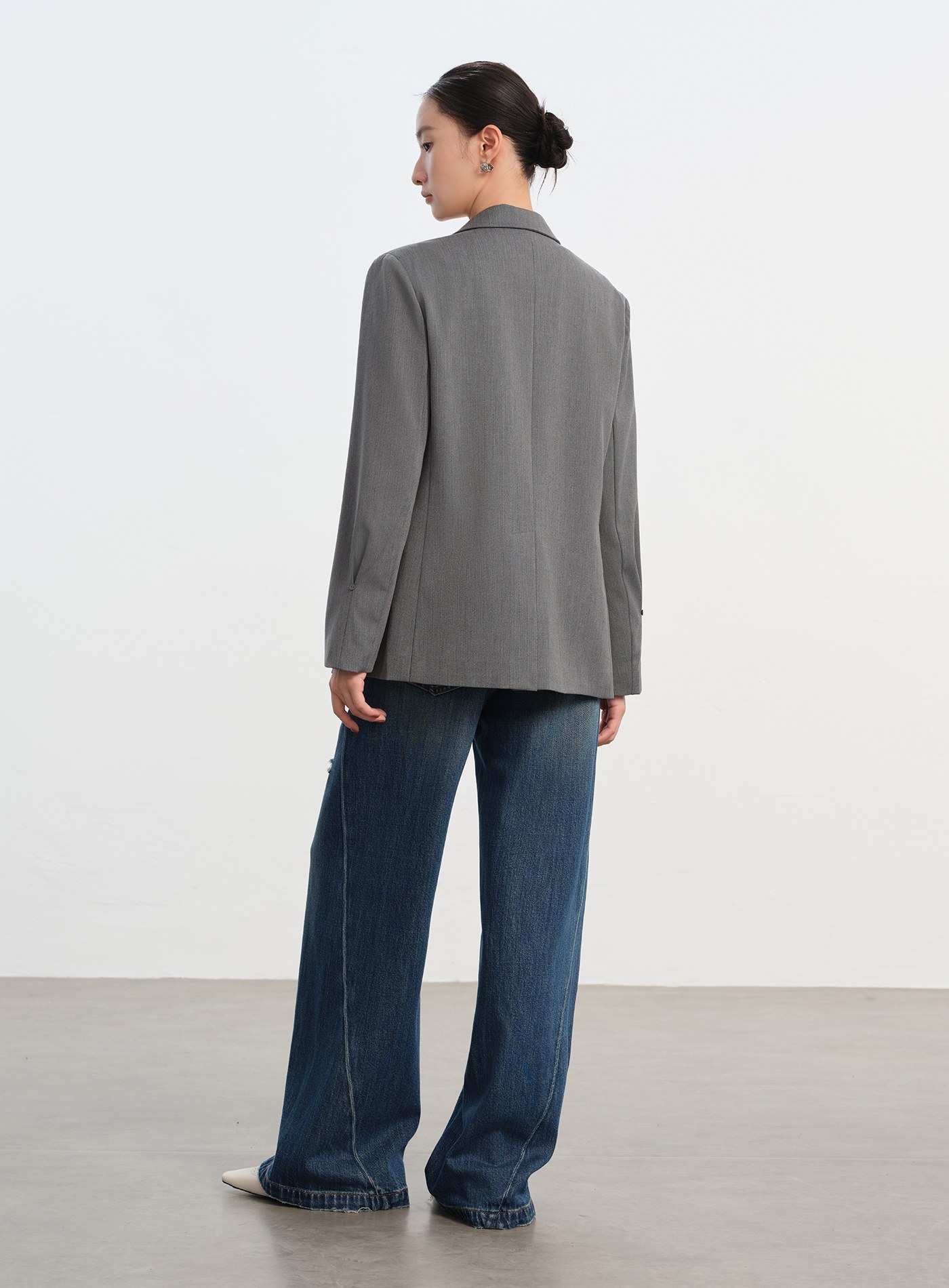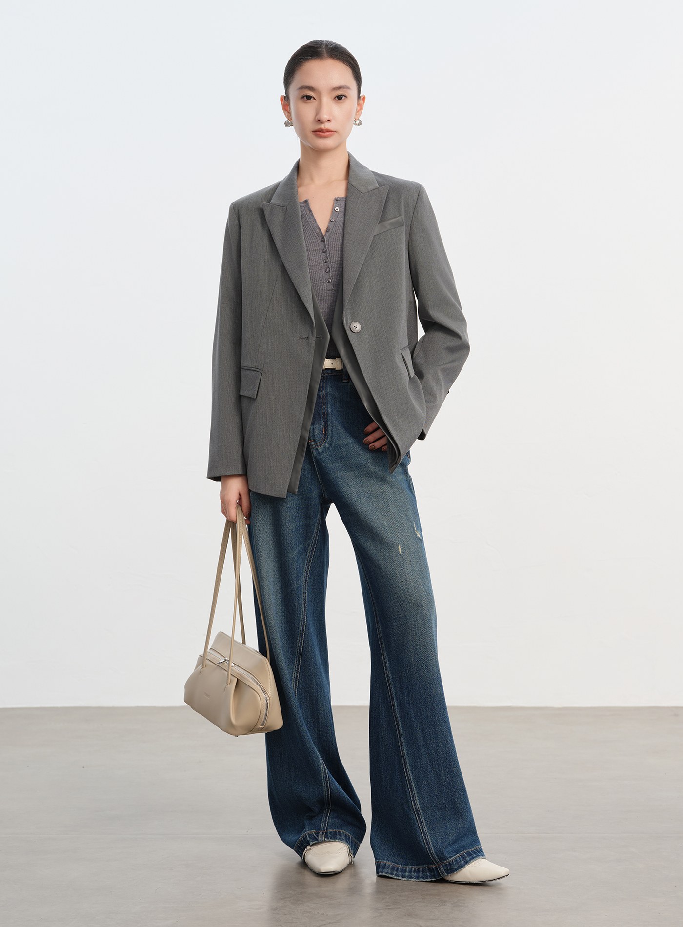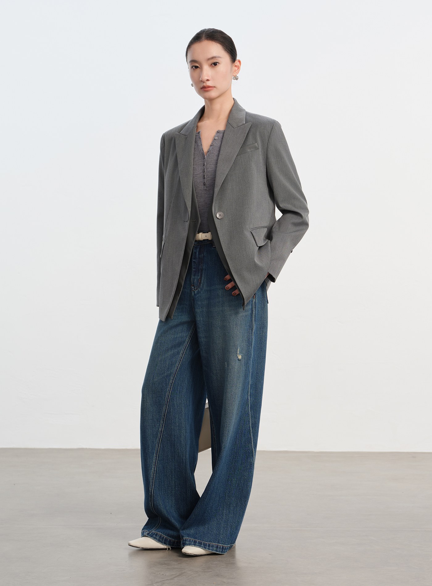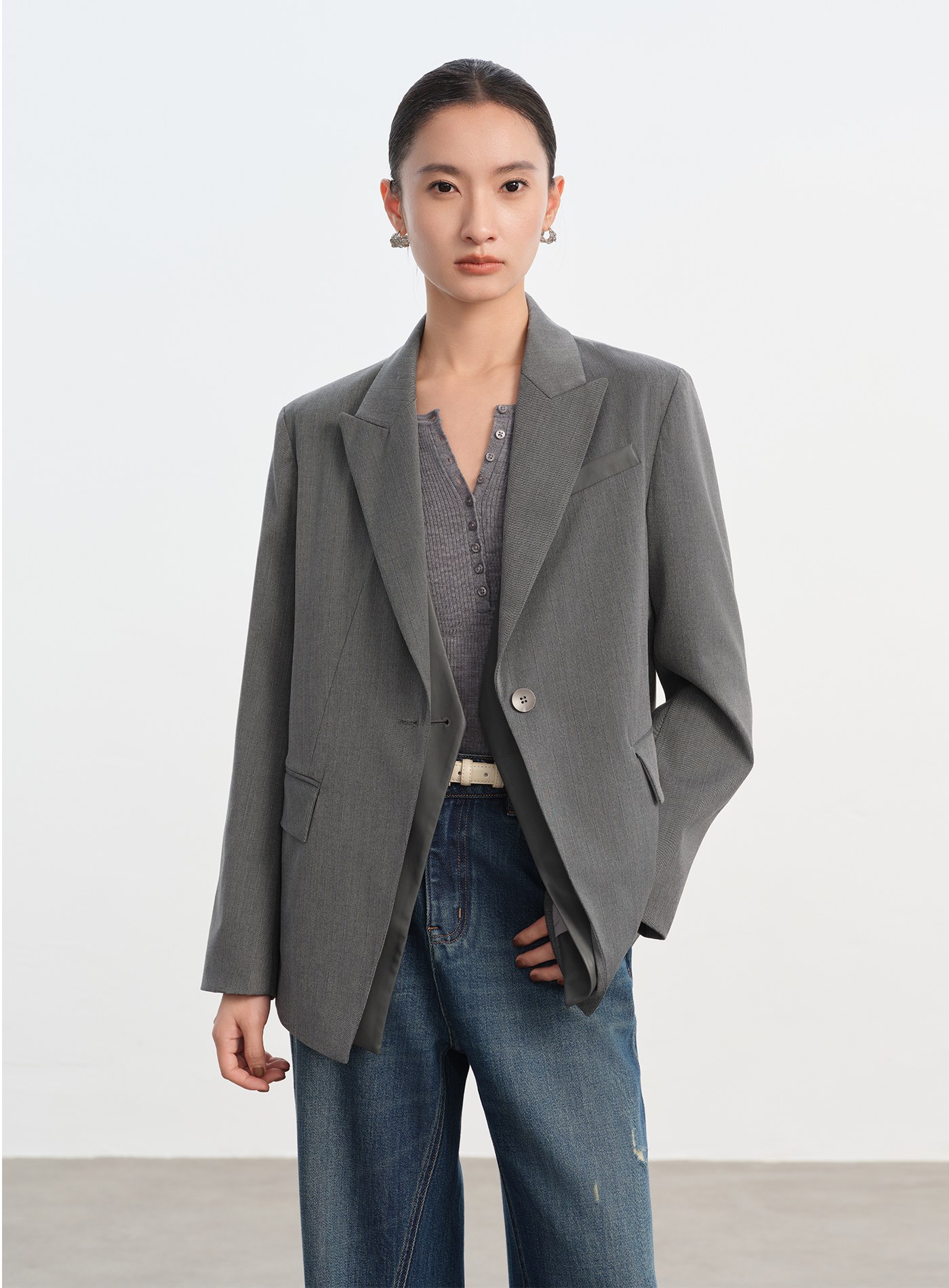 - 斜開門襟與口袋,打造俐落視覺線條