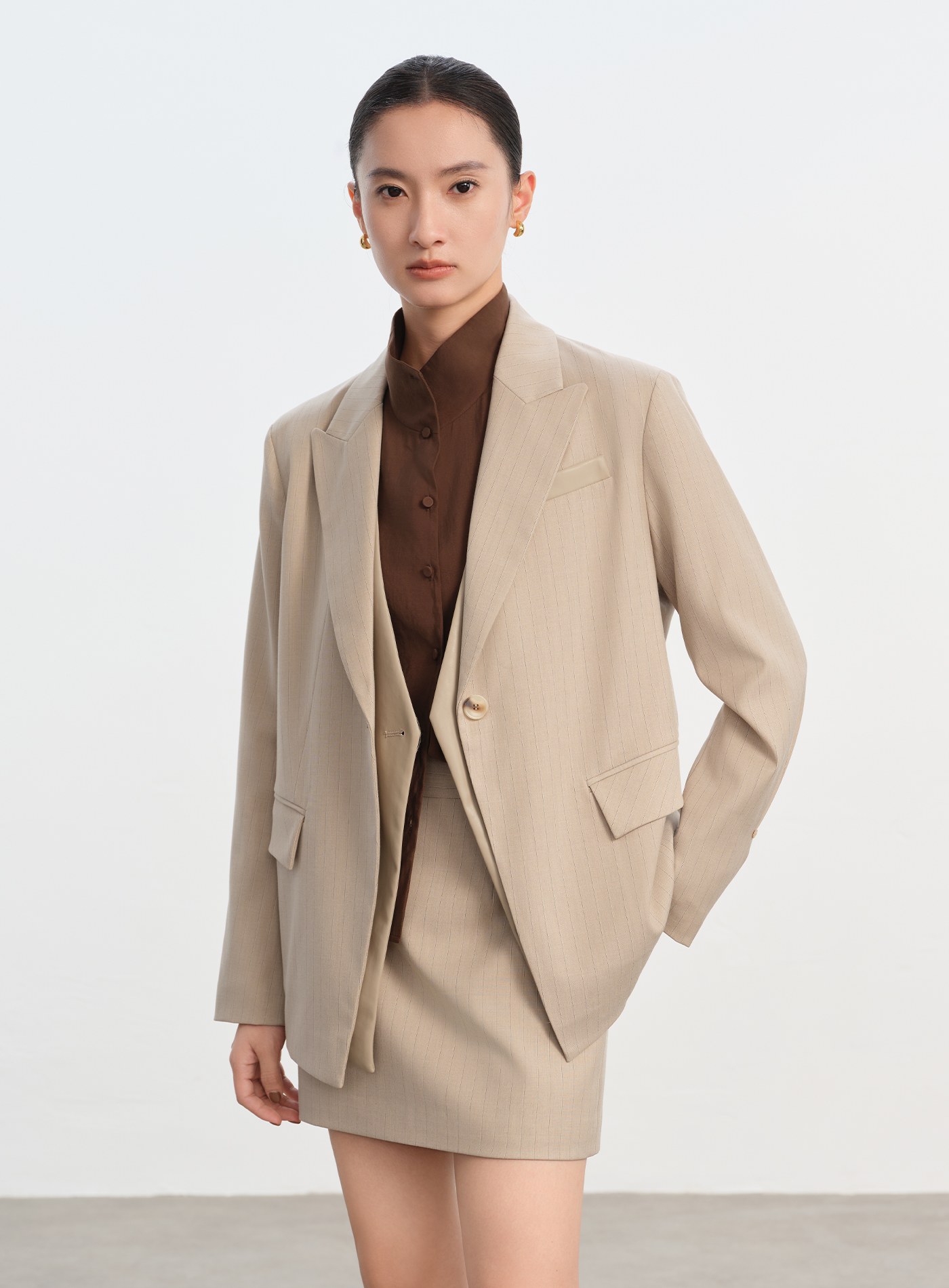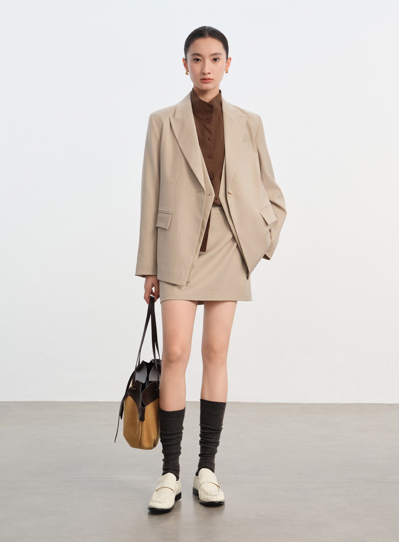 - 假兩件拼接皮革馬甲,多樣釦法增加層次感