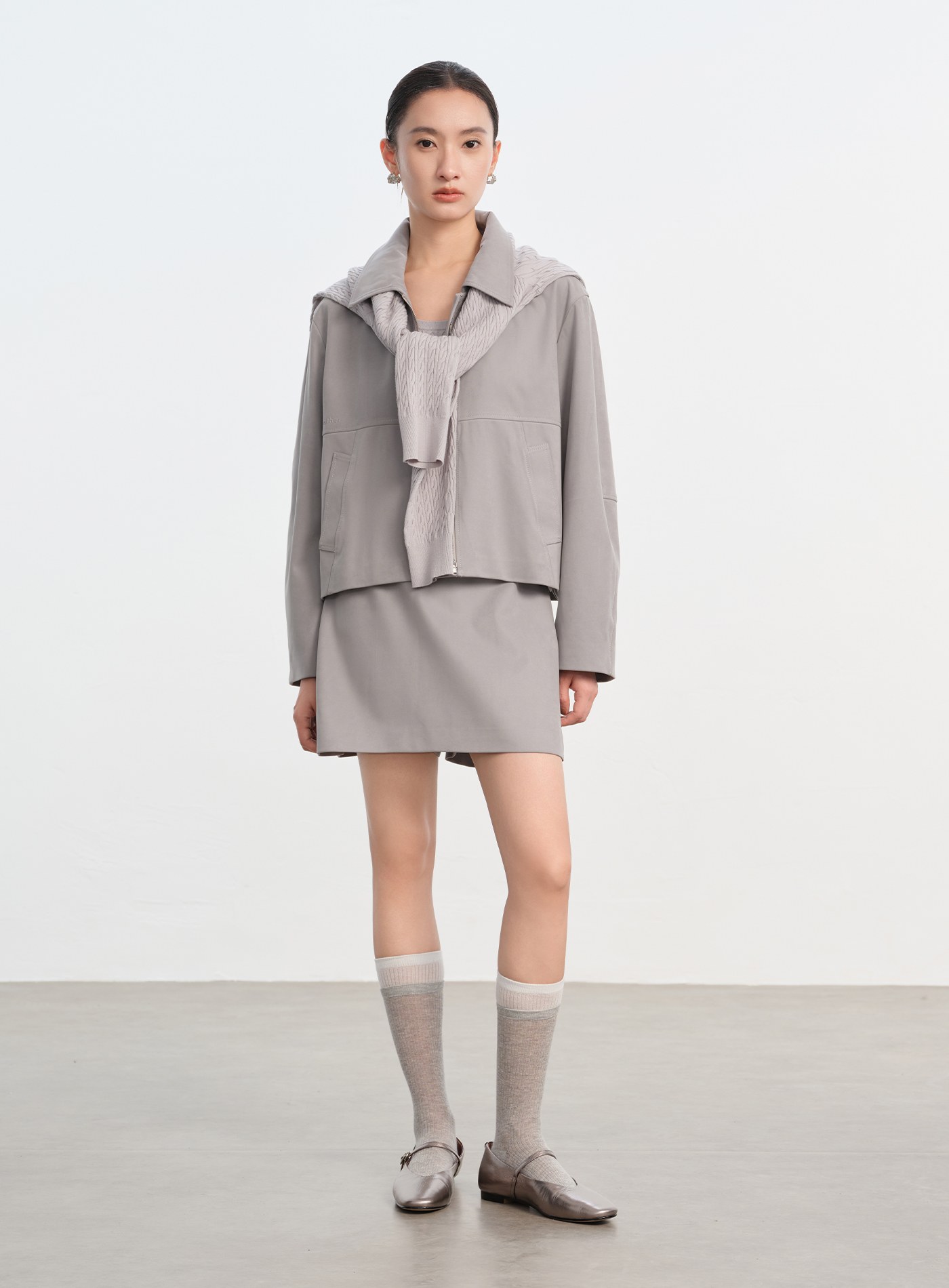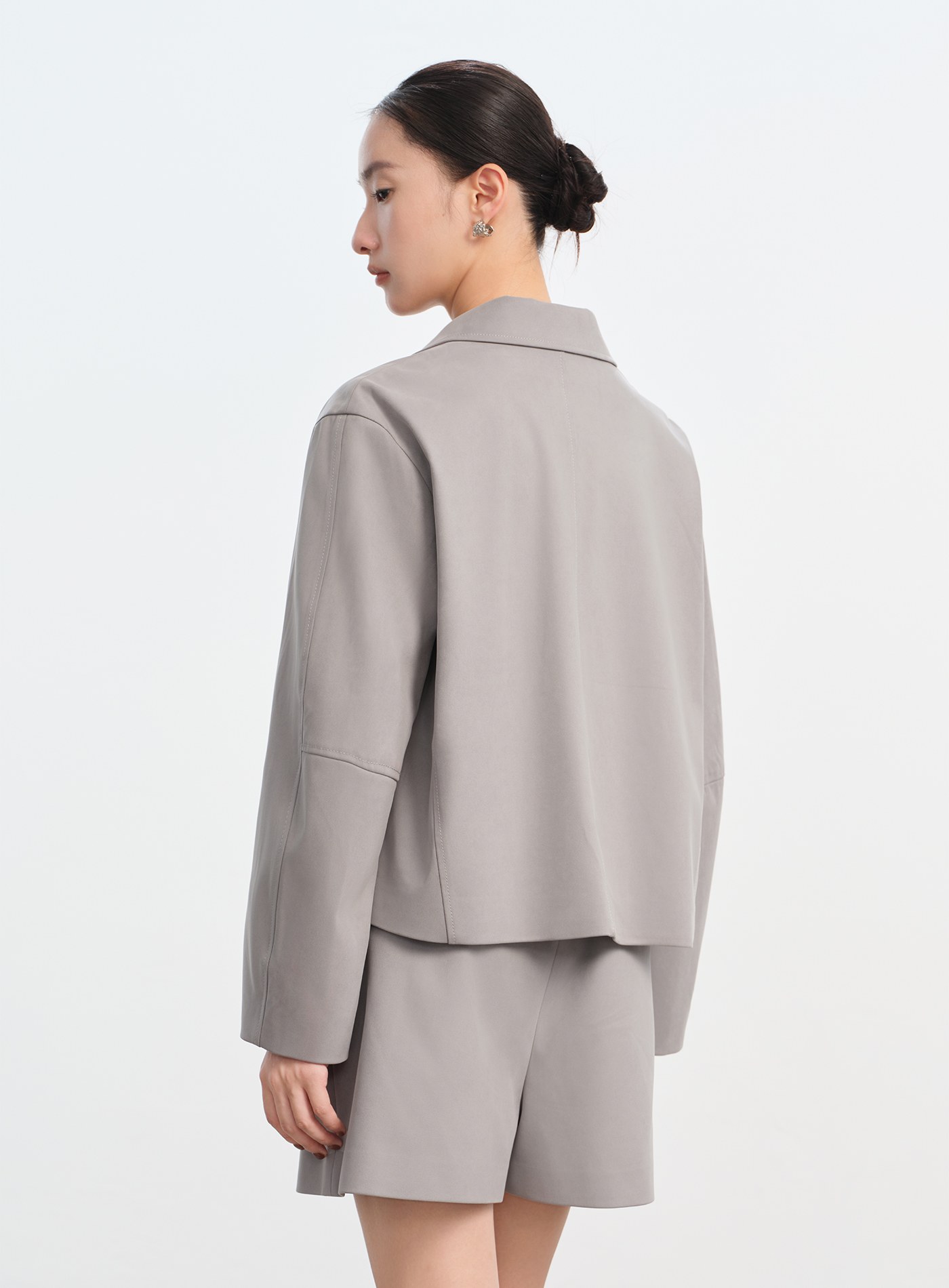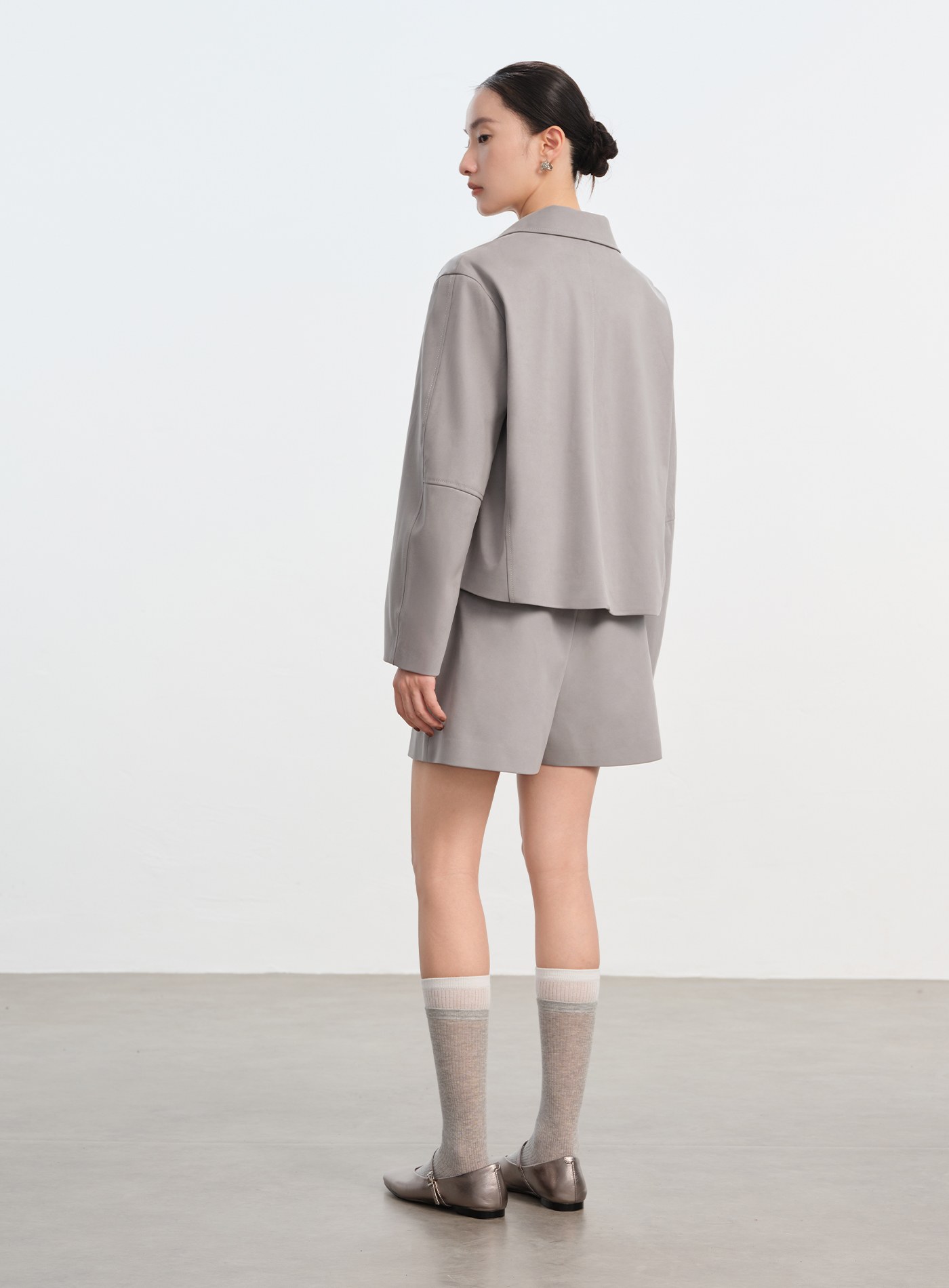 鋪棉立體坑條不對稱領型西裝外套$127 USD