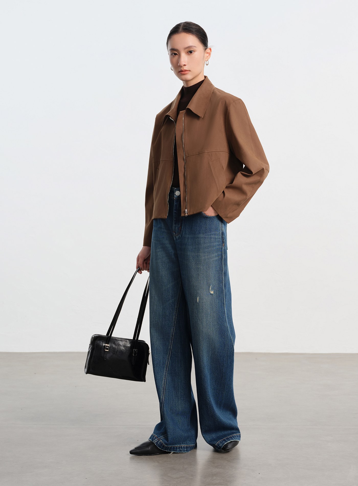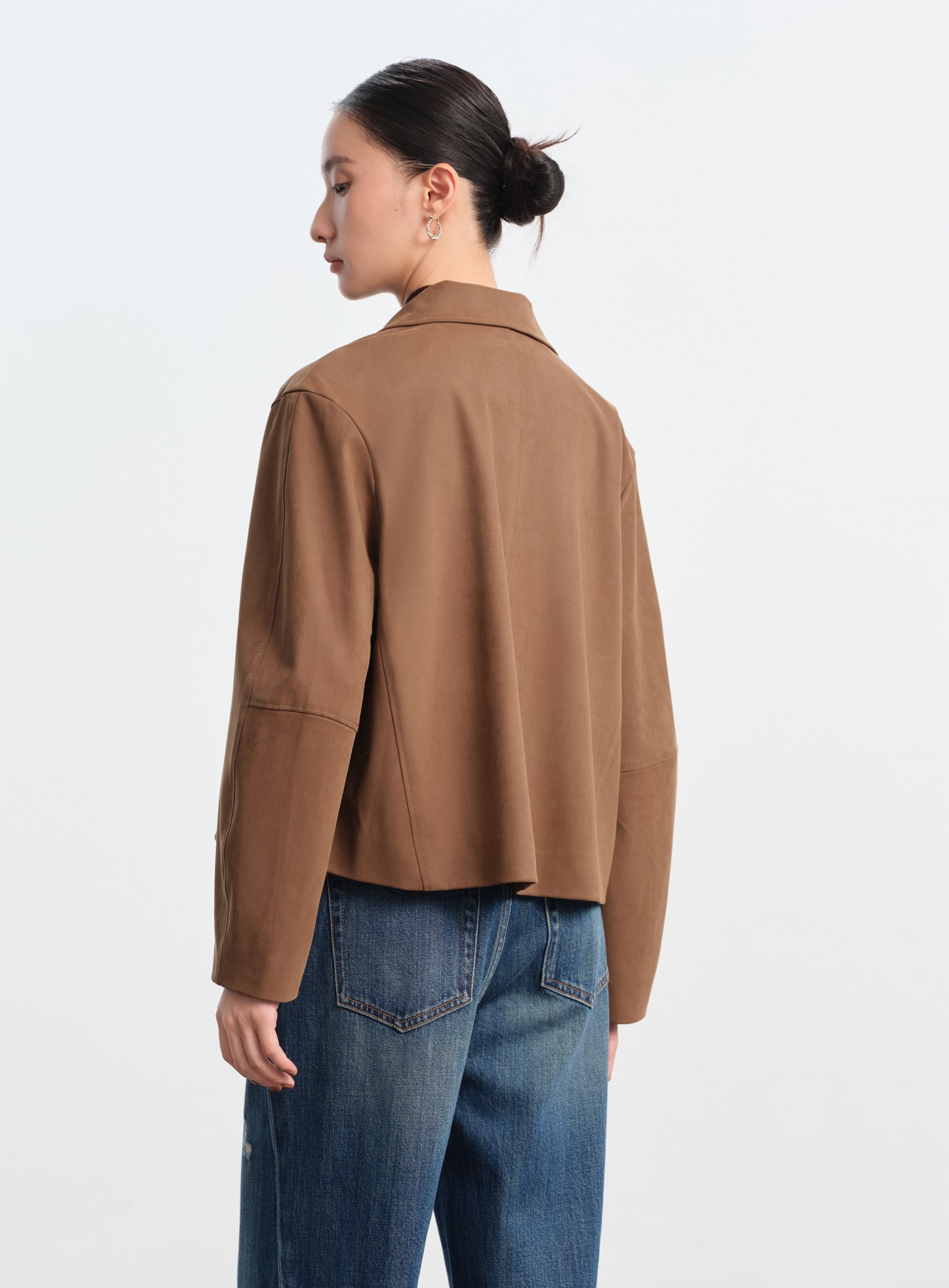 鋪棉立體坑條不對稱領型西裝外套$127 USD