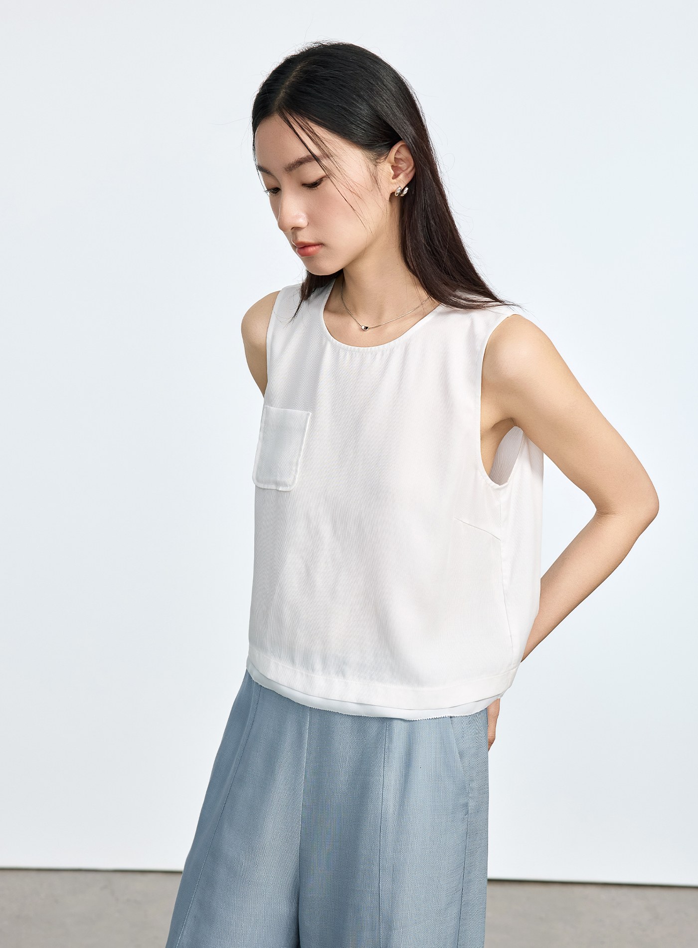 - 短版無袖圓領剪裁,清爽百搭