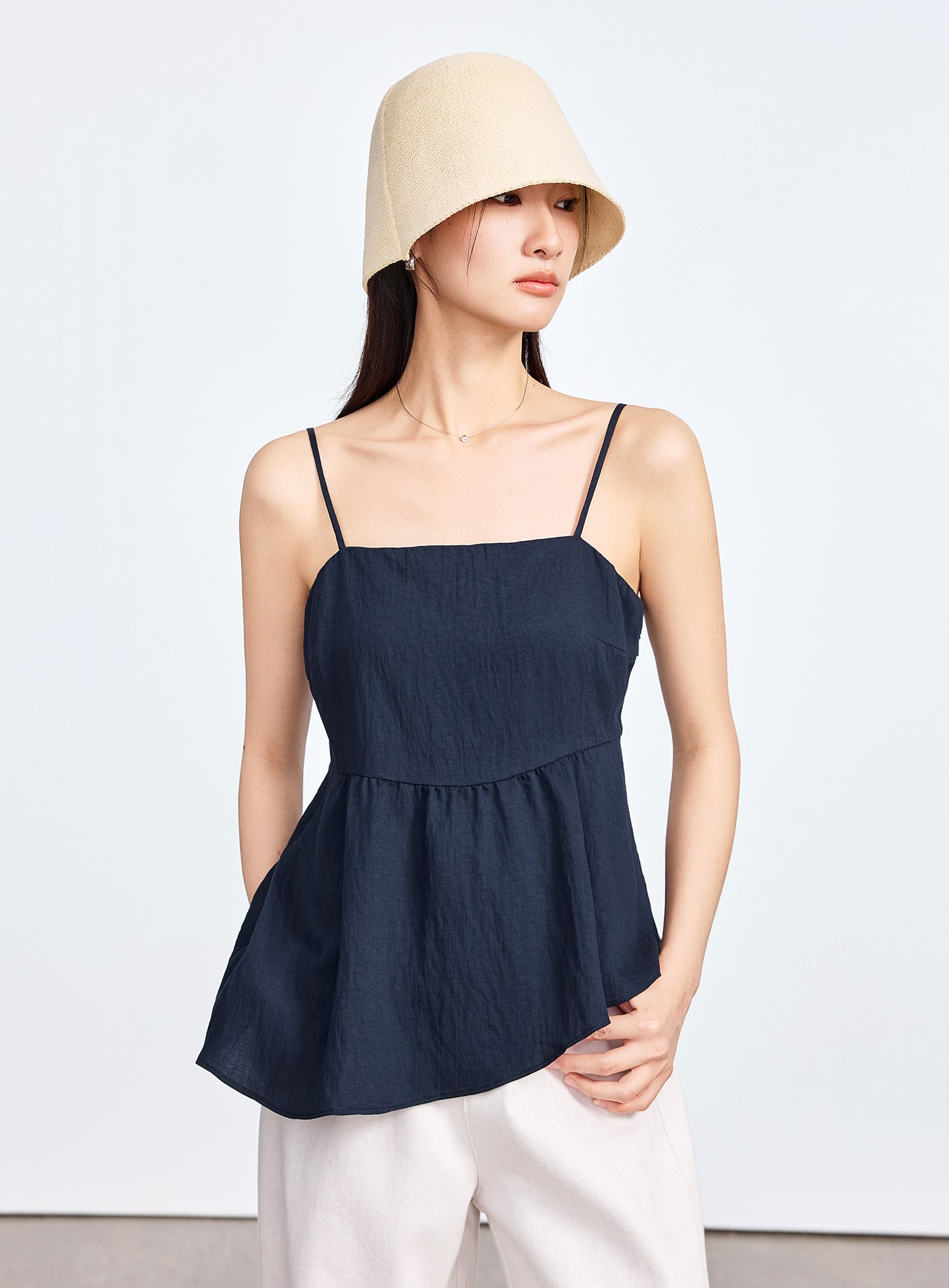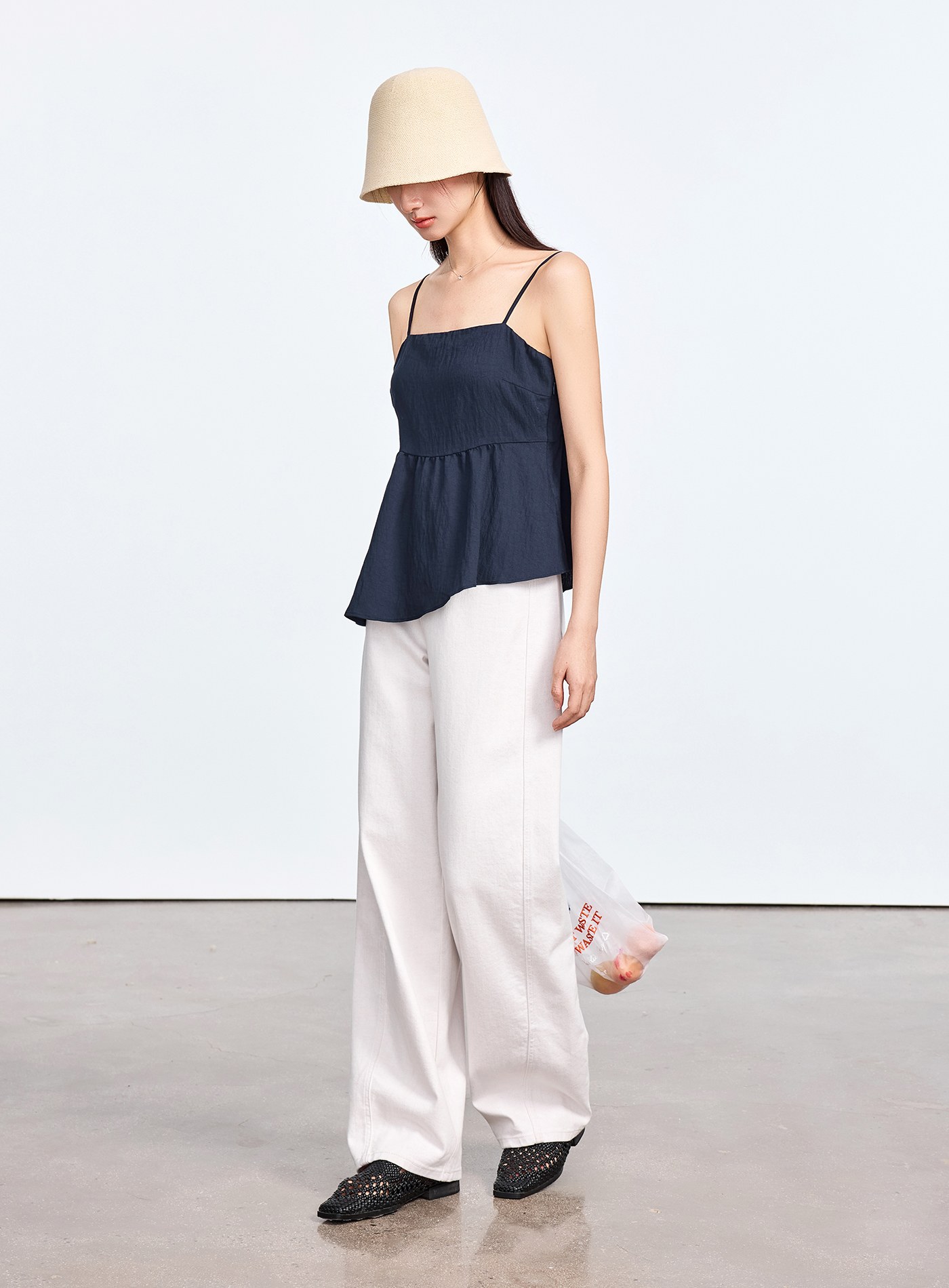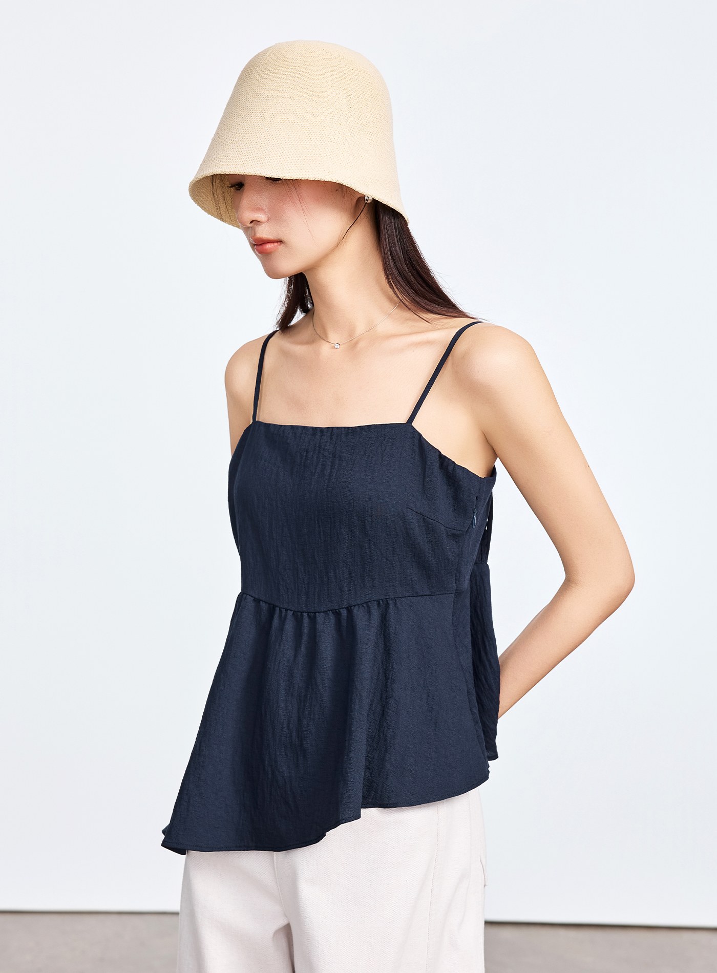 - 細肩帶平口剪裁,搭配下擺波浪斜裁設計,展現自在鬆弛的夏日氣息。