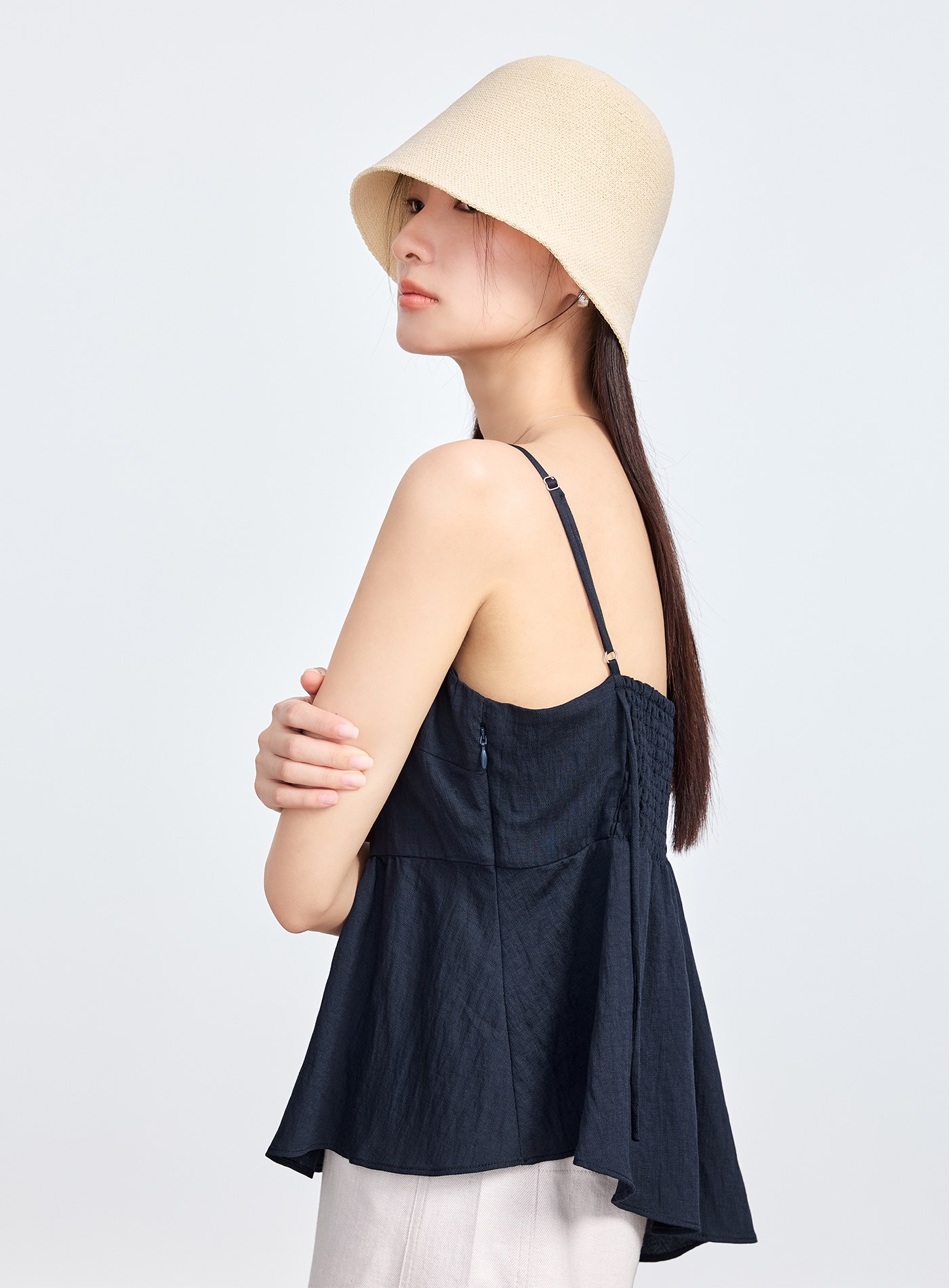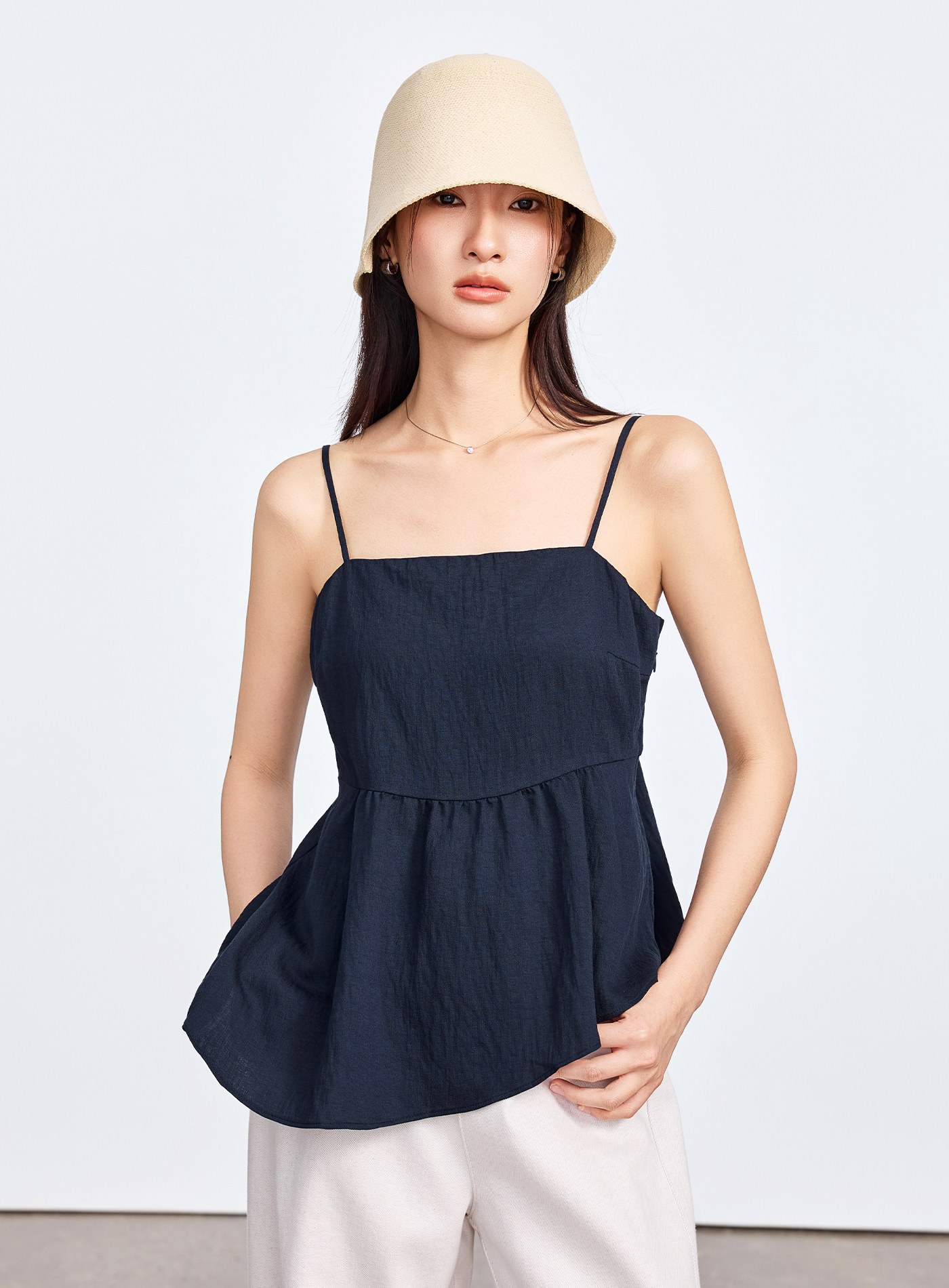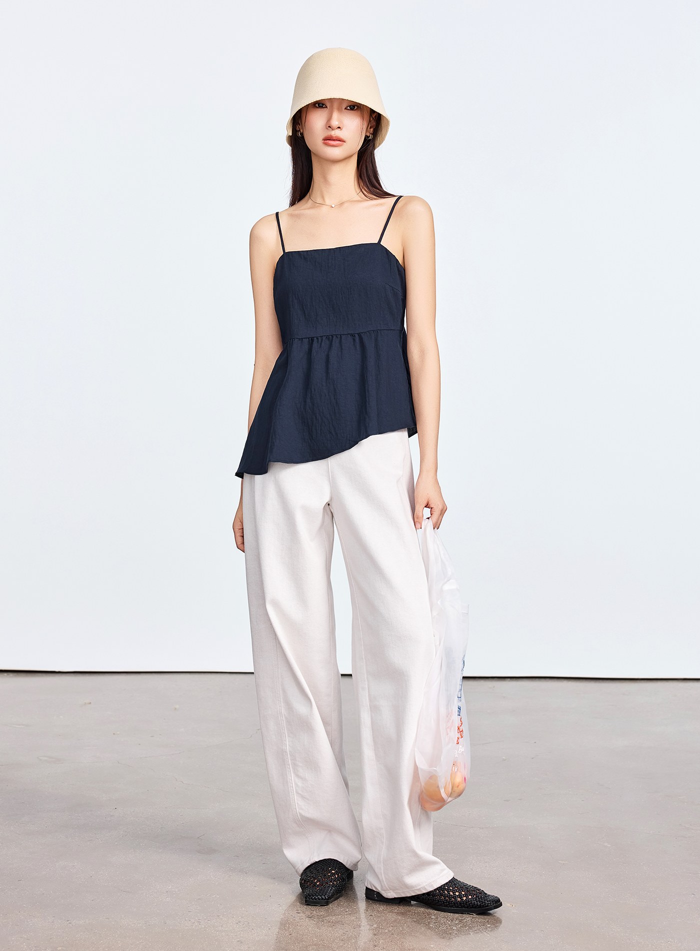 - 細肩帶平口剪裁,搭配下擺波浪斜裁設計,展現自在鬆弛的夏日氣息。