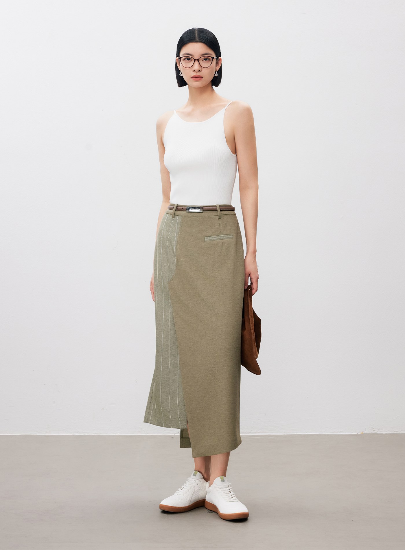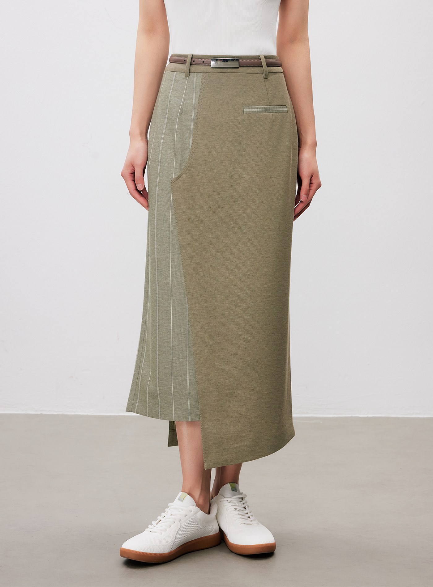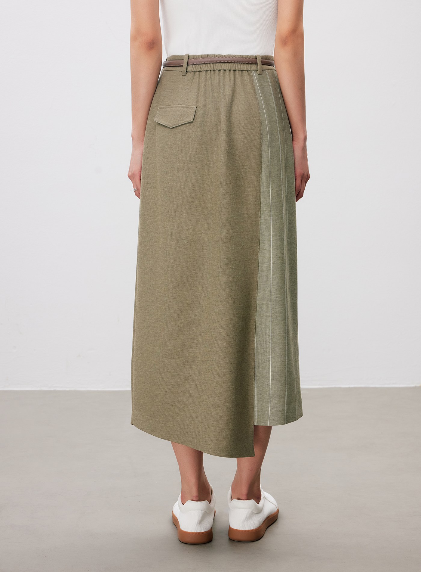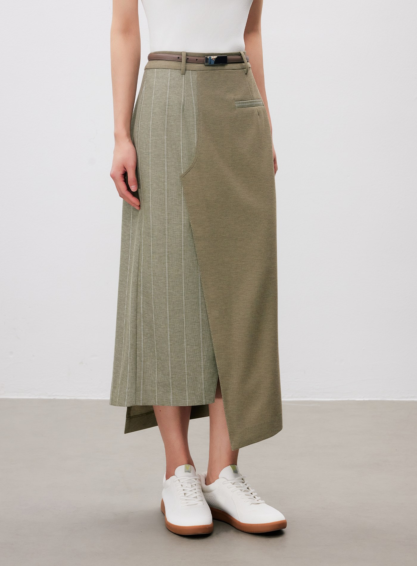 - 裙身不對稱剪接,增添造型層次