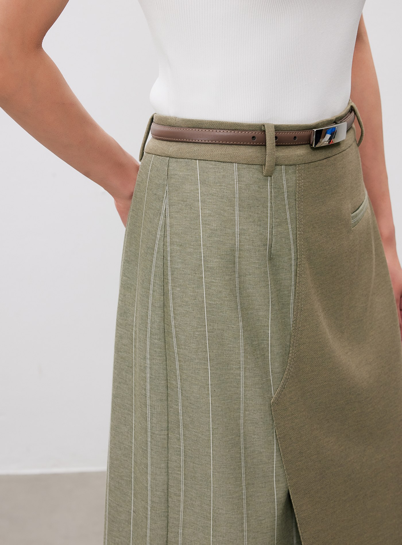 - 左右裙片拼接同色條紋提織面料