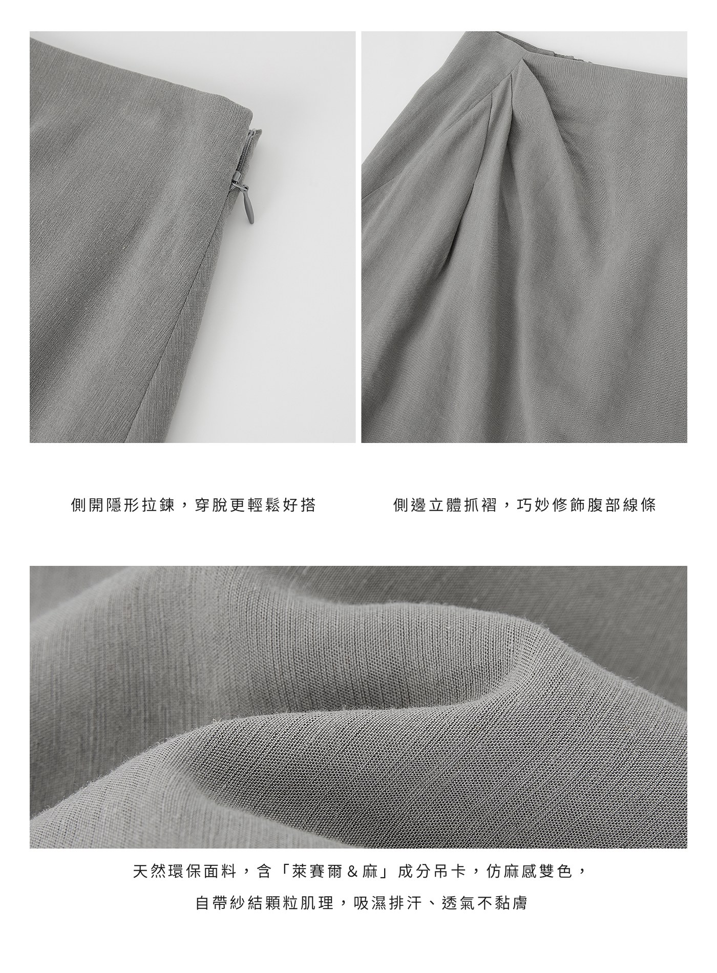 - 選用天然環保面料,含「萊賽爾&麻」成分吊卡,仿麻感雙色,自帶紗結顆粒肌理,吸濕排汗、透氣不黏膚