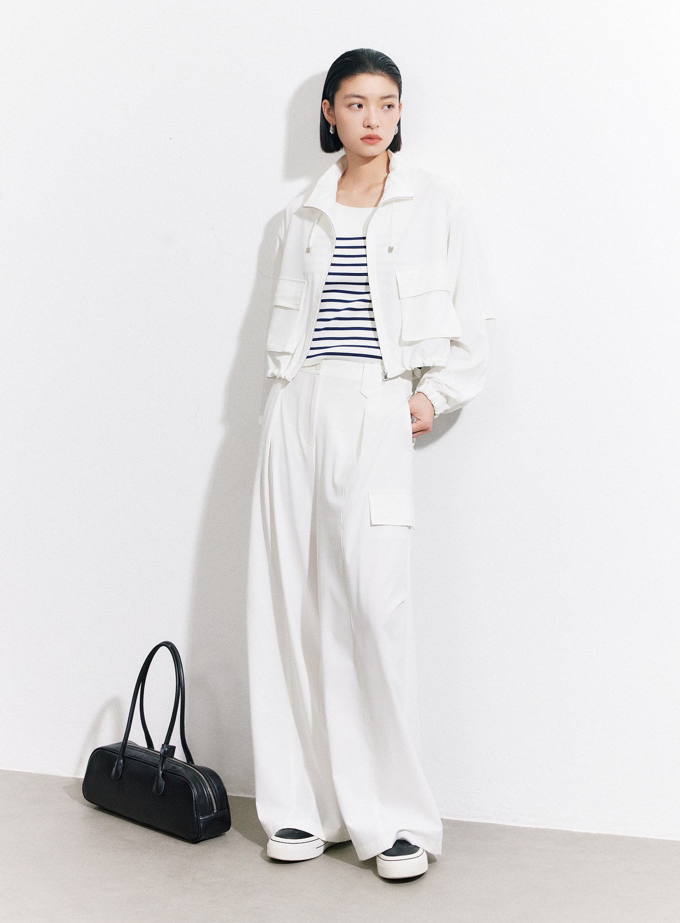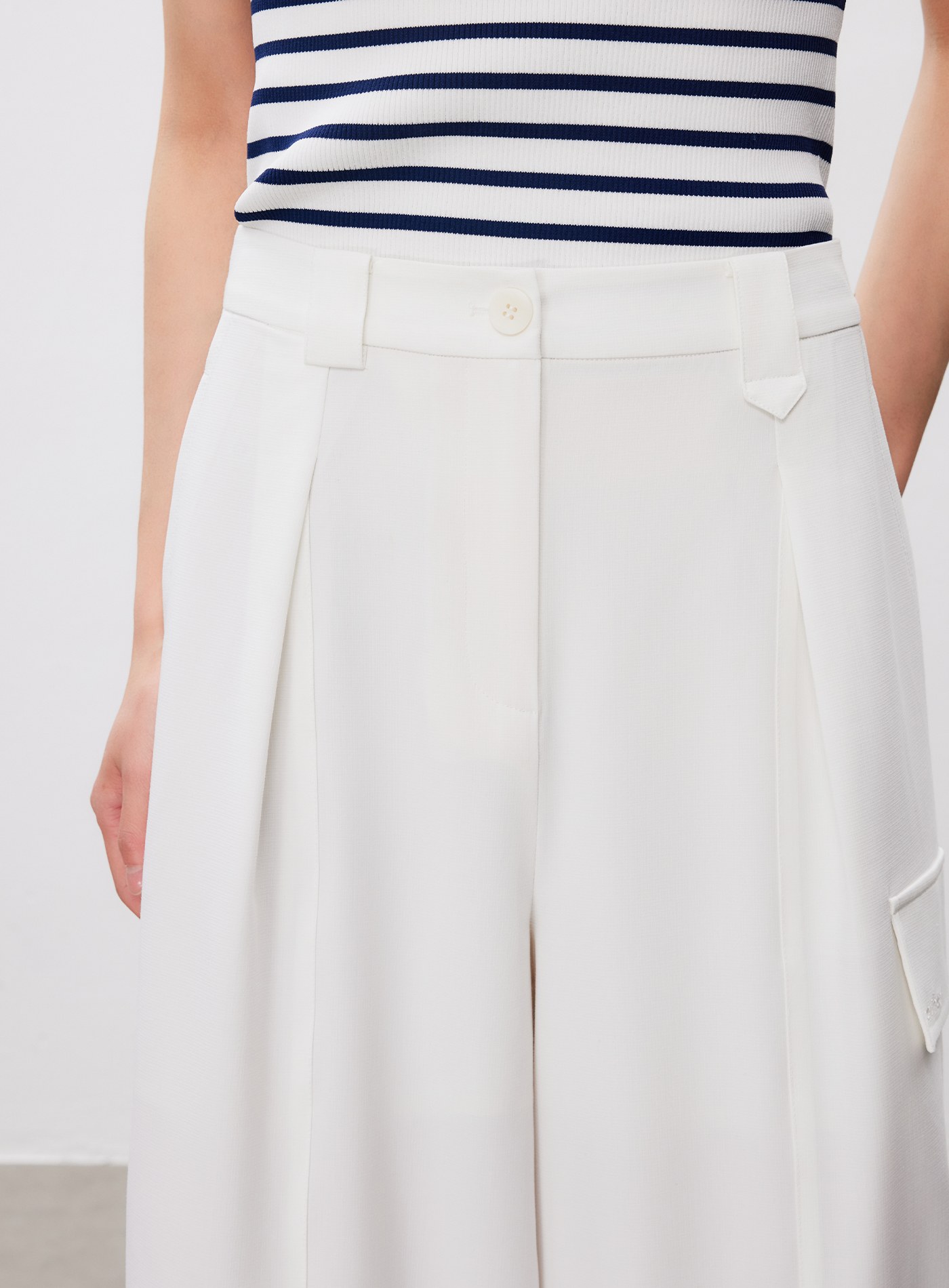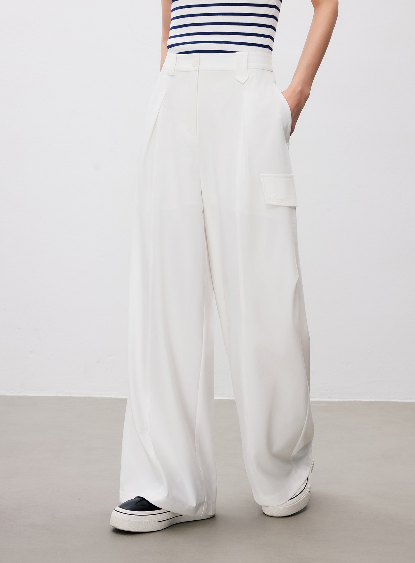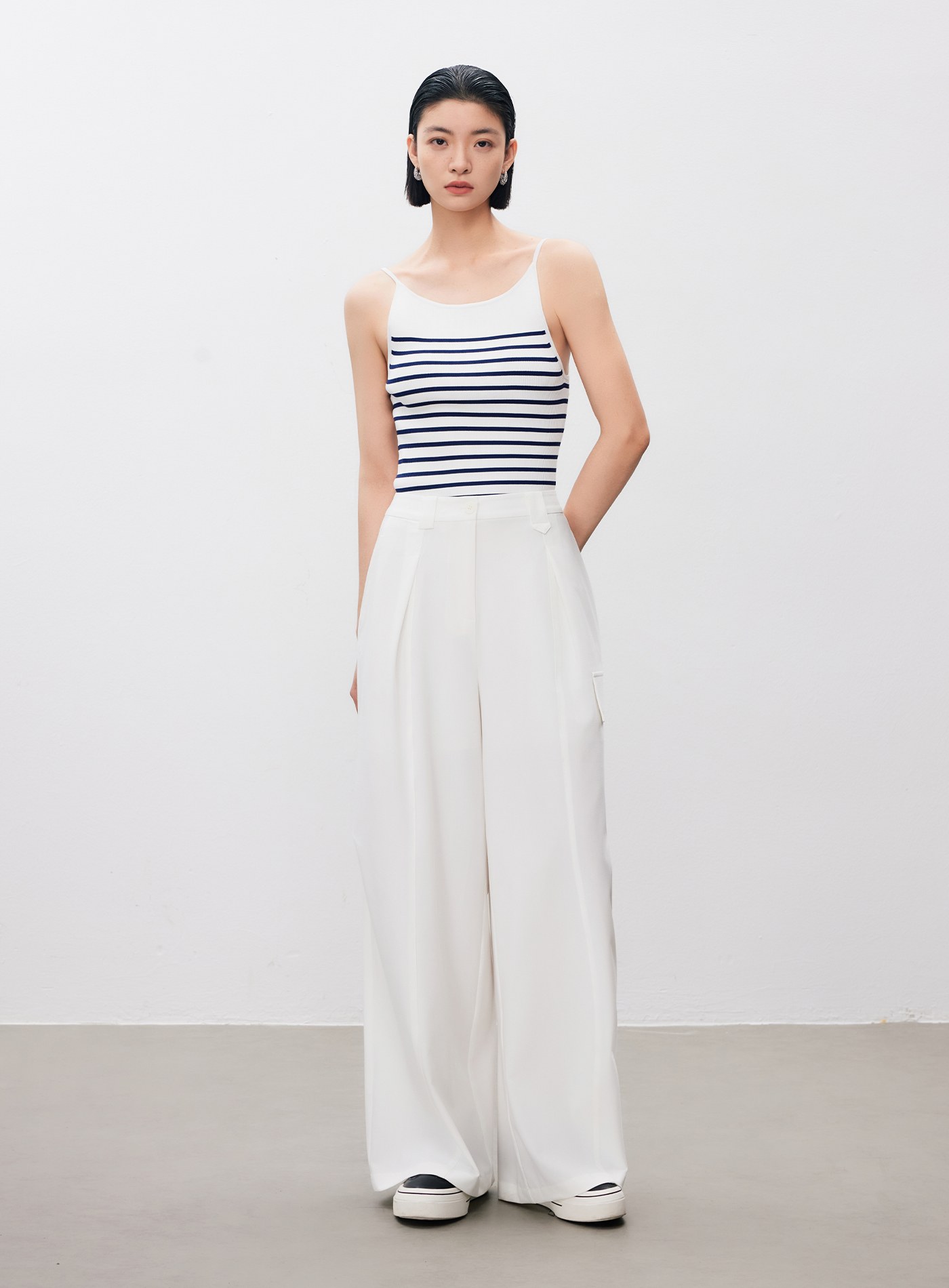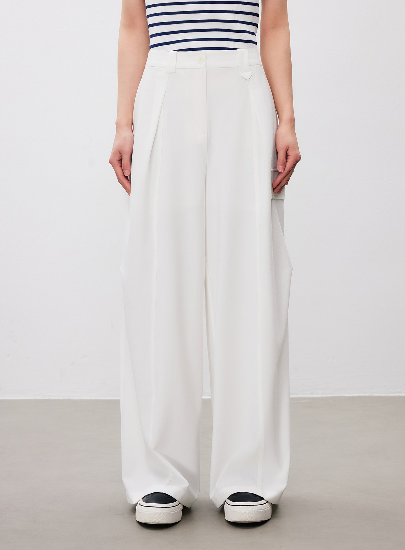 條紋立體壓摺直筒寬褲$73 USD