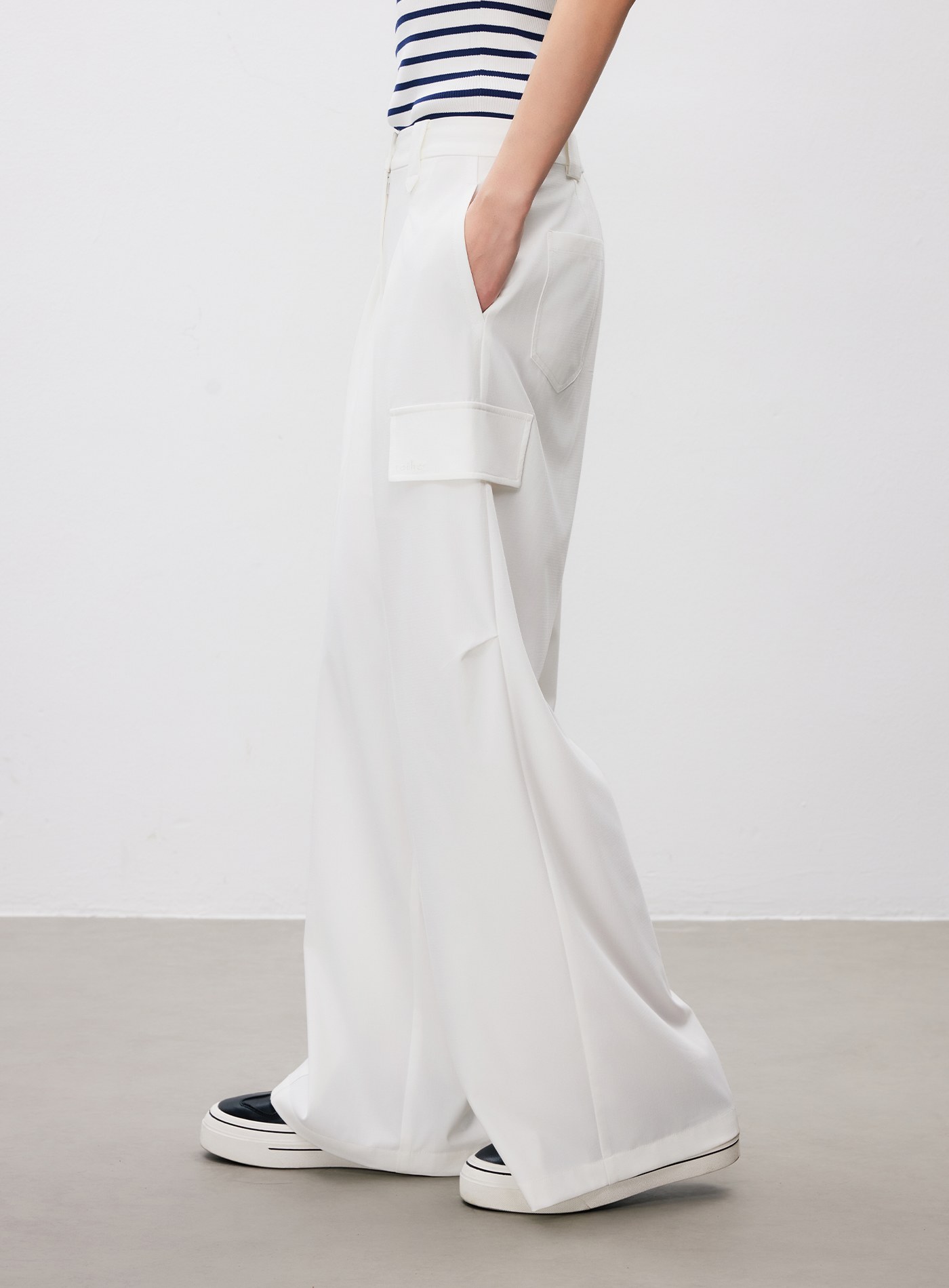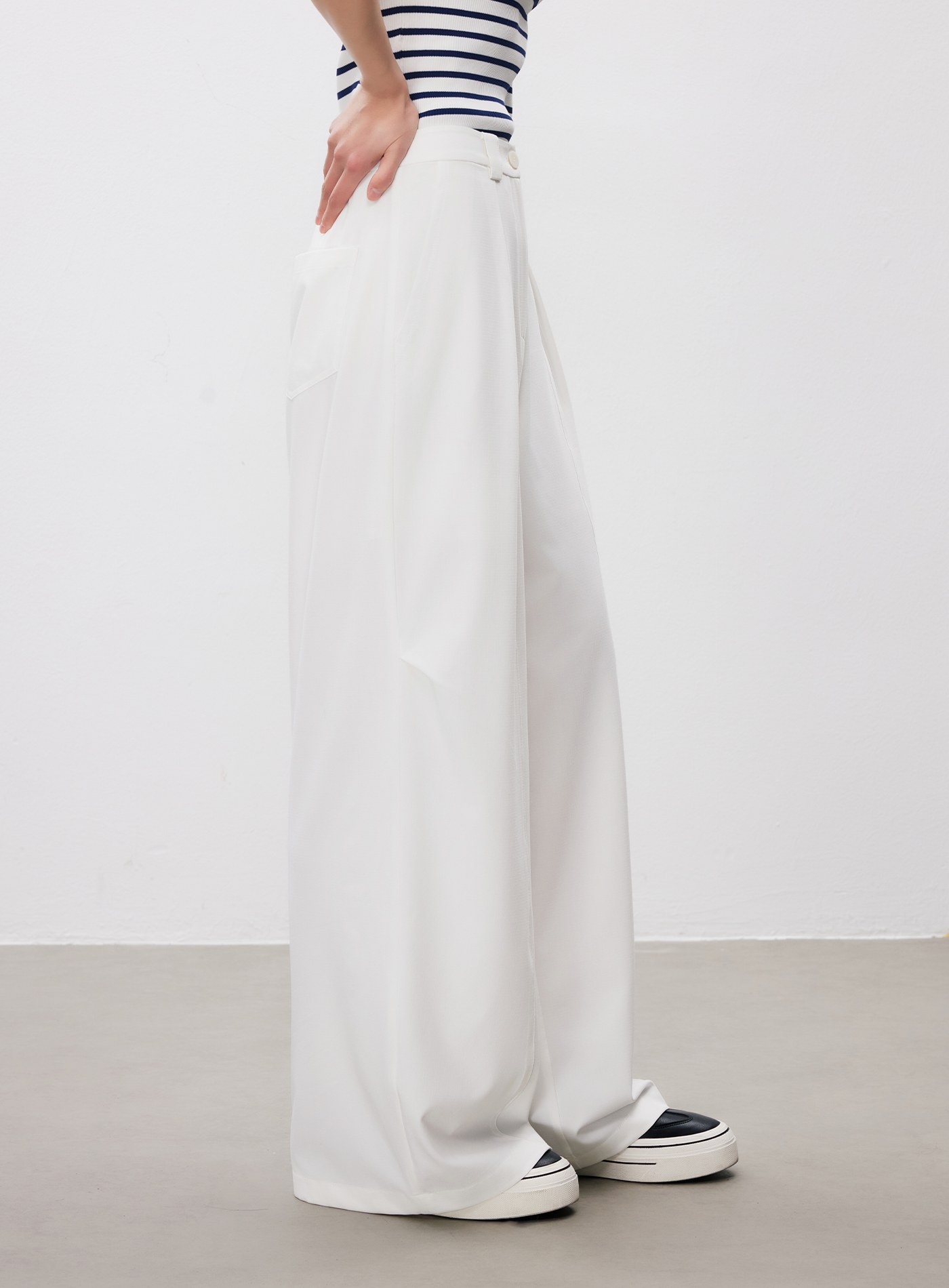 不對稱收腰直筒寬褲$63 USD